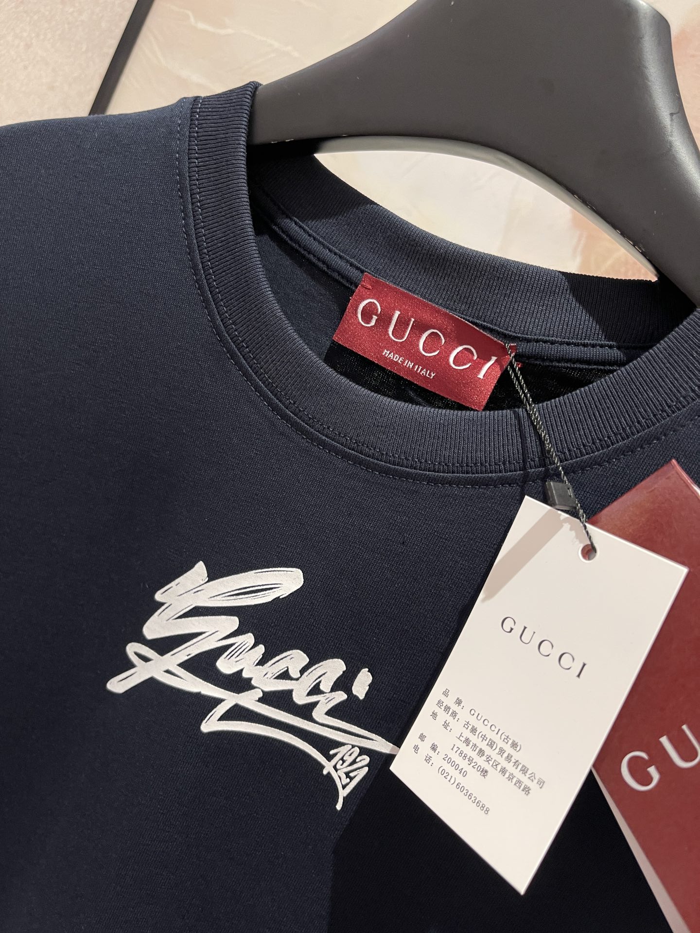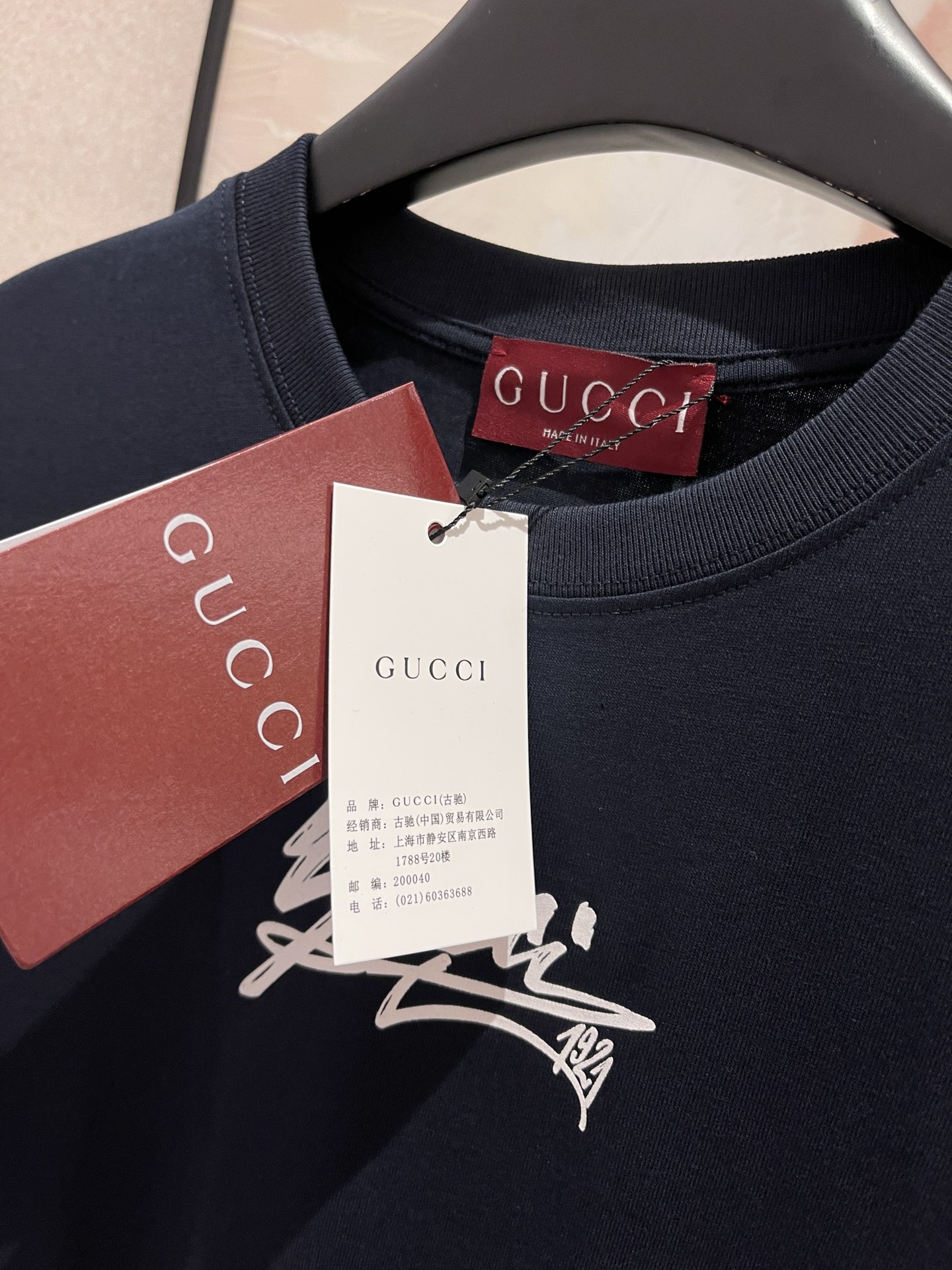 NIGO Gucci Men's Spring And Summer All Black Letters Printed Knitted Cotton T-shirt Retro Fashion Loose Short-sleeved T-shirt #nigo71485