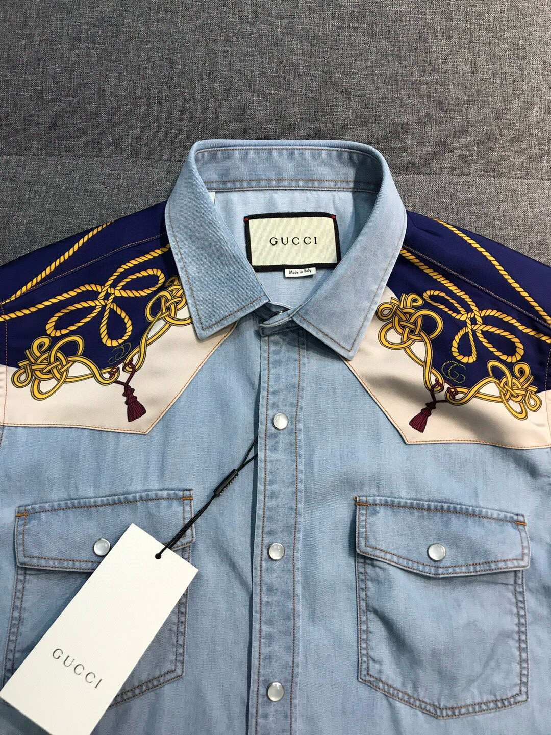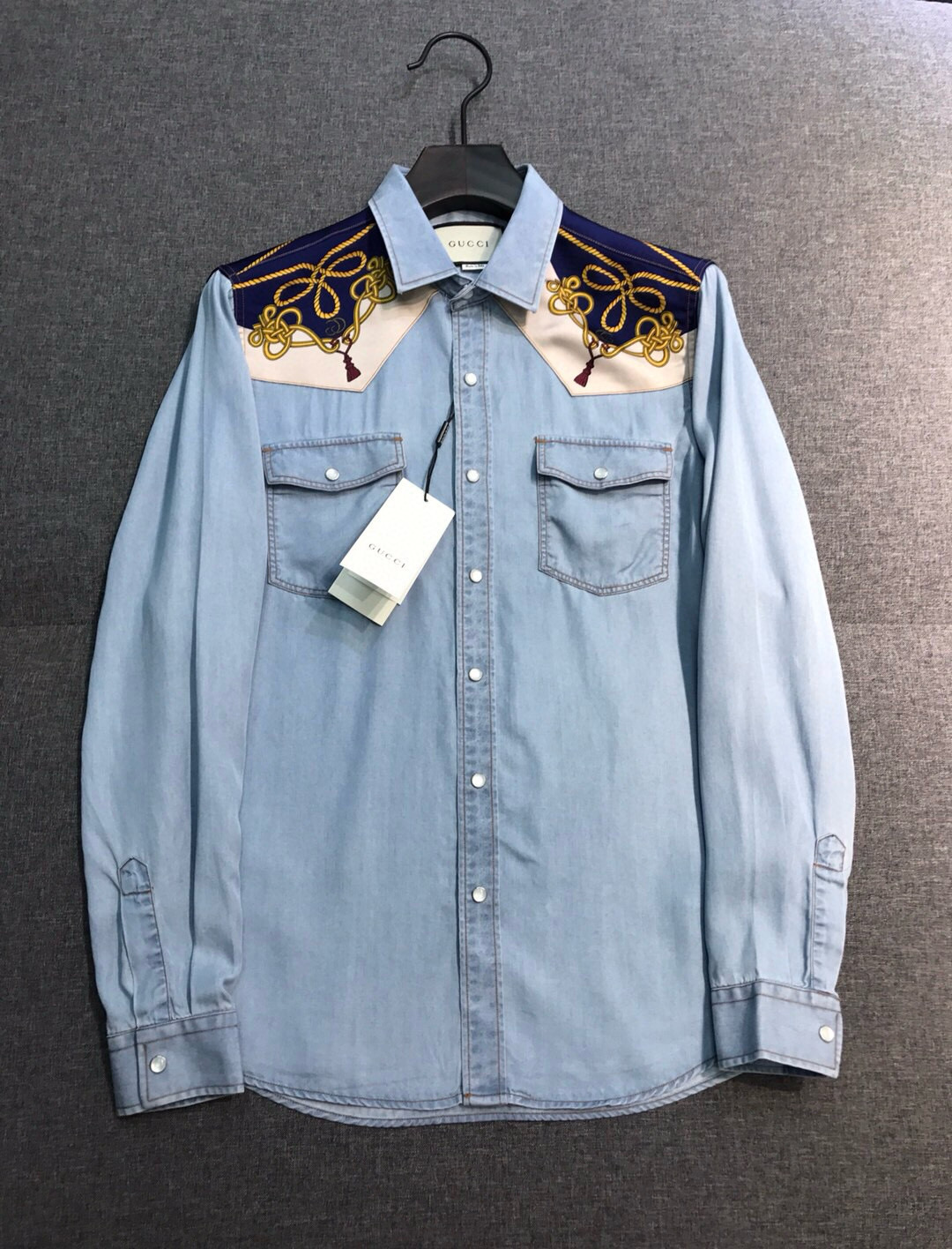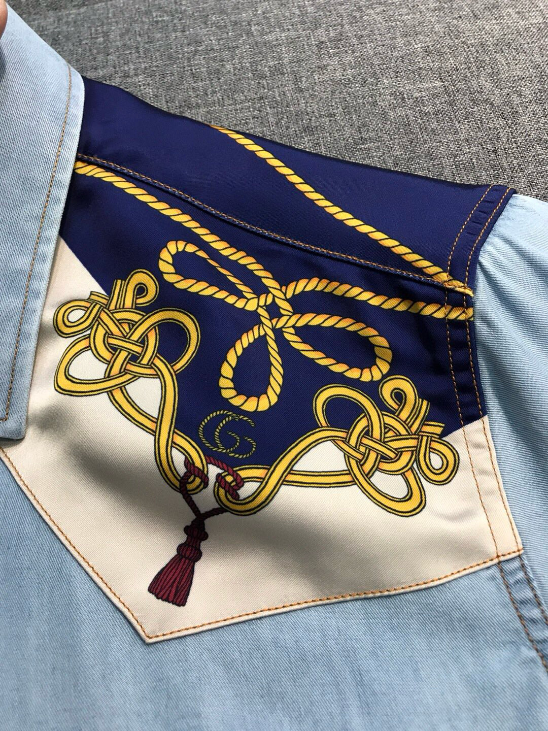 NIGO Gucci Men's Summer Light Blue Geometric Pattern Denim Long Sleeve Single Breasted Shirt Jacket #nigo98142