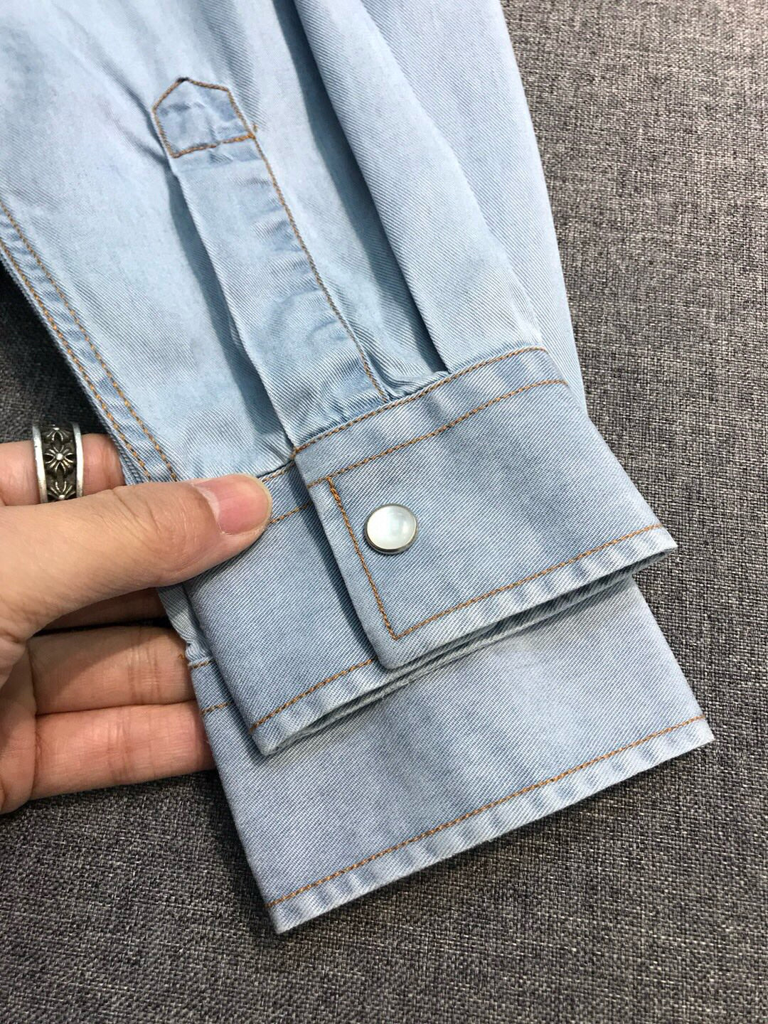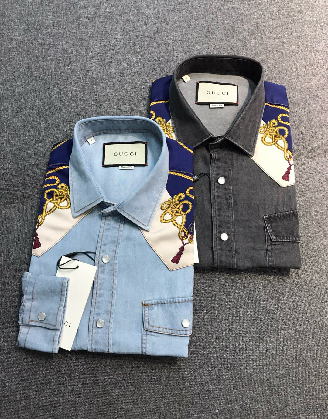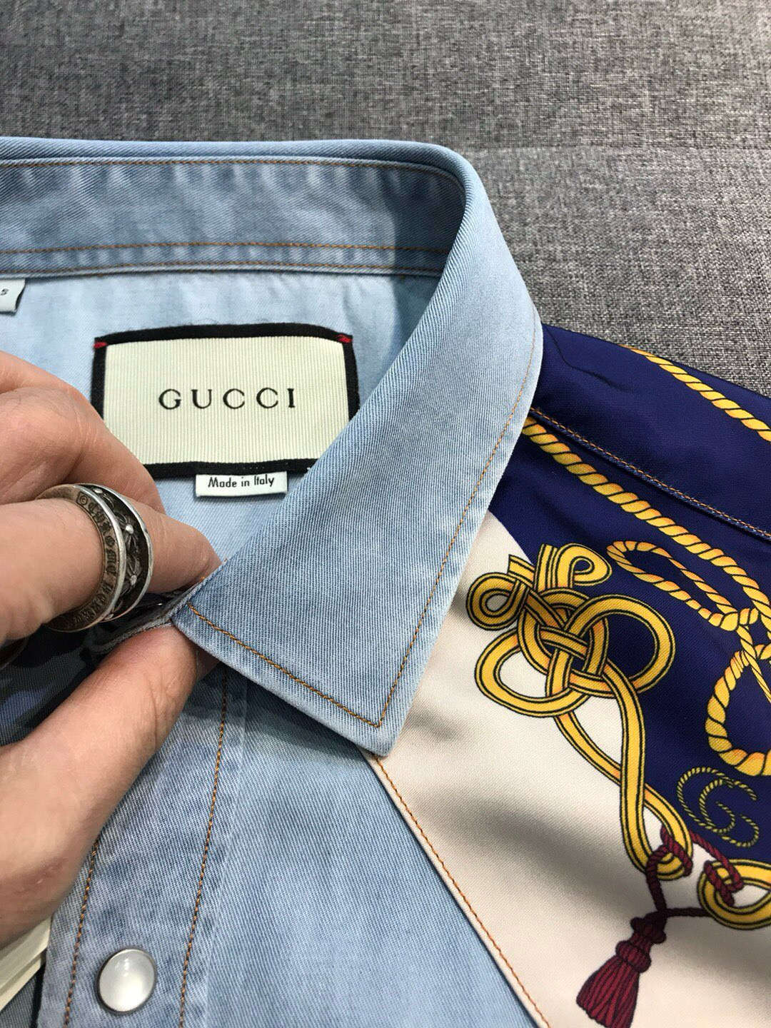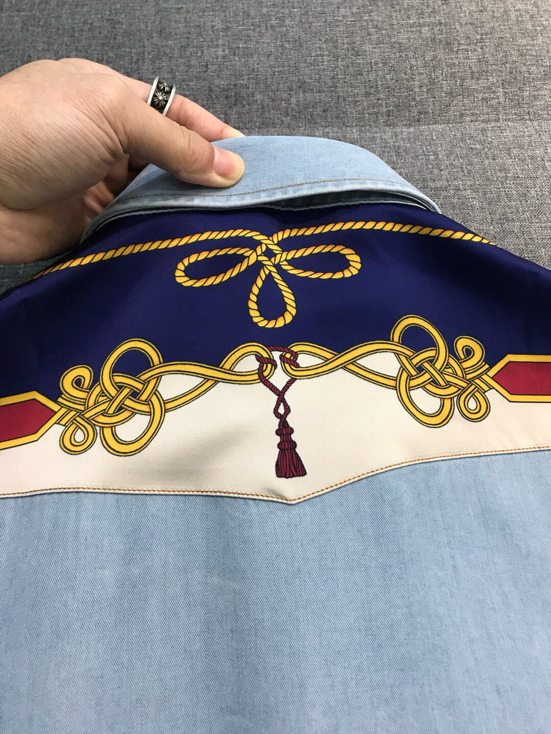 NIGO Gucci Men's Summer Light Blue Geometric Pattern Denim Long Sleeve Single Breasted Shirt Jacket #nigo98142