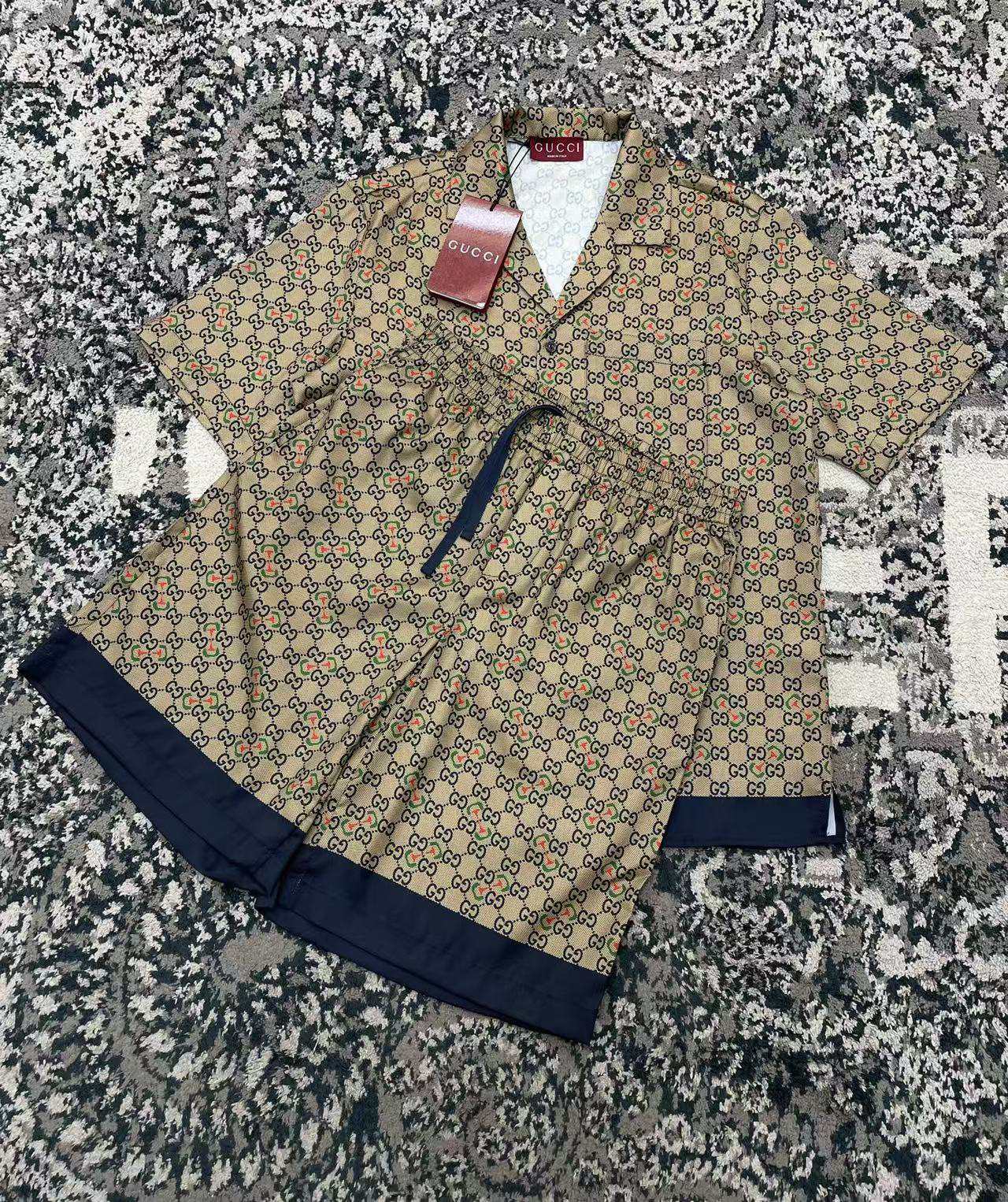 NIGO Gucci Men's Summer Logo Full Print Single Breasted Short Sleeve Shirt Stretch Waist Casual Shorts Set Suit #nigo75811