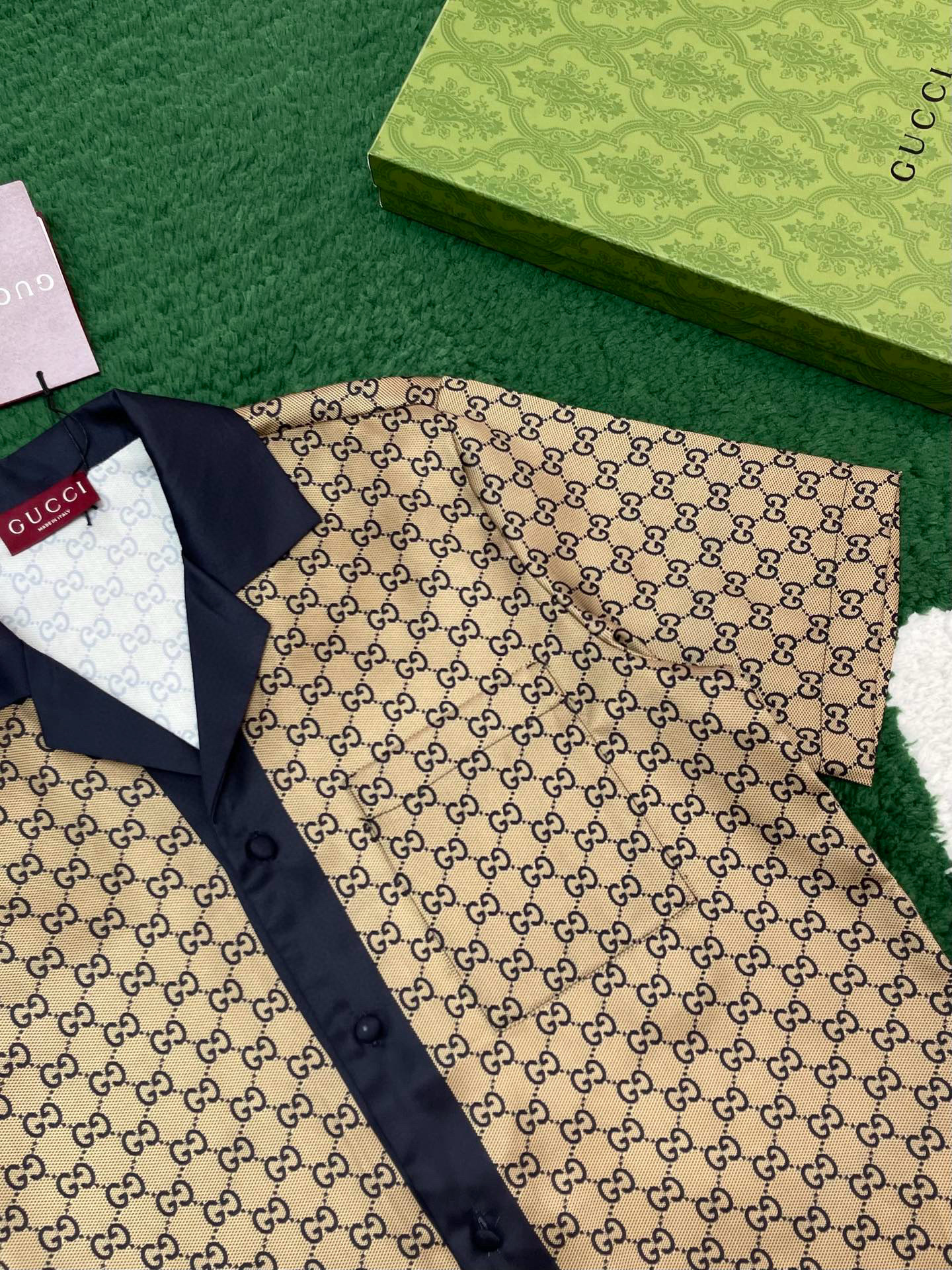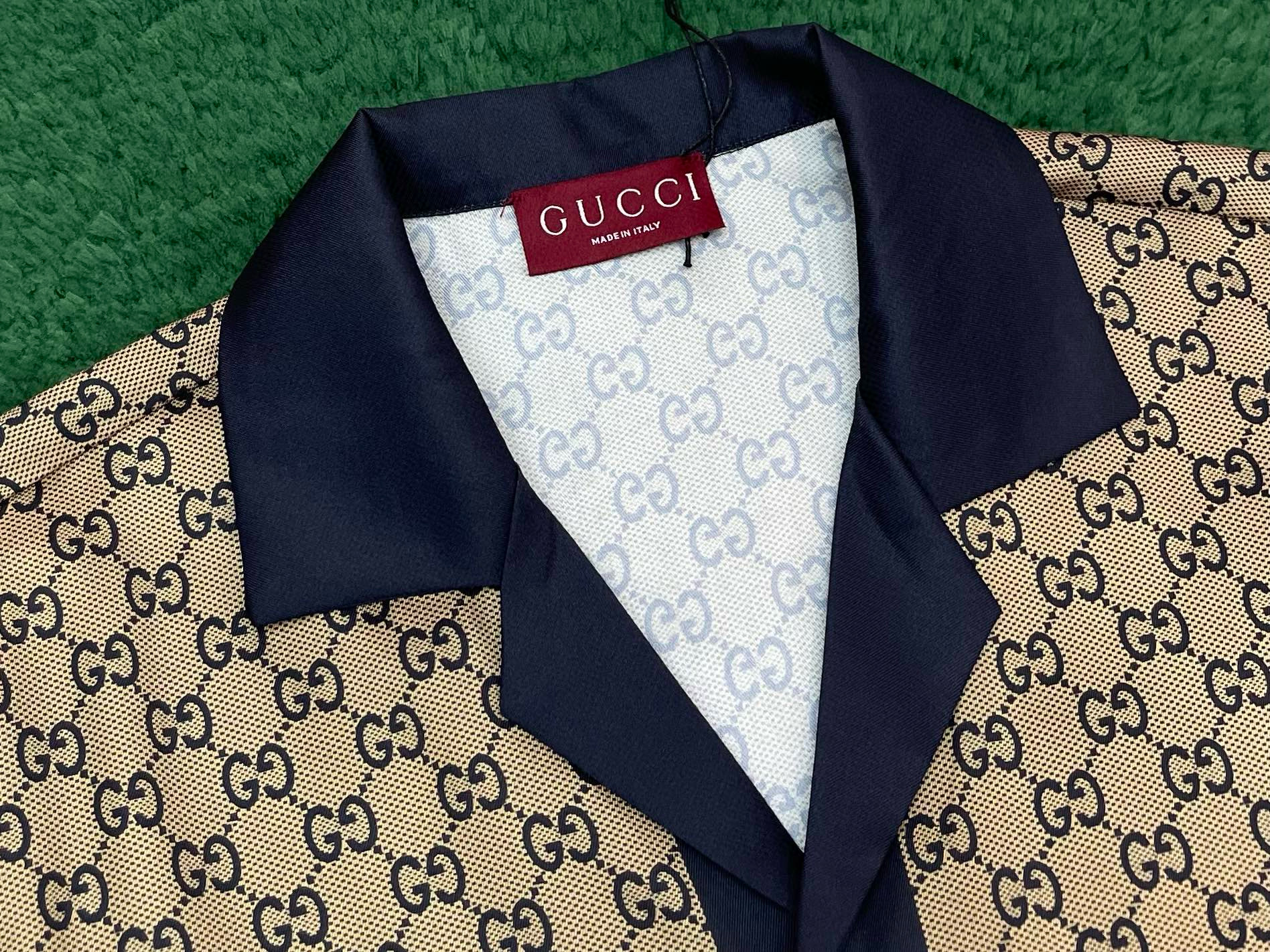 NIGO Gucci Men's Summer Logo Full Print Single Breasted Short Sleeve Shirt Stretch Waist Casual Shorts Set Suit #nigo75828