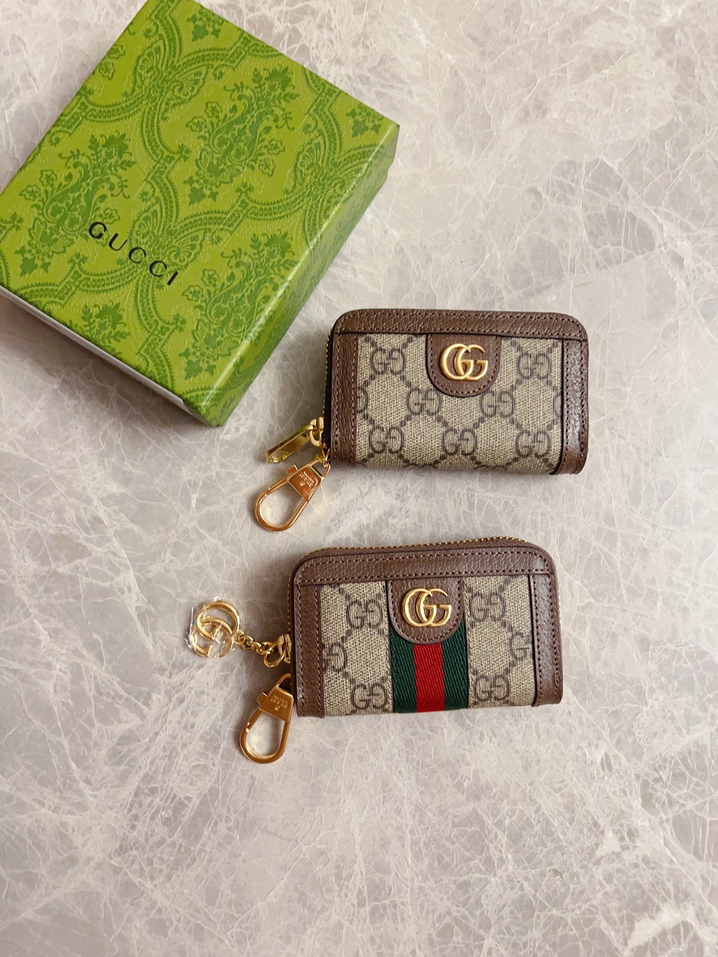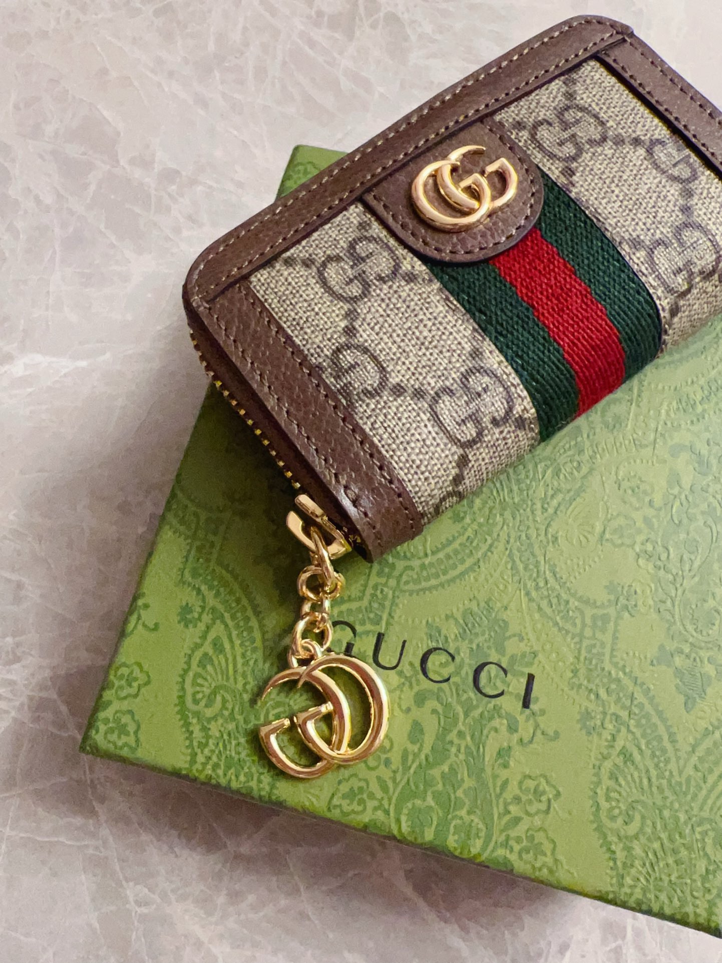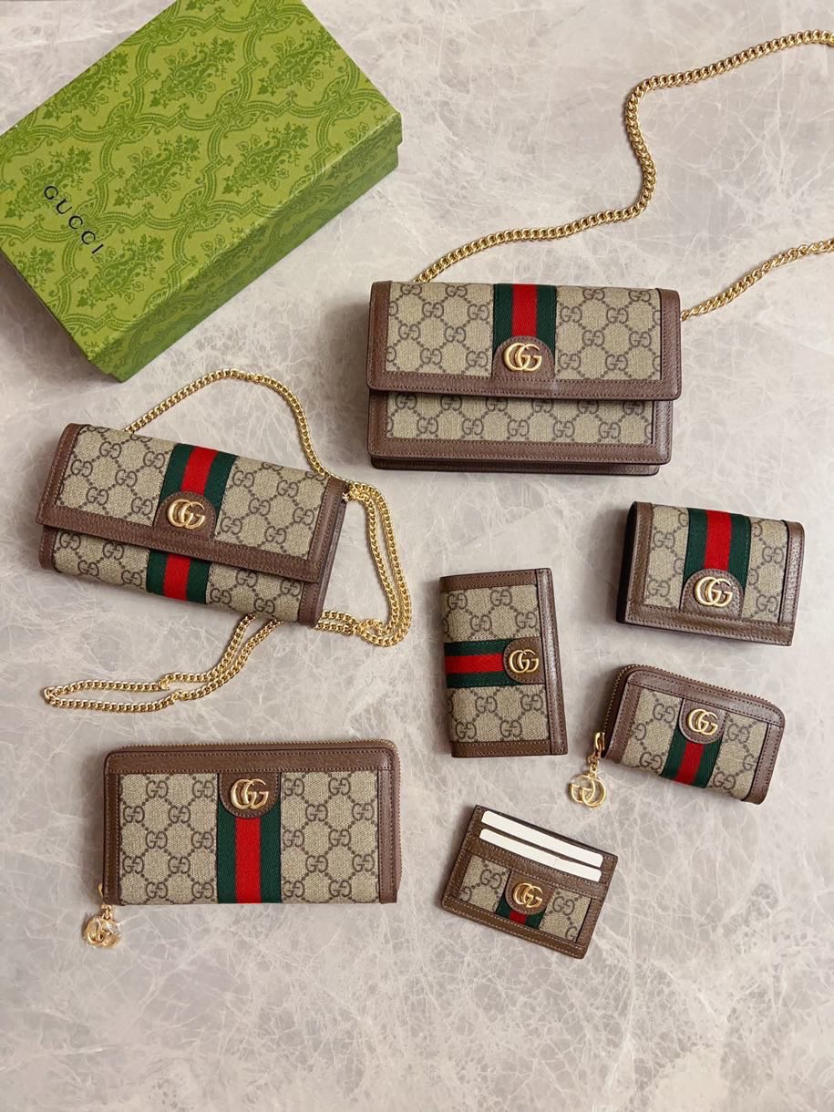 NIGO Gucci Men's Women's Ophidia Collection Short Wallet GG Printing Red Green Stripe Webbing Zipper Closure Canvas Bag Casual Purse #nigo71671
