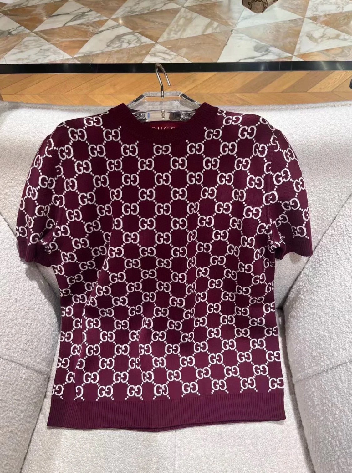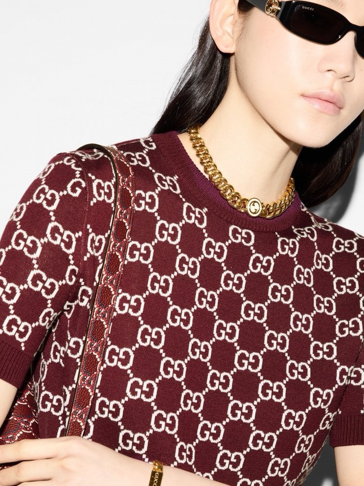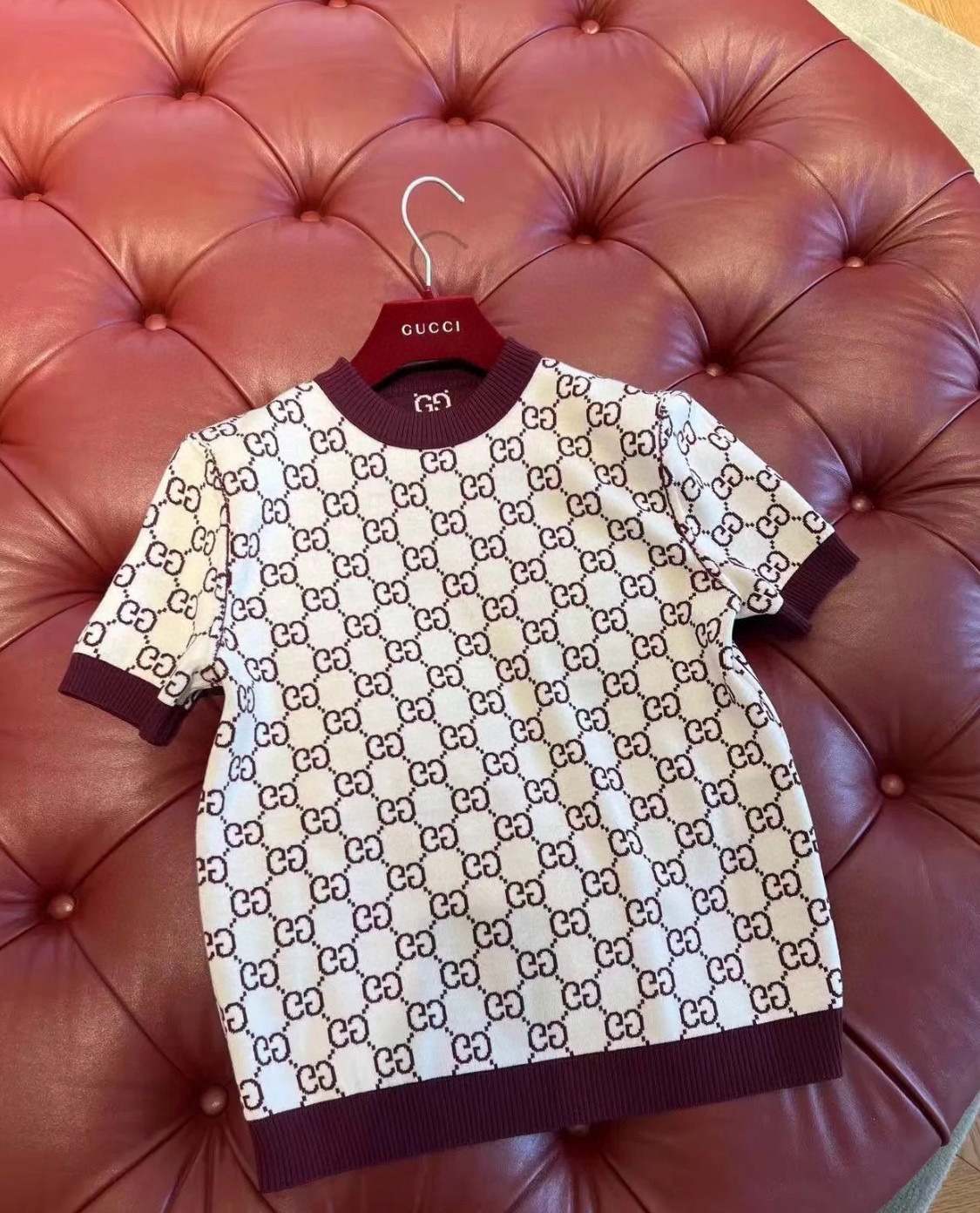 NIGO Gucci Spring Women's Monogrammed Reversible Crew Neck Short Sleeve Knit T-Shirt #nigo73984