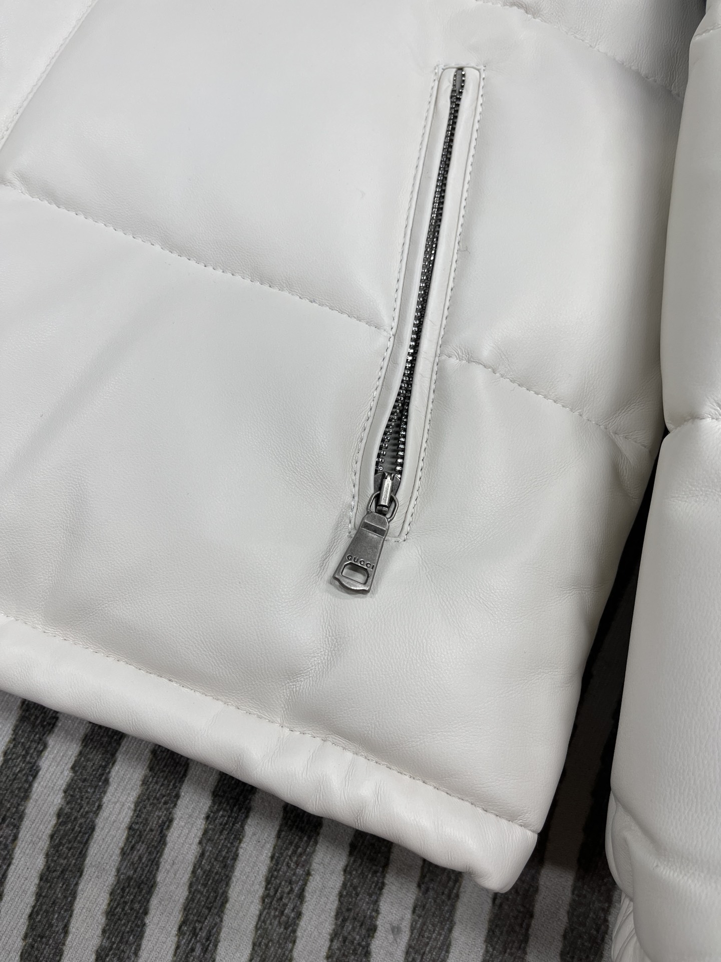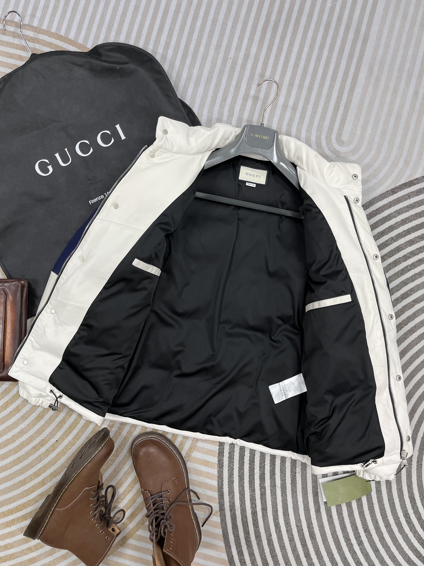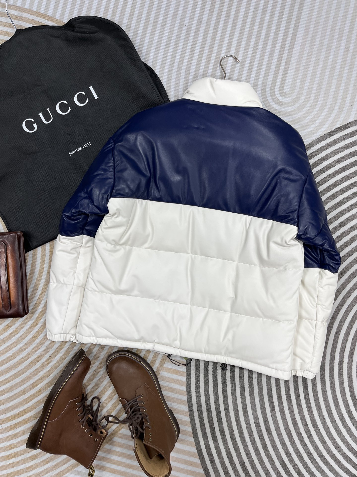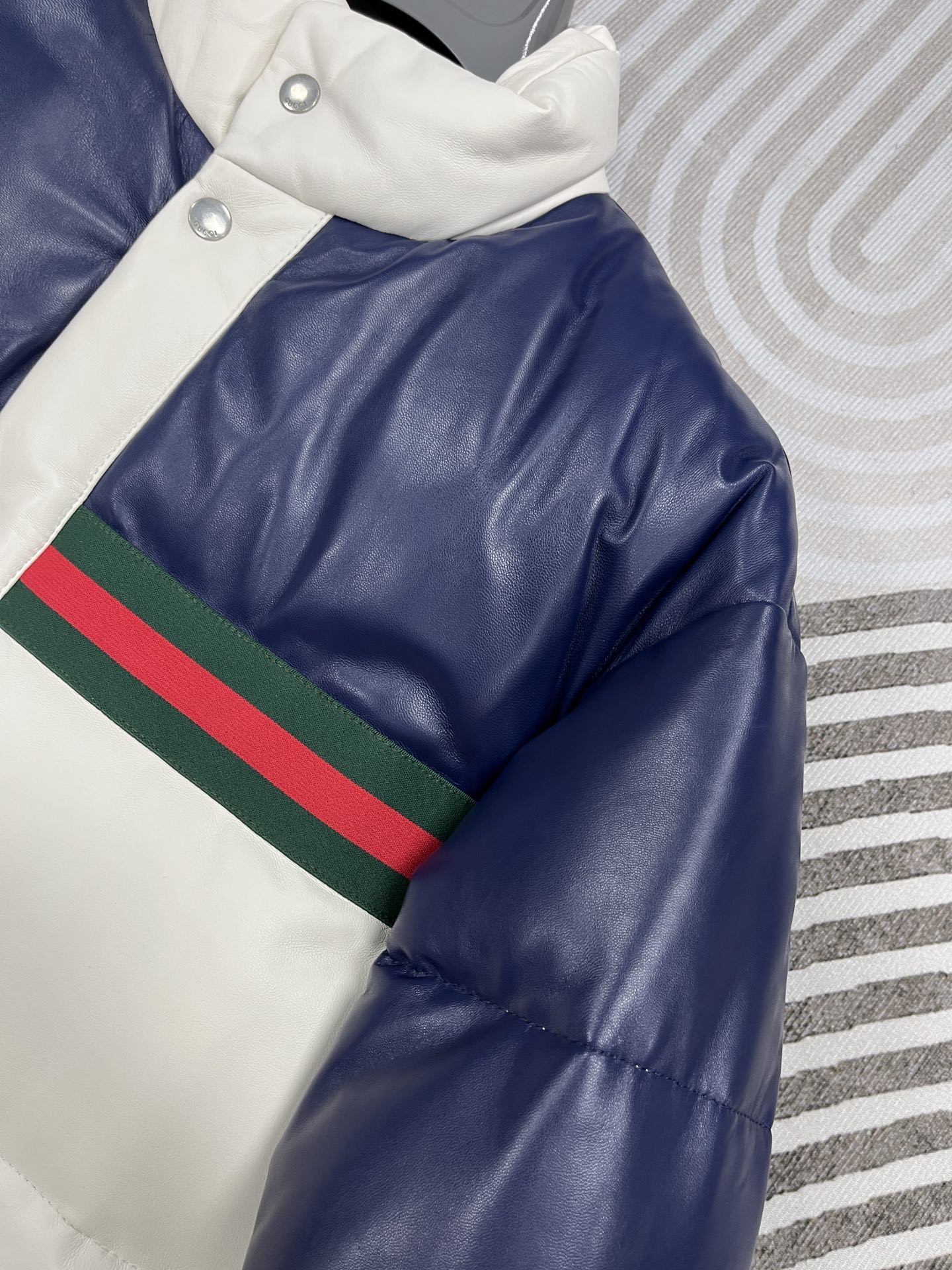 NIGO Gucci Women's Autumn and Winter Clashing Stripes Decoration Long Sleeve Standing Collar Leather Puffer Down Jacket #nigo74935