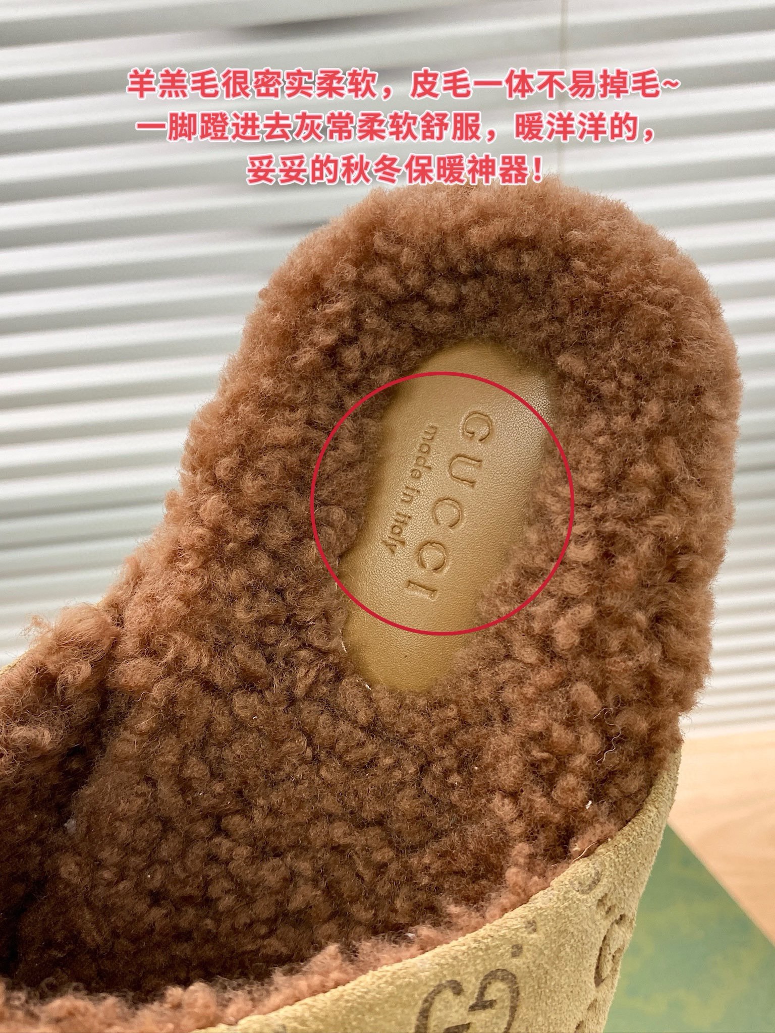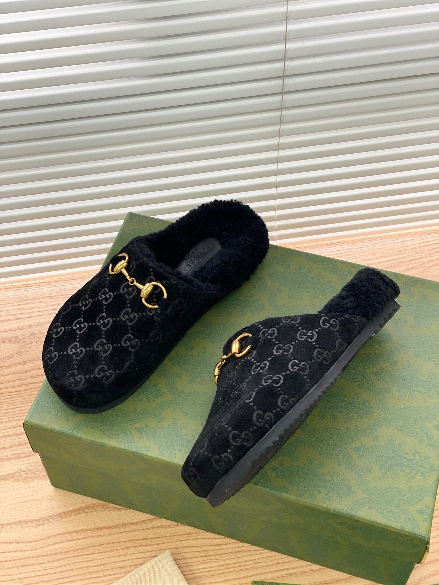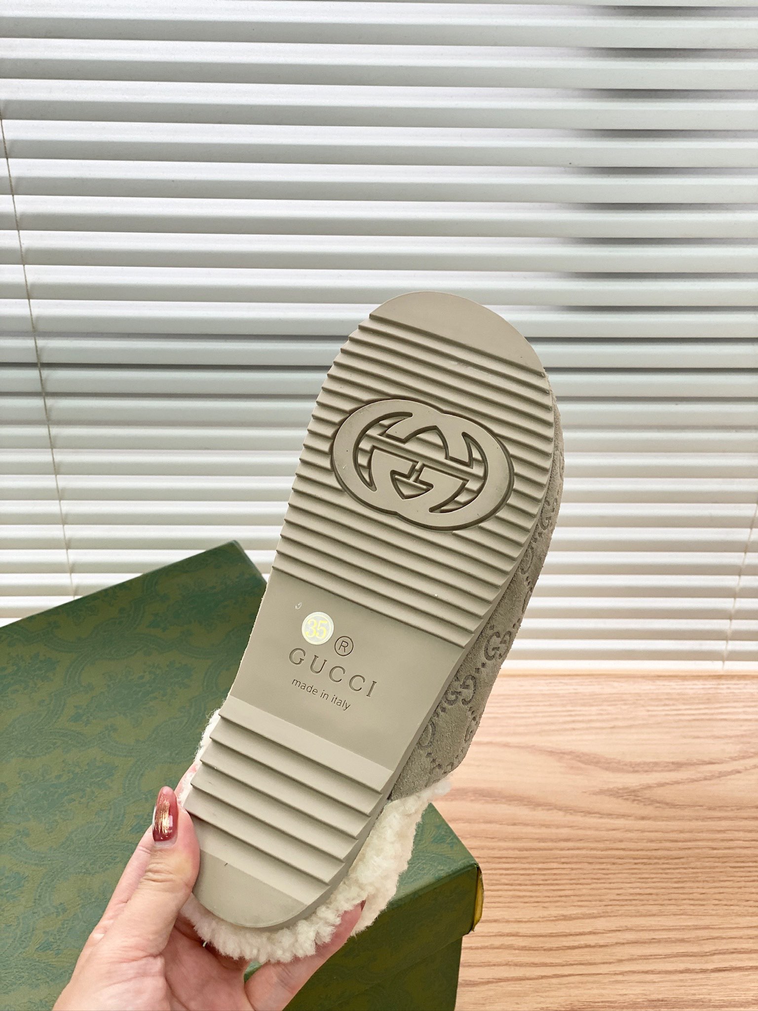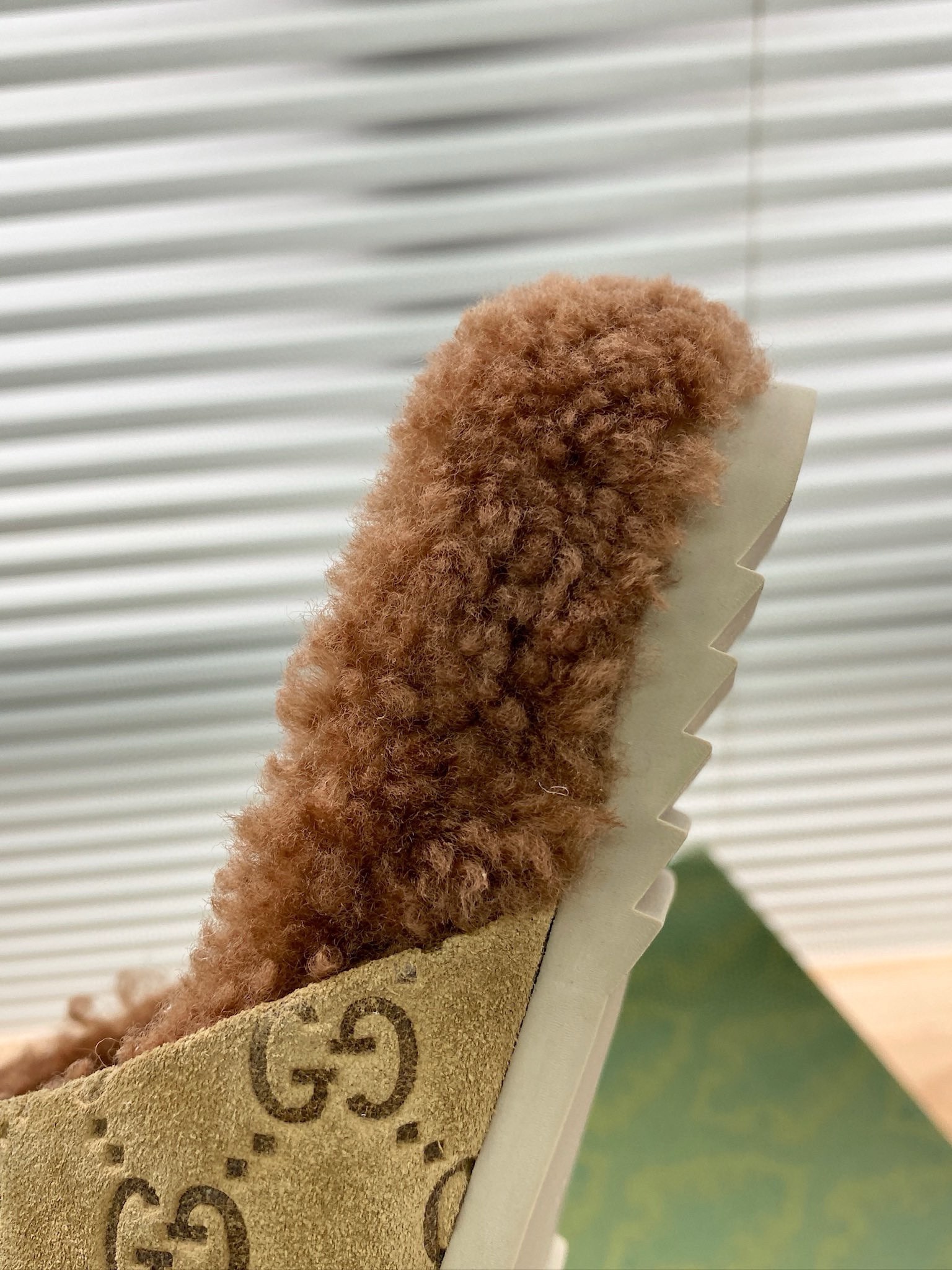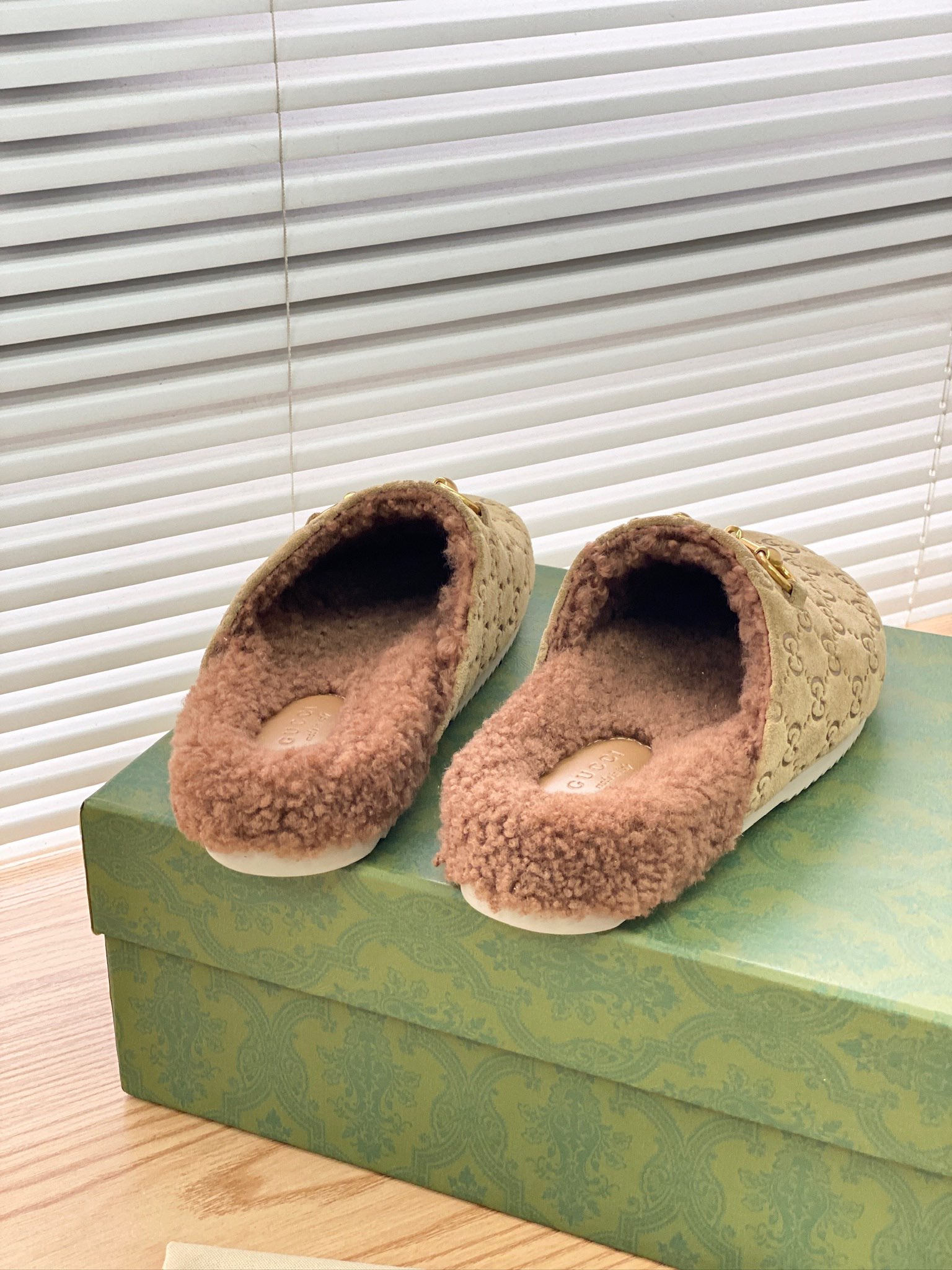 NIGO Gucci Women's Autumn and Winter Suede Alphabet Printed Lamb Suede Slippers Shoes #nigo74337