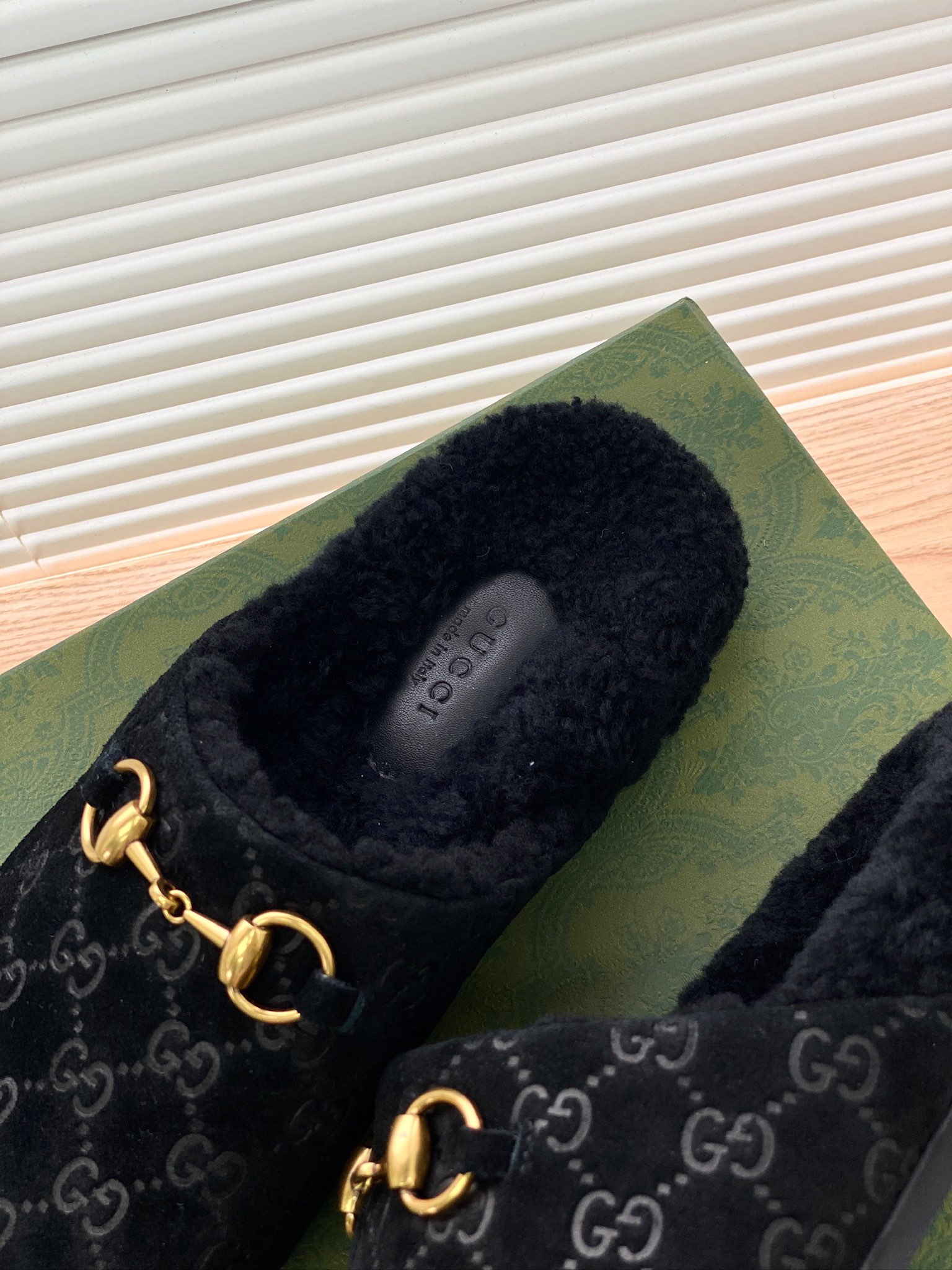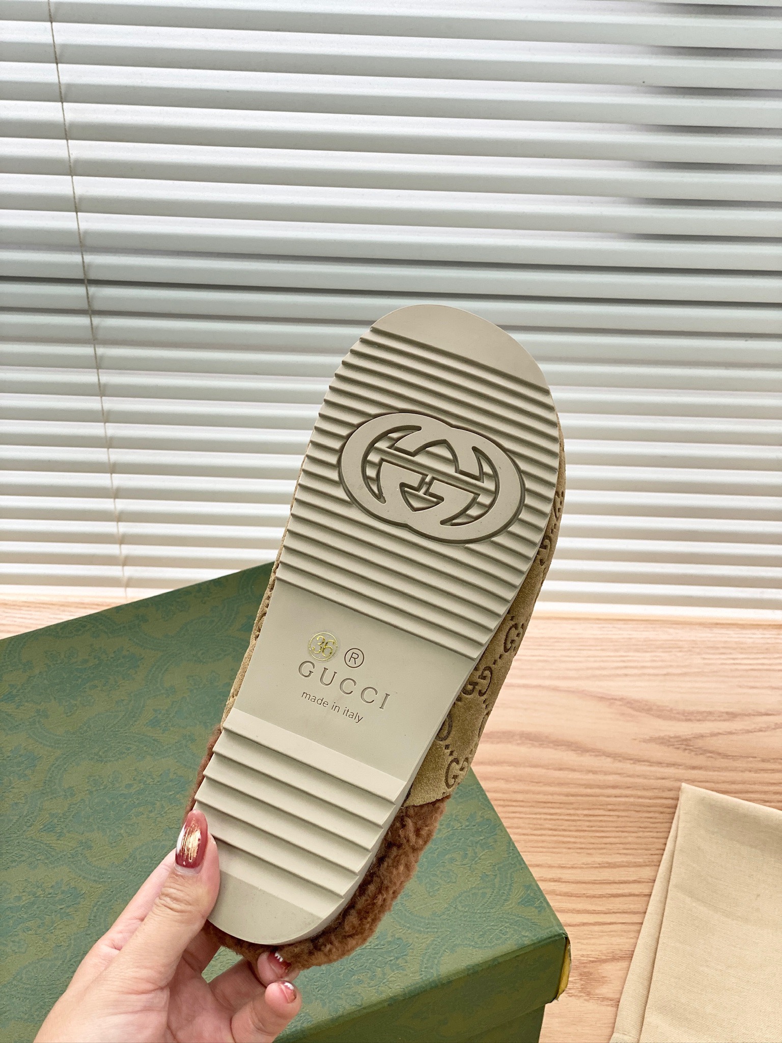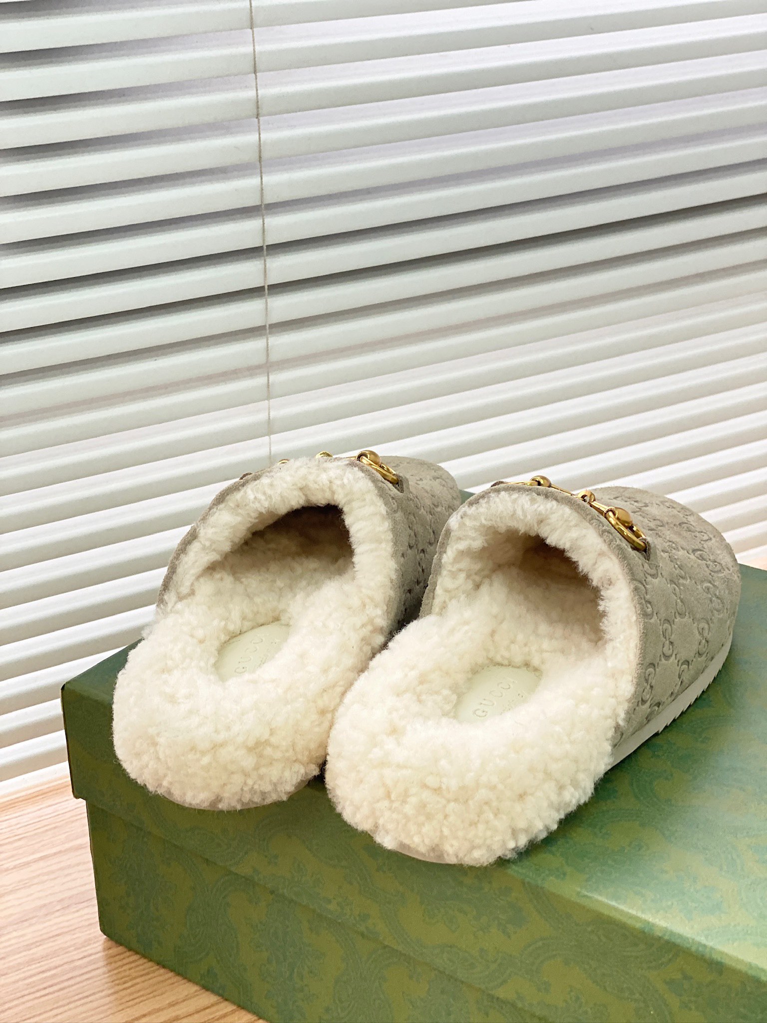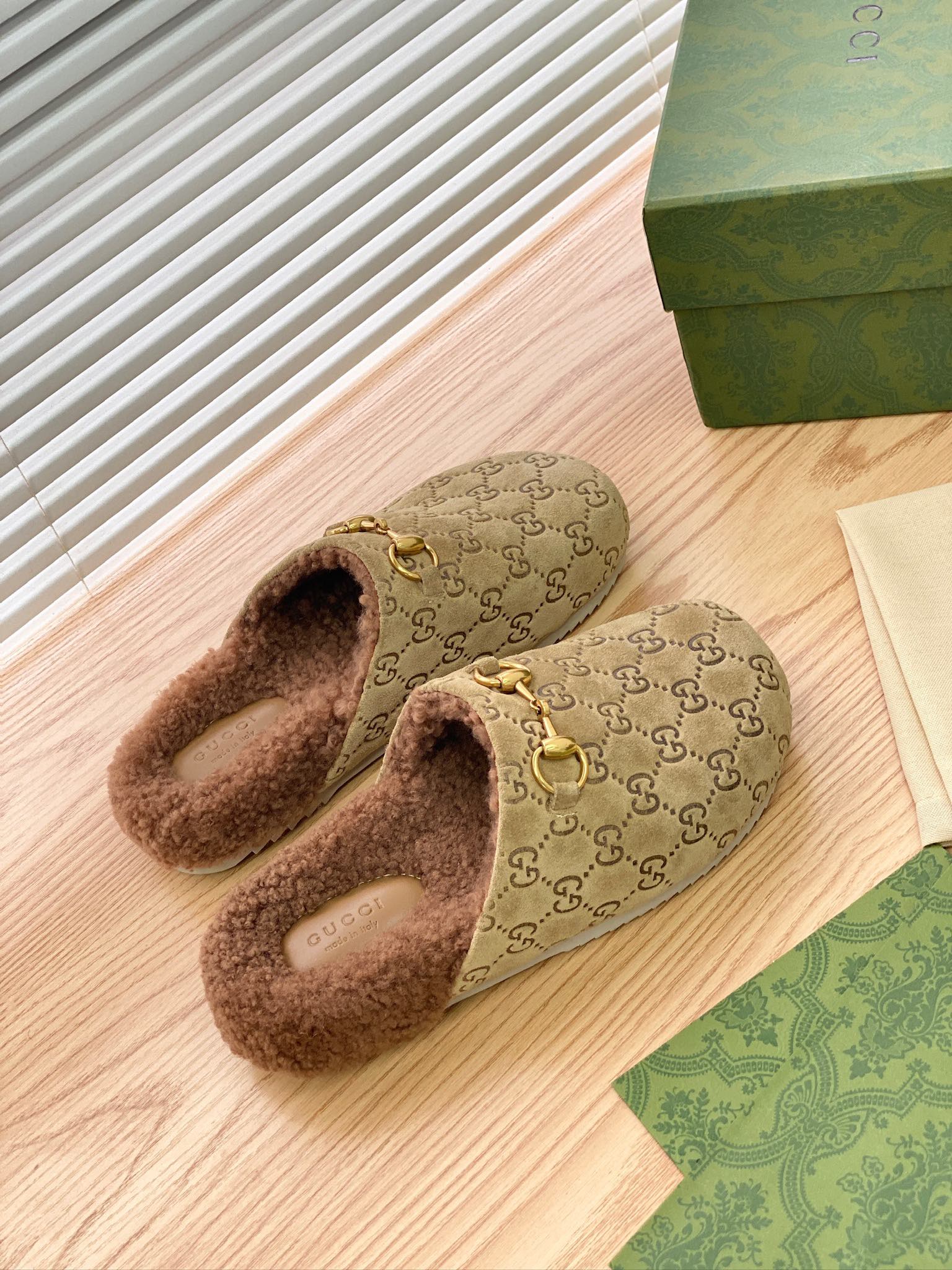 NIGO Gucci Women's Autumn and Winter Suede Alphabet Printed Lamb Suede Slippers Shoes #nigo74337