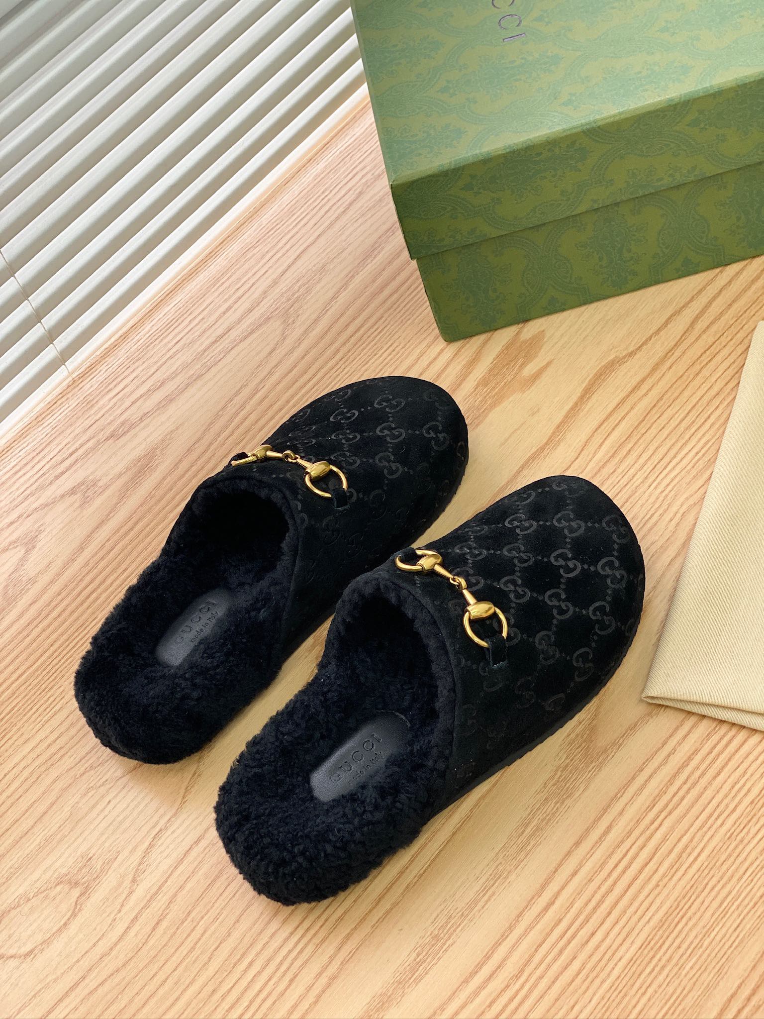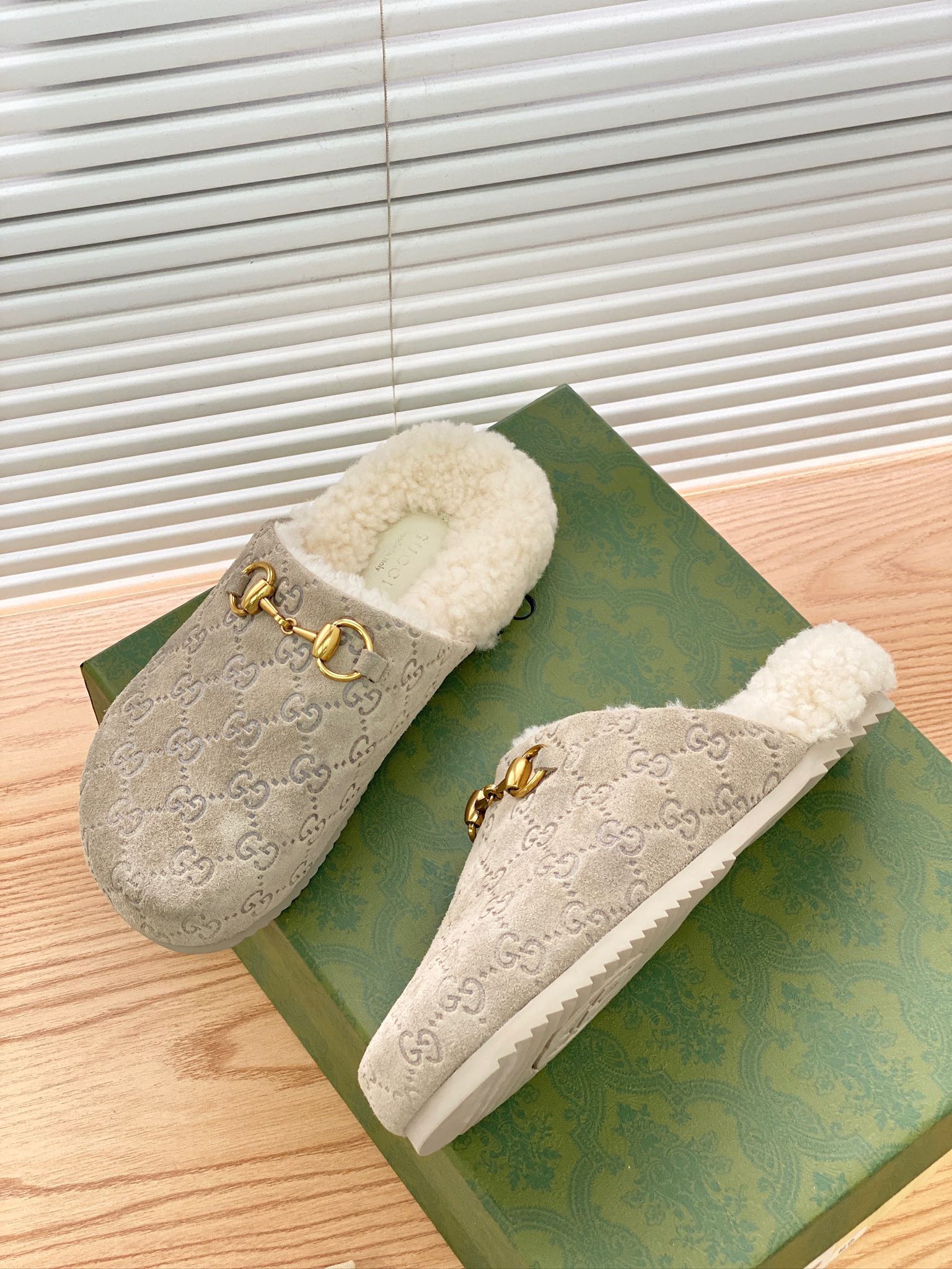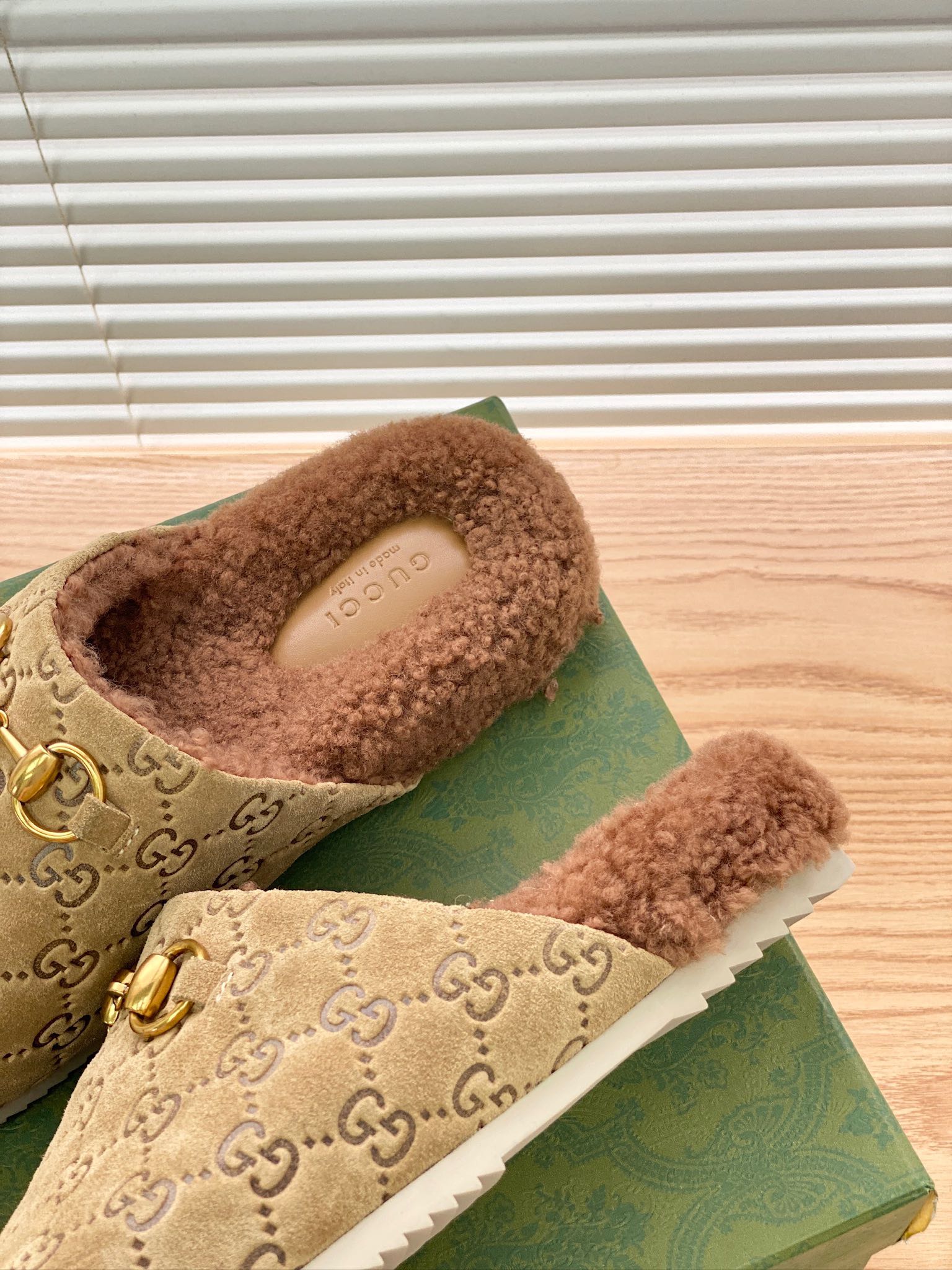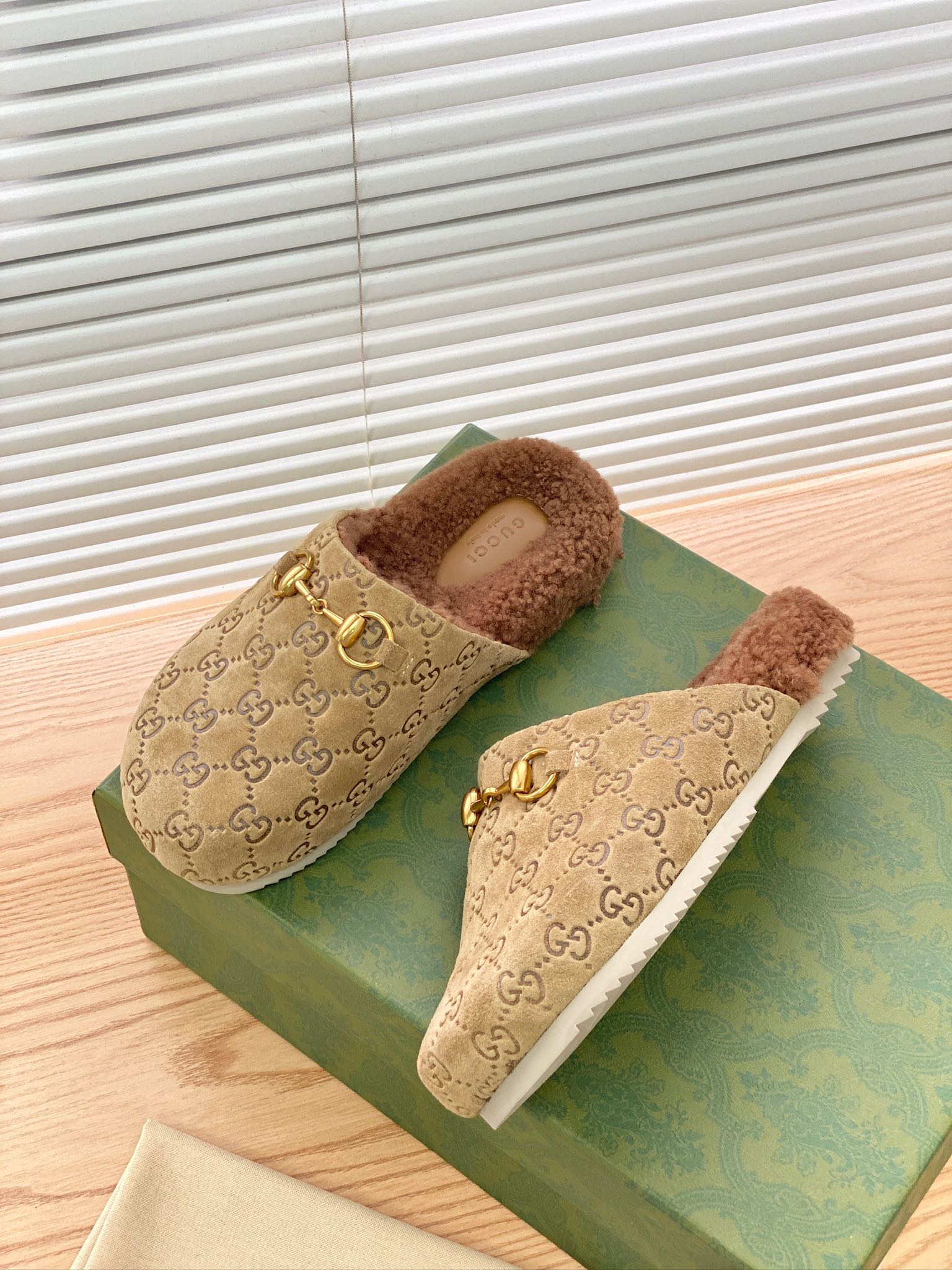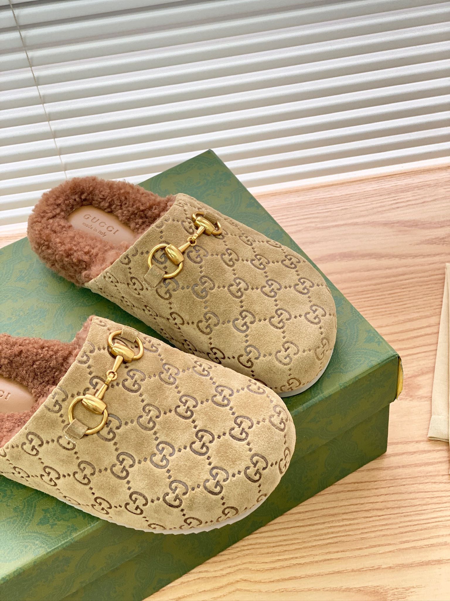 NIGO Gucci Women's Autumn and Winter Suede Alphabet Printed Lamb Suede Slippers Shoes #nigo74337