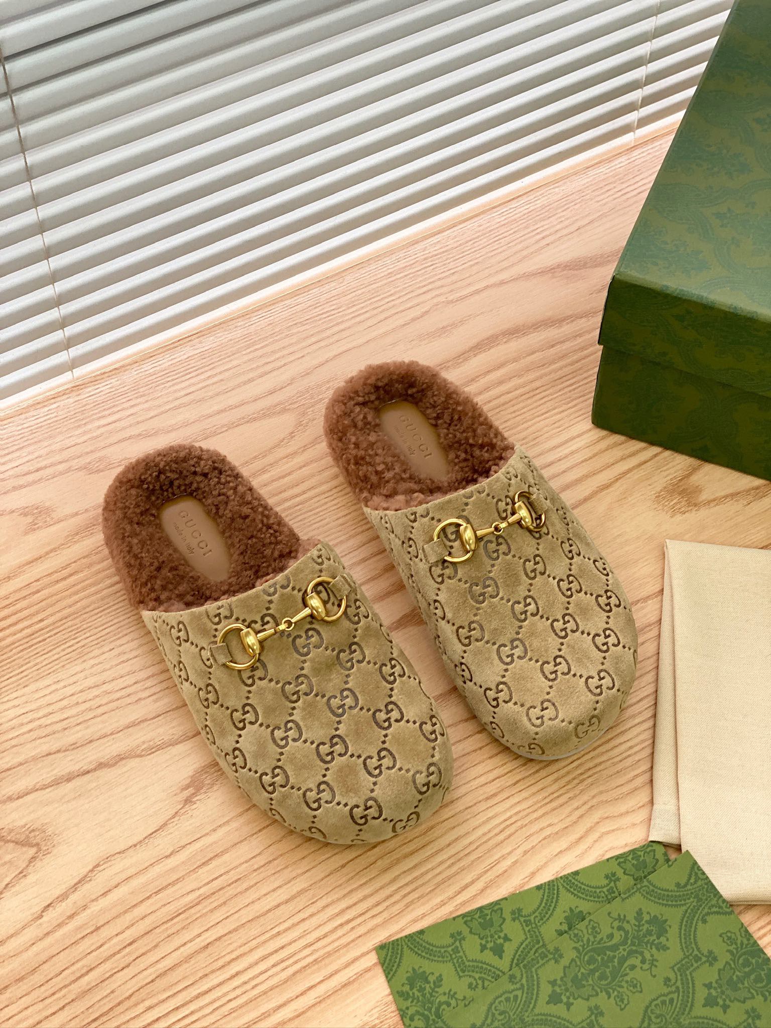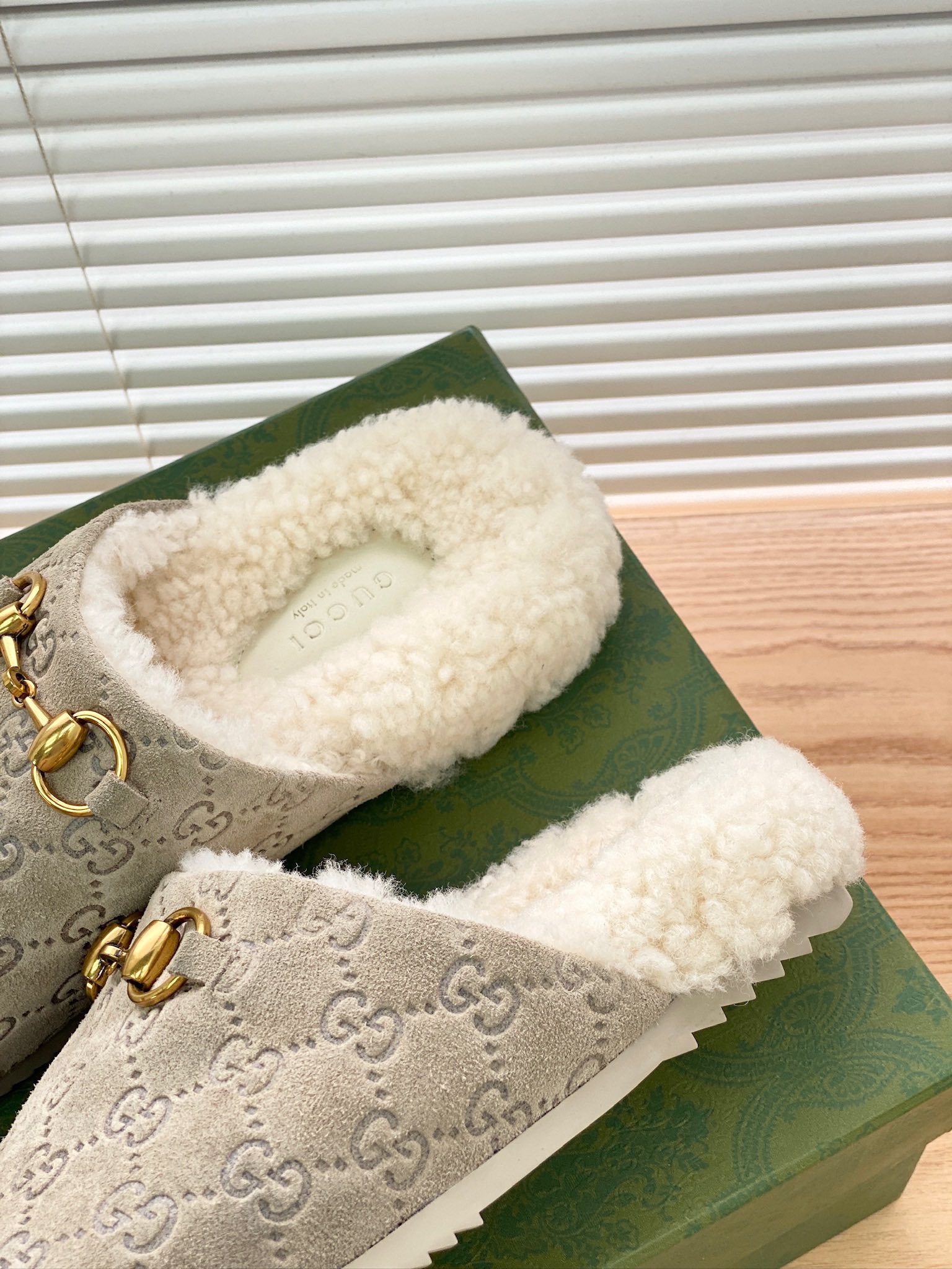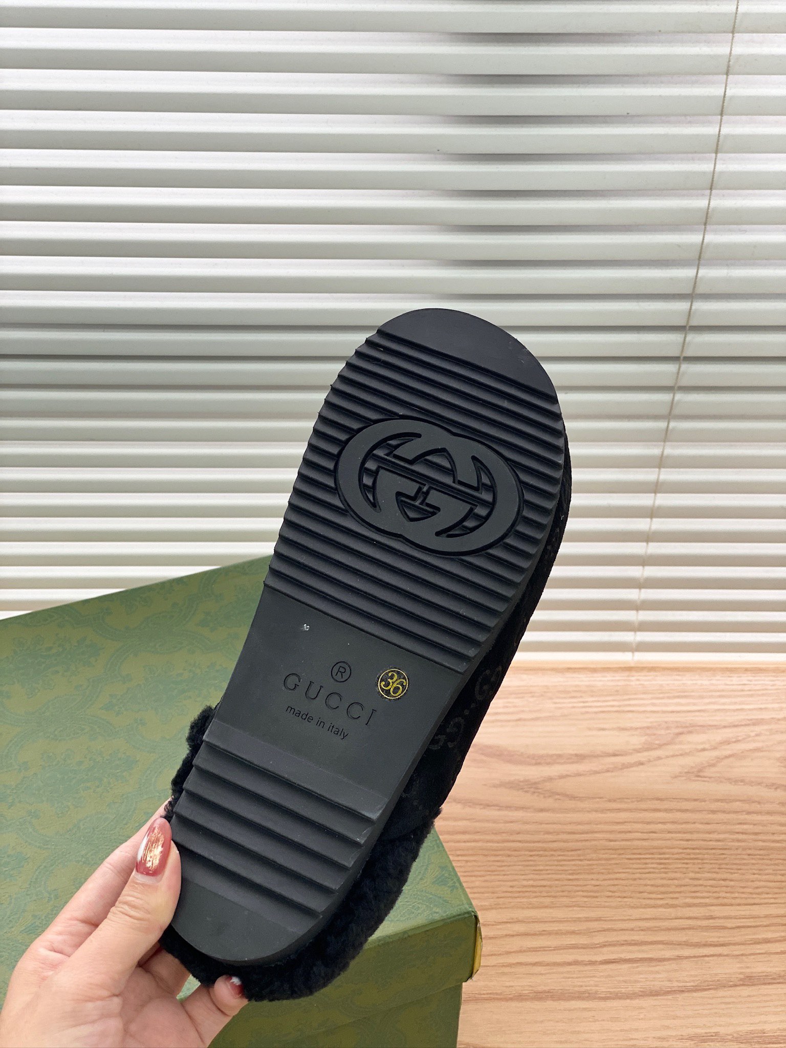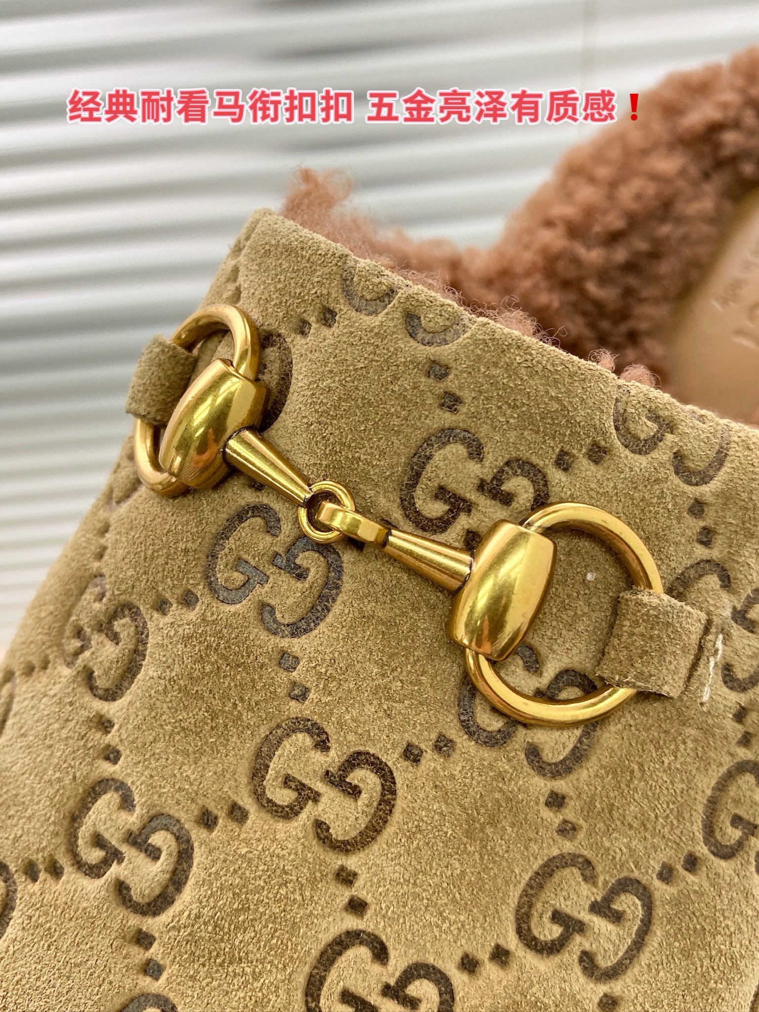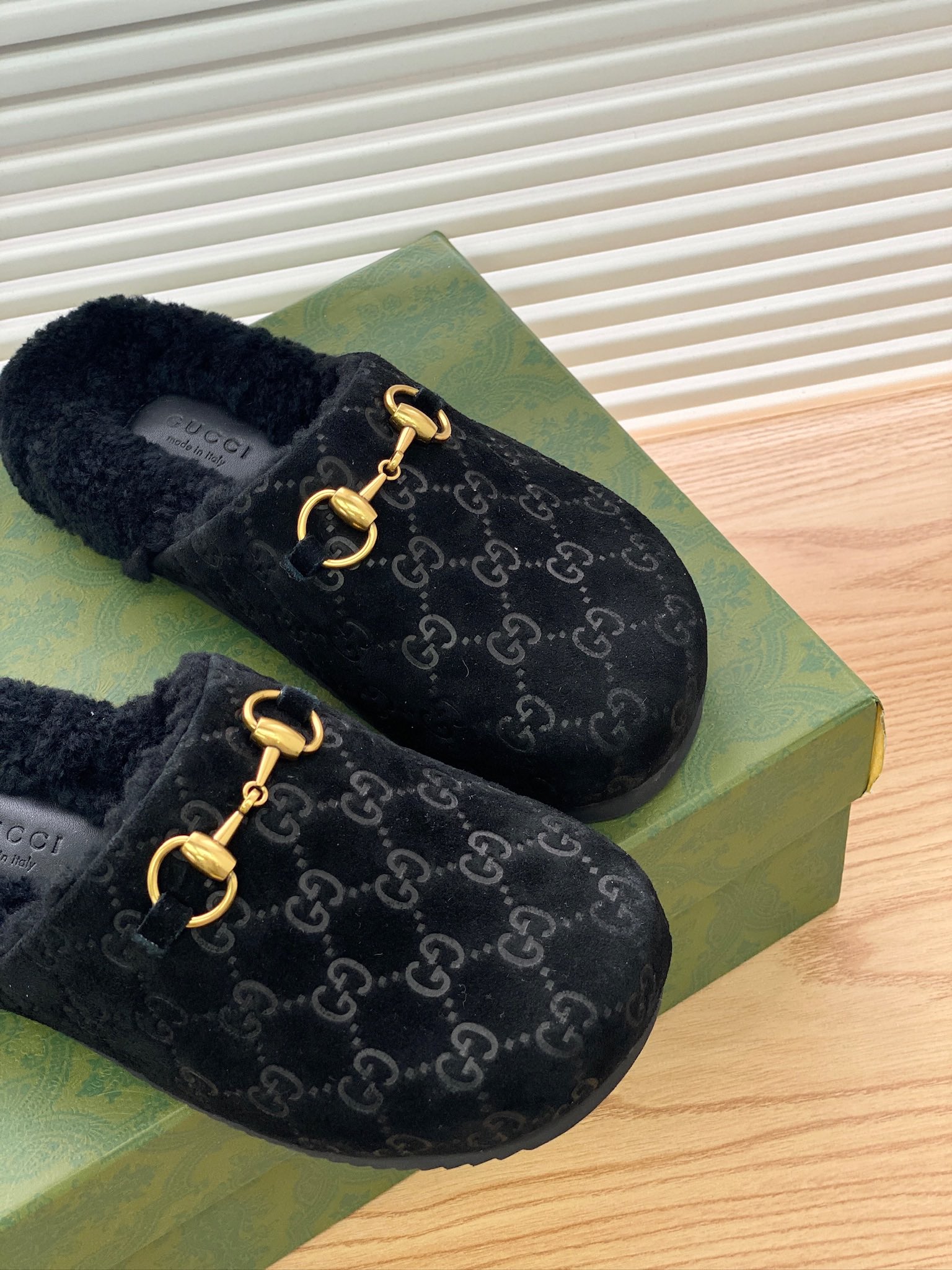 NIGO Gucci Women's Autumn and Winter Suede Alphabet Printed Lamb Suede Slippers Shoes #nigo74337