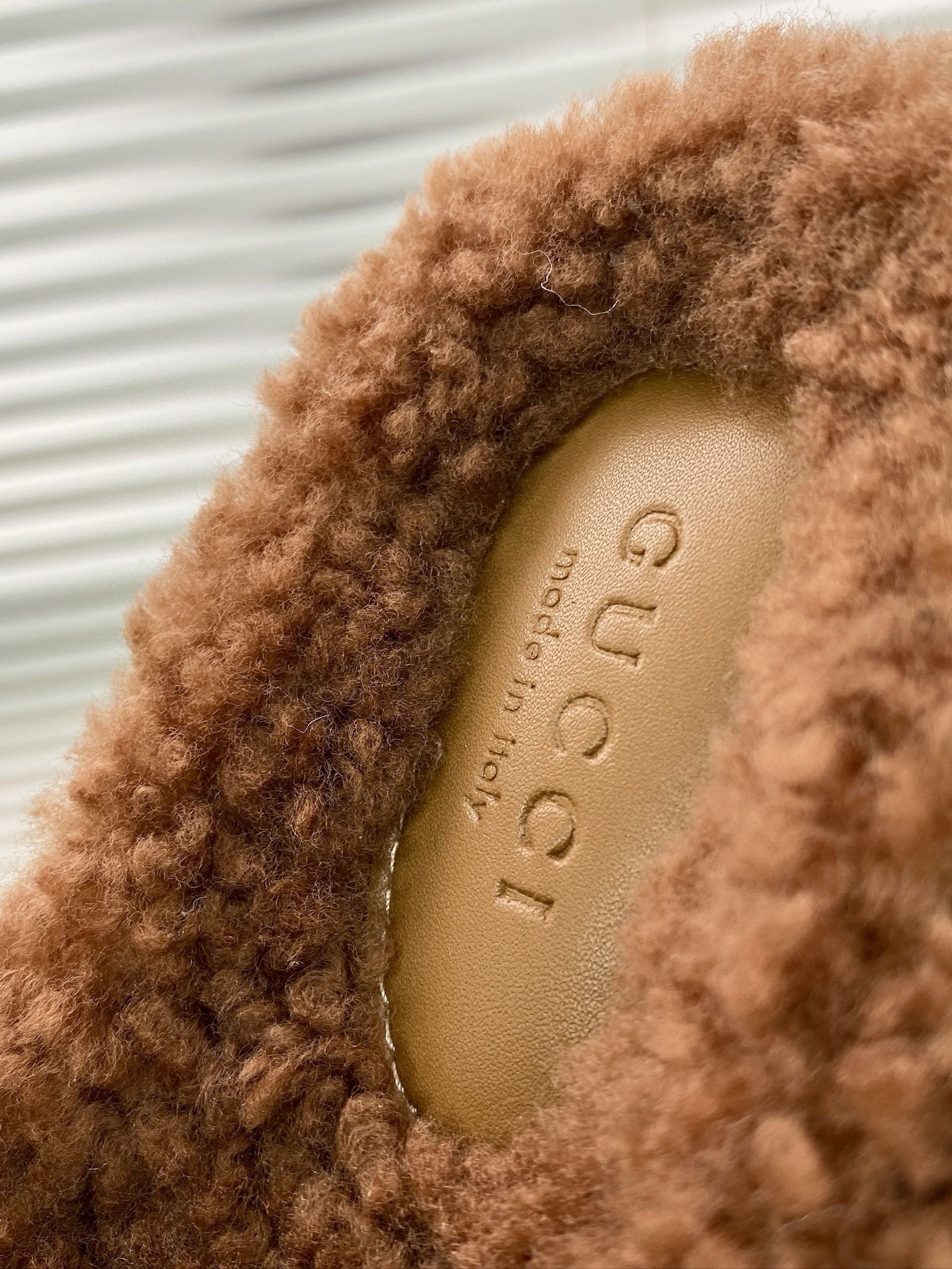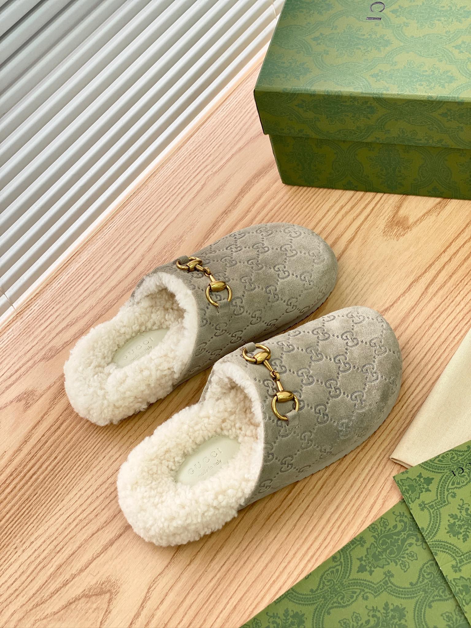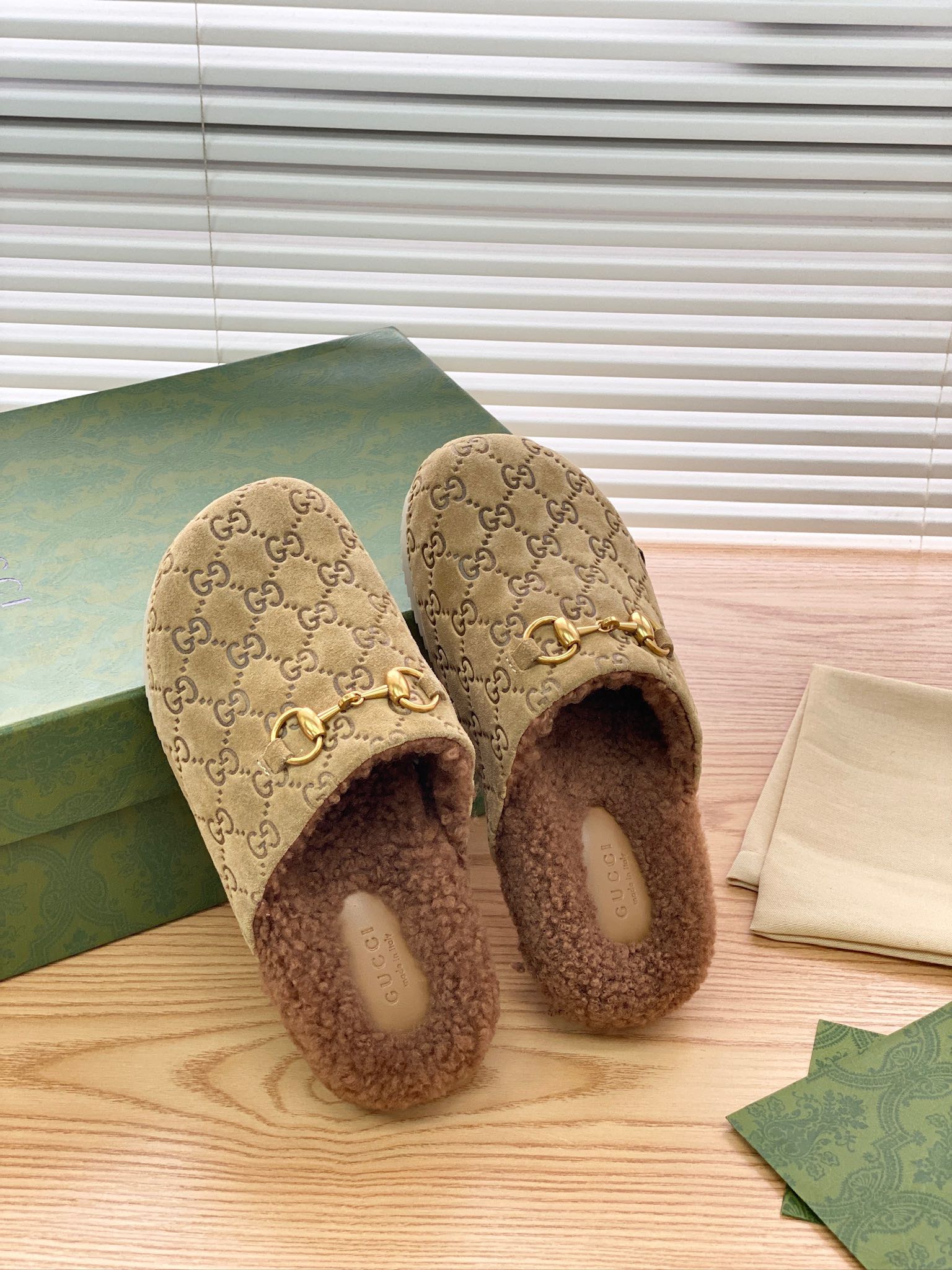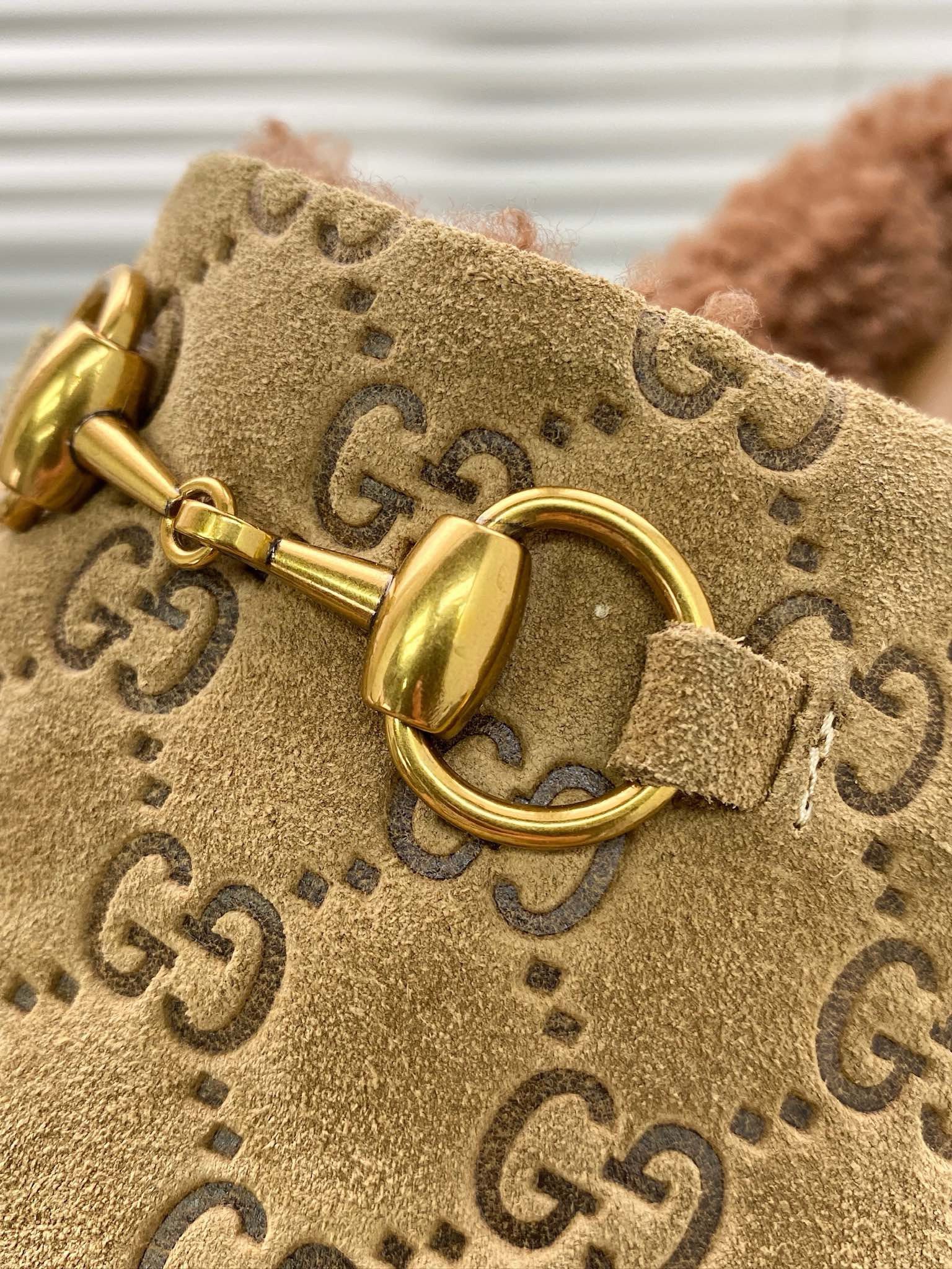 NIGO Gucci Women's Autumn and Winter Suede Alphabet Printed Lamb Suede Slippers Shoes #nigo74337