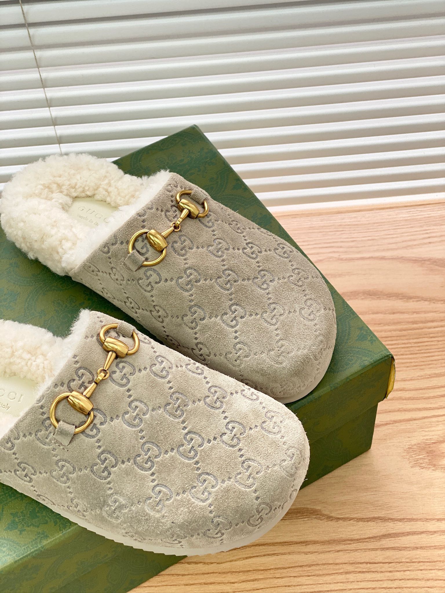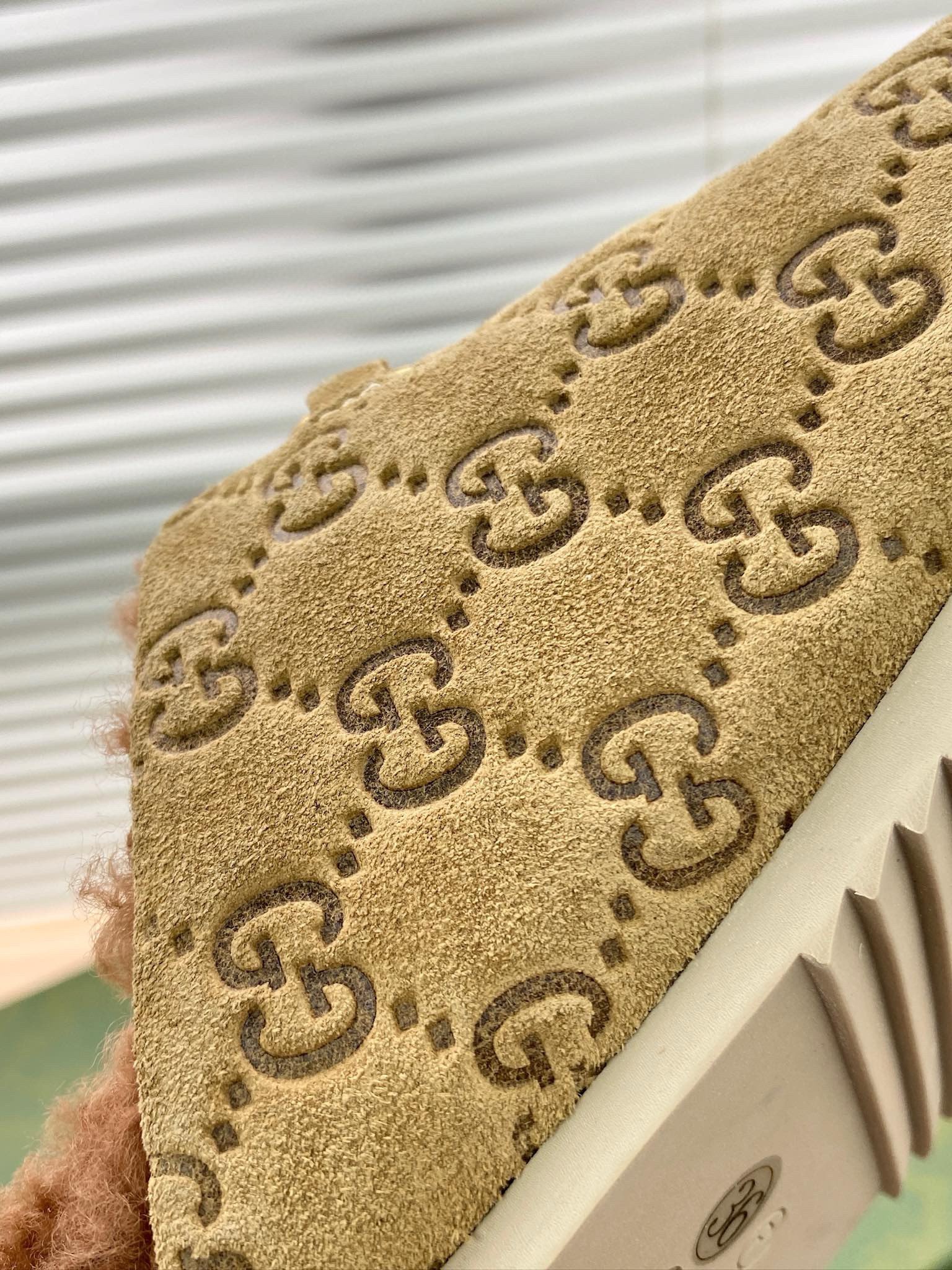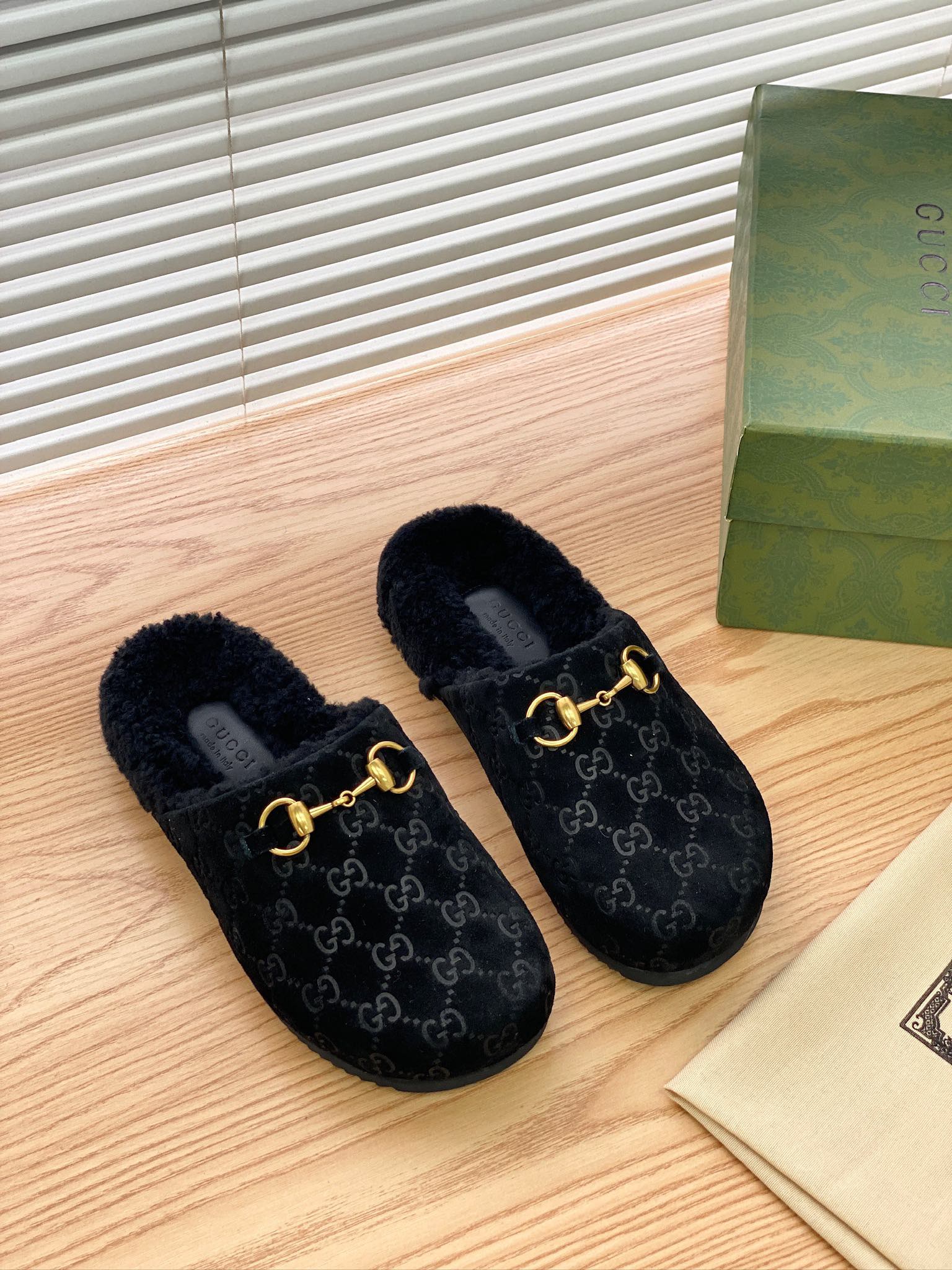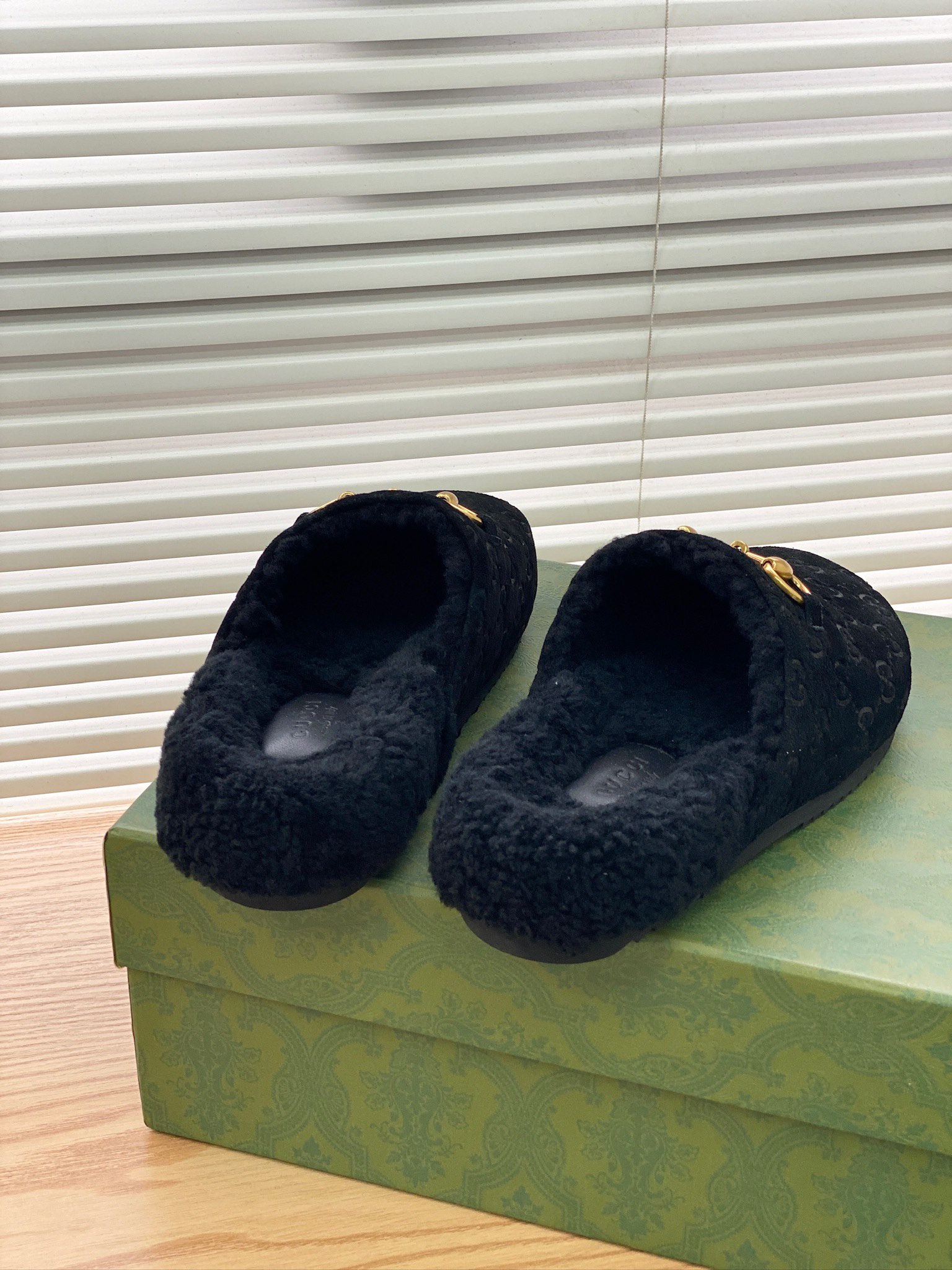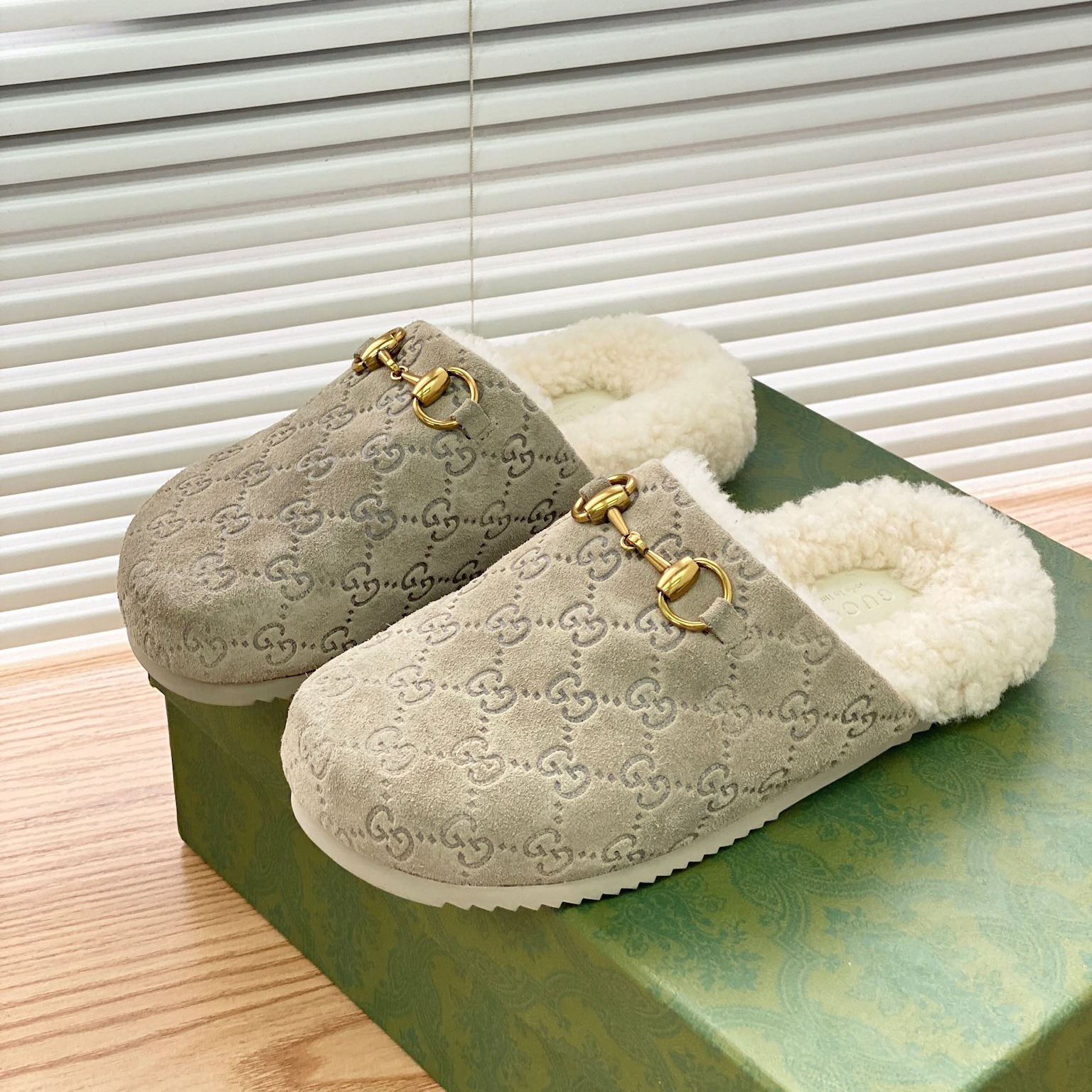 NIGO Gucci Women's Autumn and Winter Suede Alphabet Printed Lamb Suede Slippers Shoes #nigo74337
