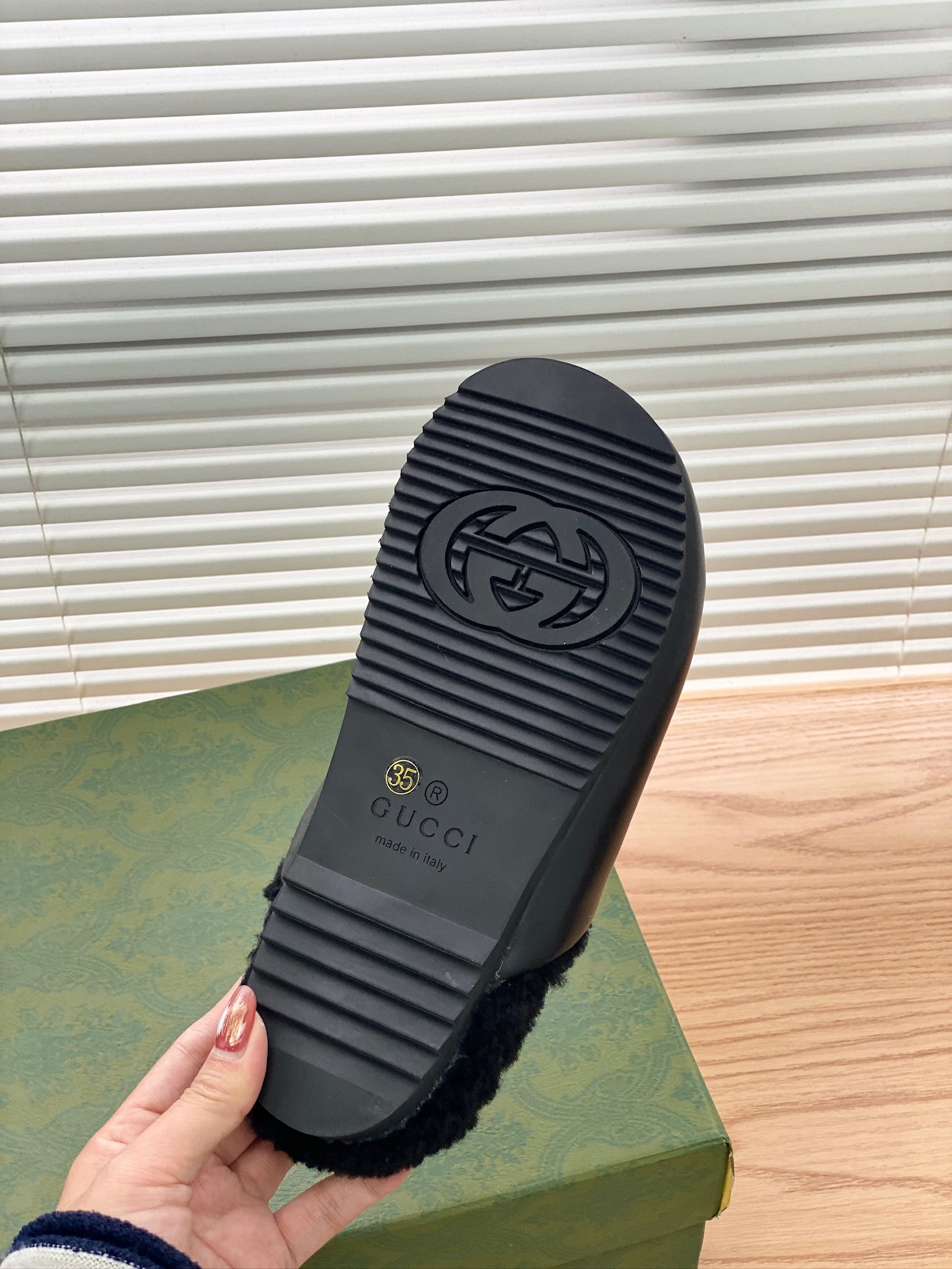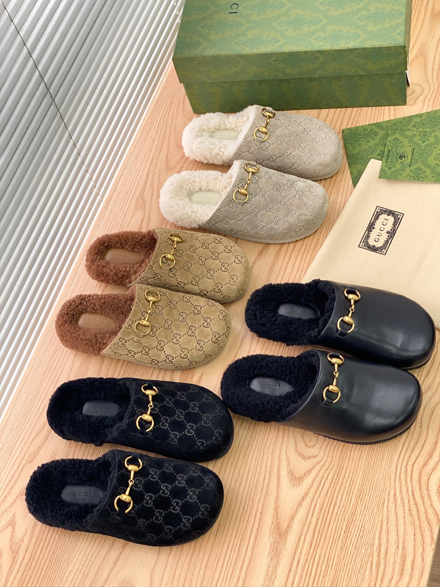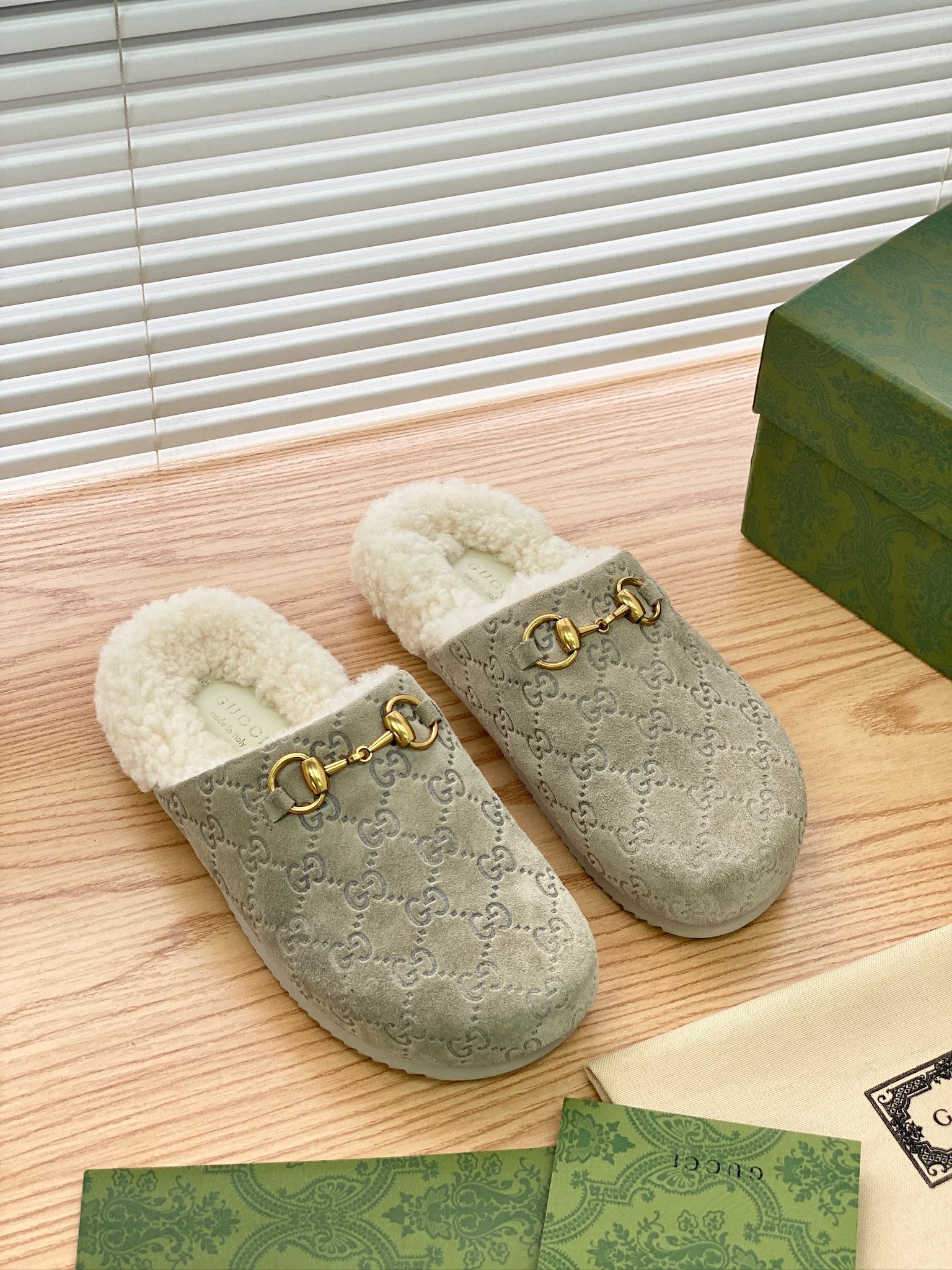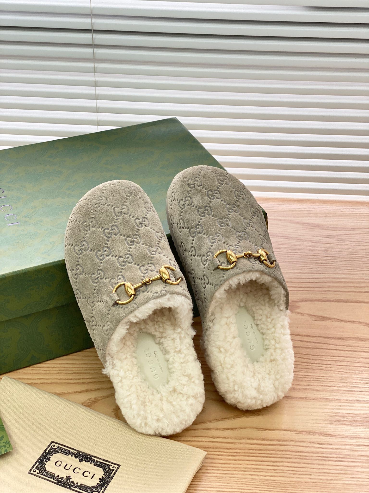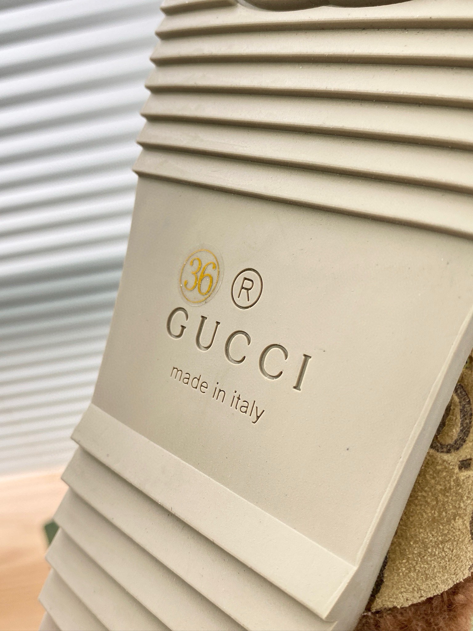 NIGO Gucci Women's Autumn and Winter Suede Alphabet Printed Lamb Suede Slippers Shoes #nigo74337