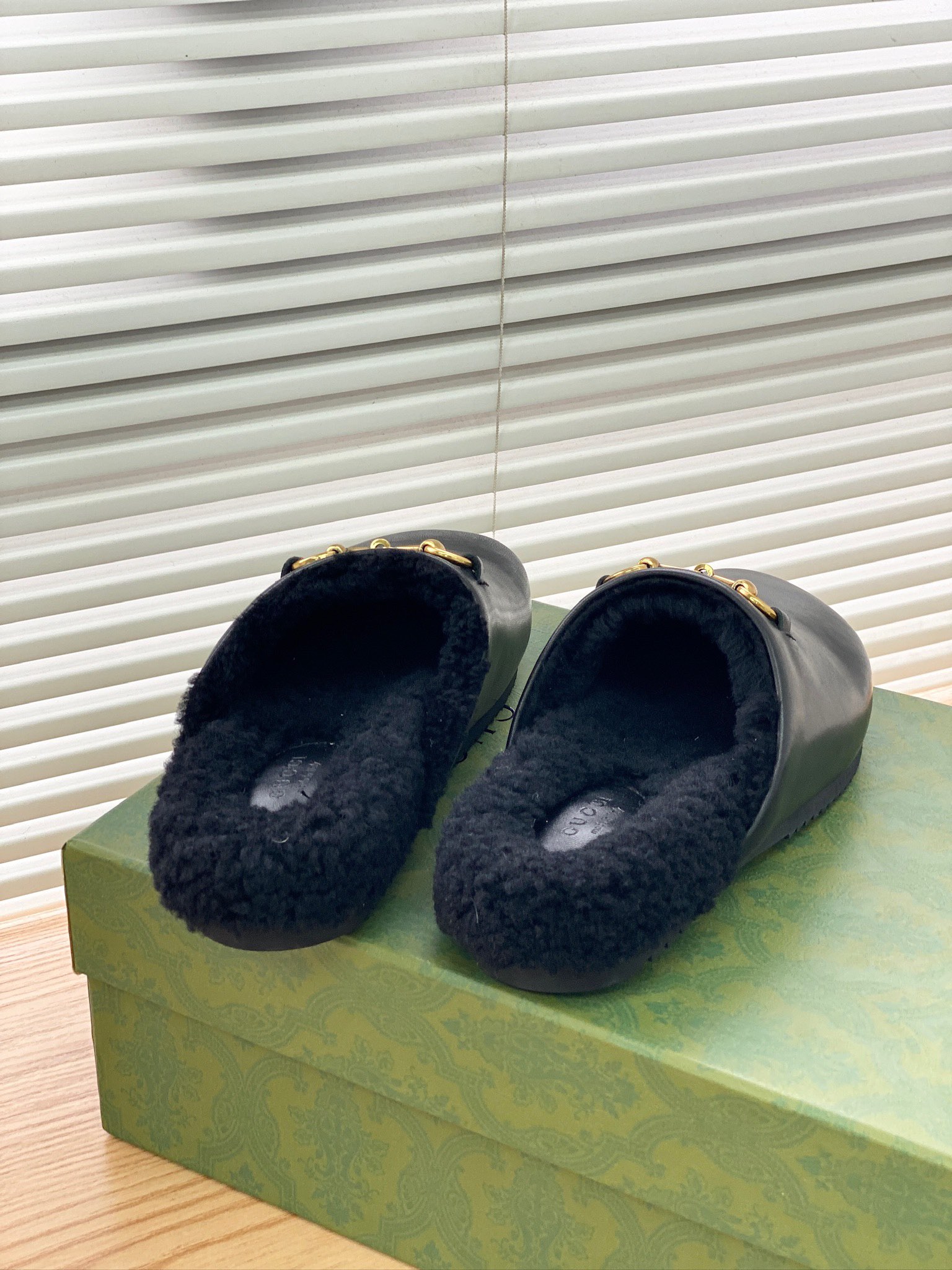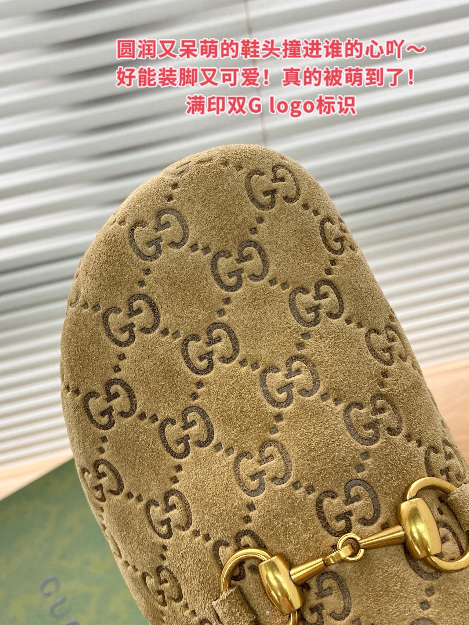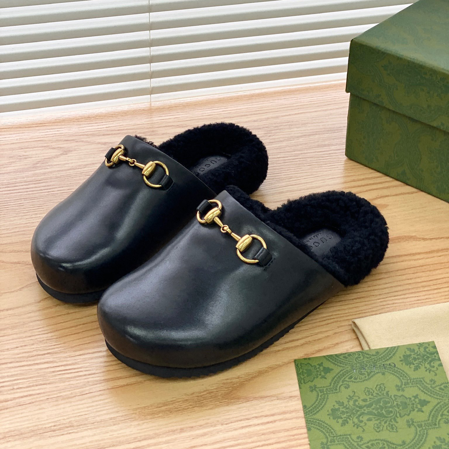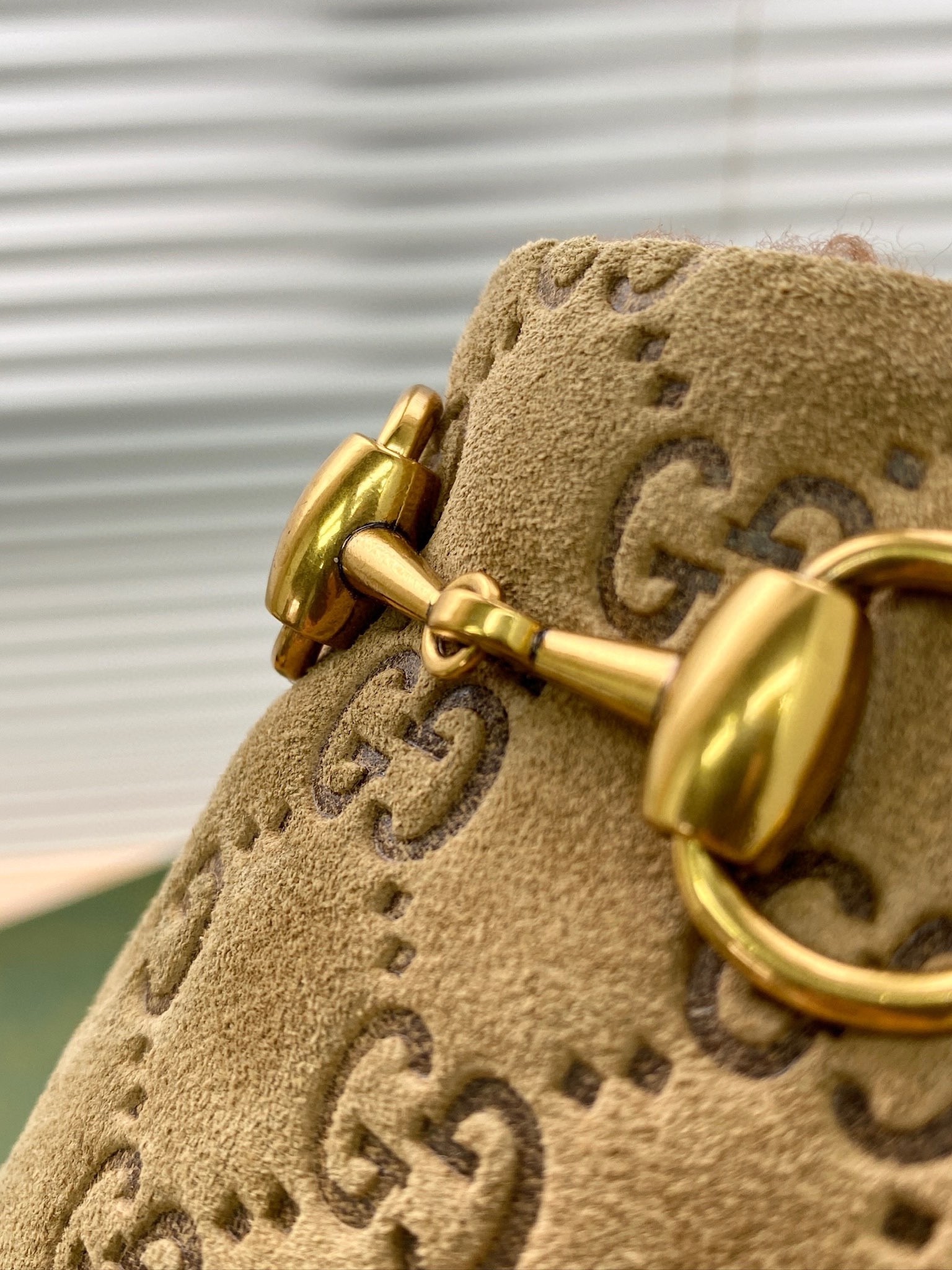 NIGO Gucci Women's Autumn and Winter Suede Alphabet Printed Lamb Suede Slippers Shoes #nigo74337