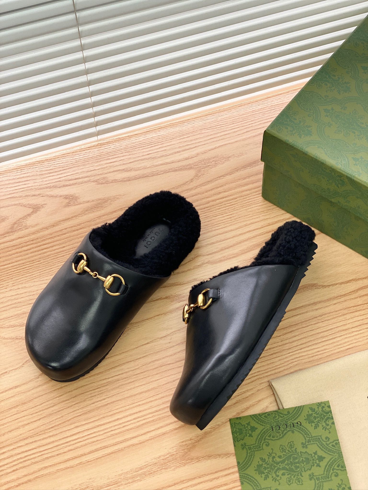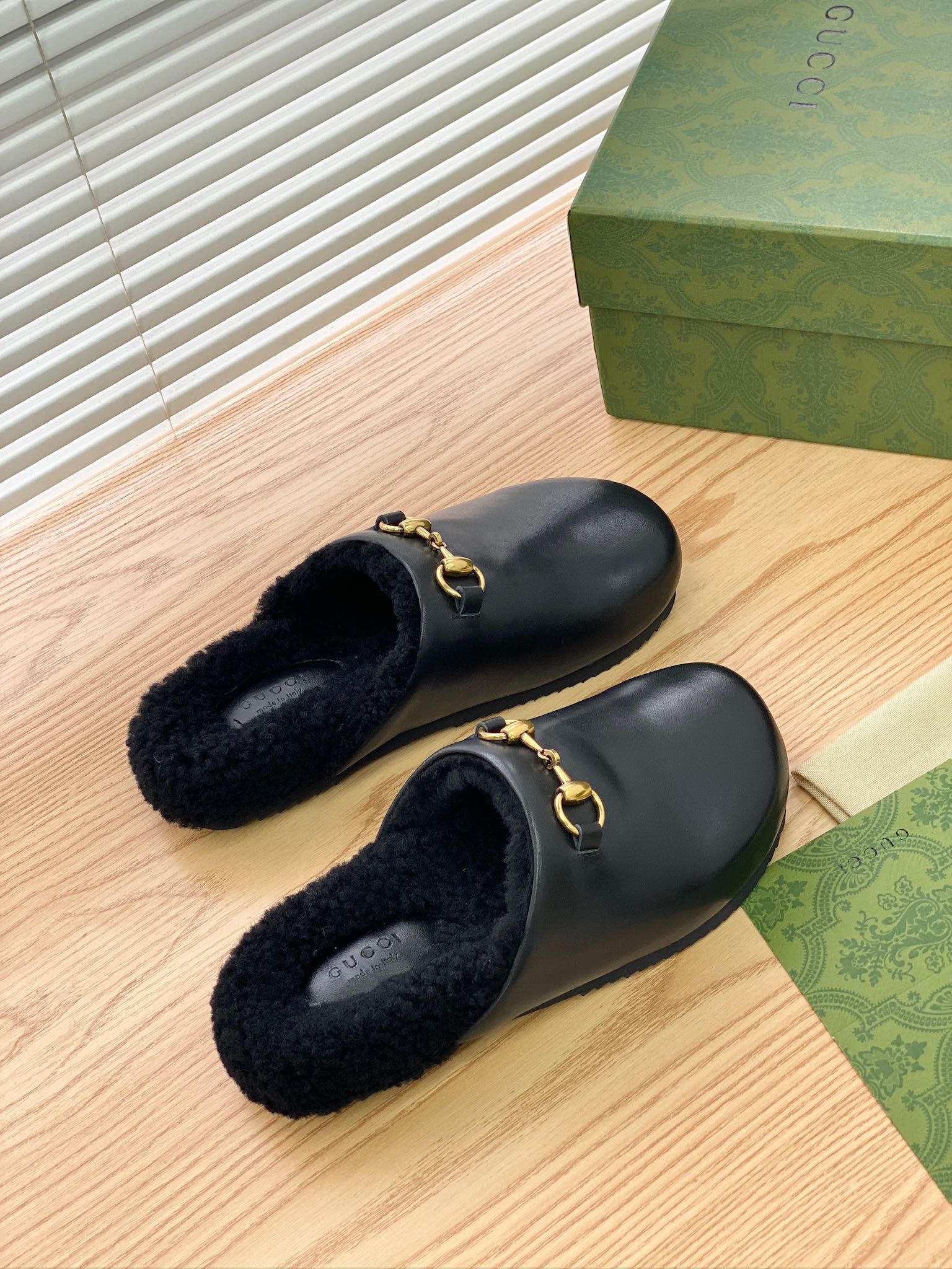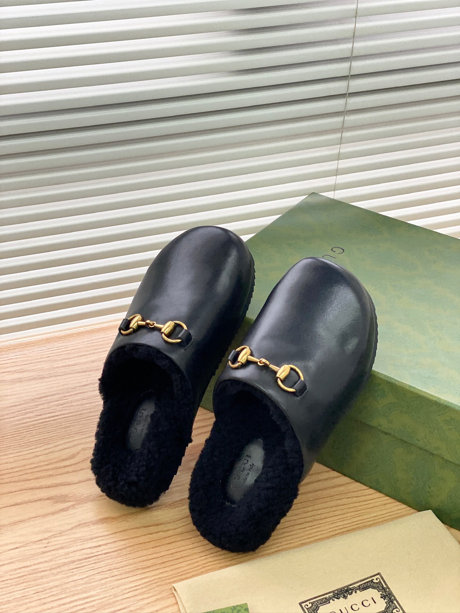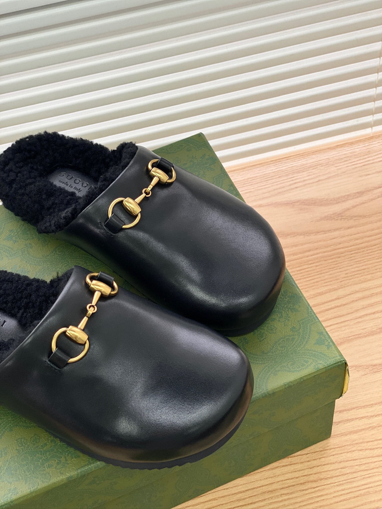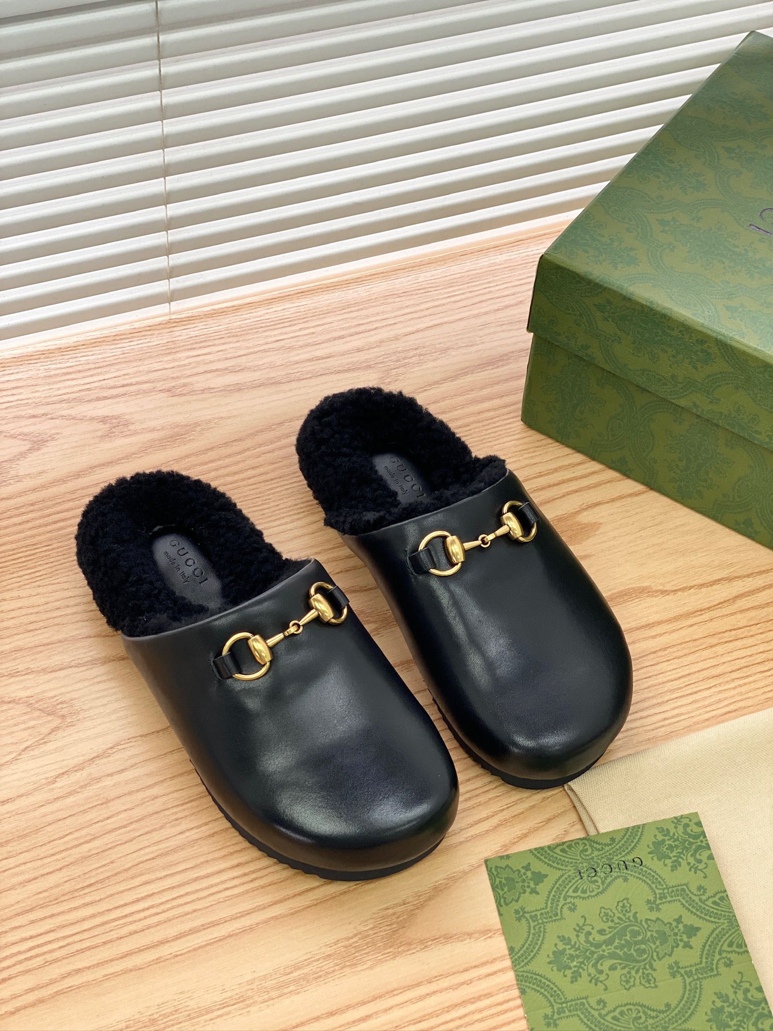 NIGO Gucci Women's Autumn and Winter Suede Alphabet Printed Lamb Suede Slippers Shoes #nigo74337