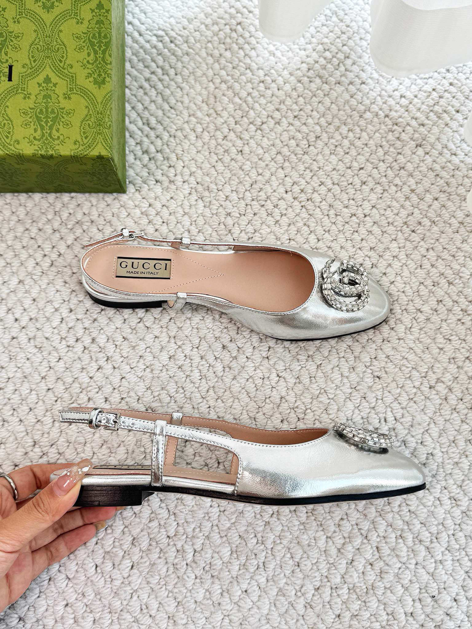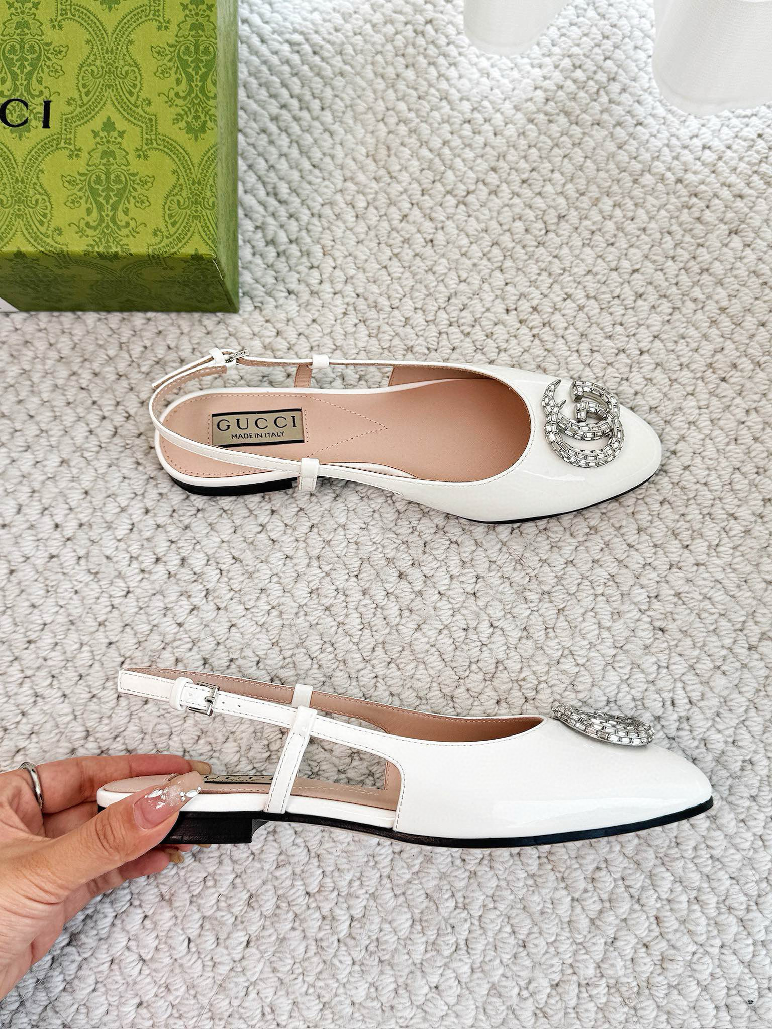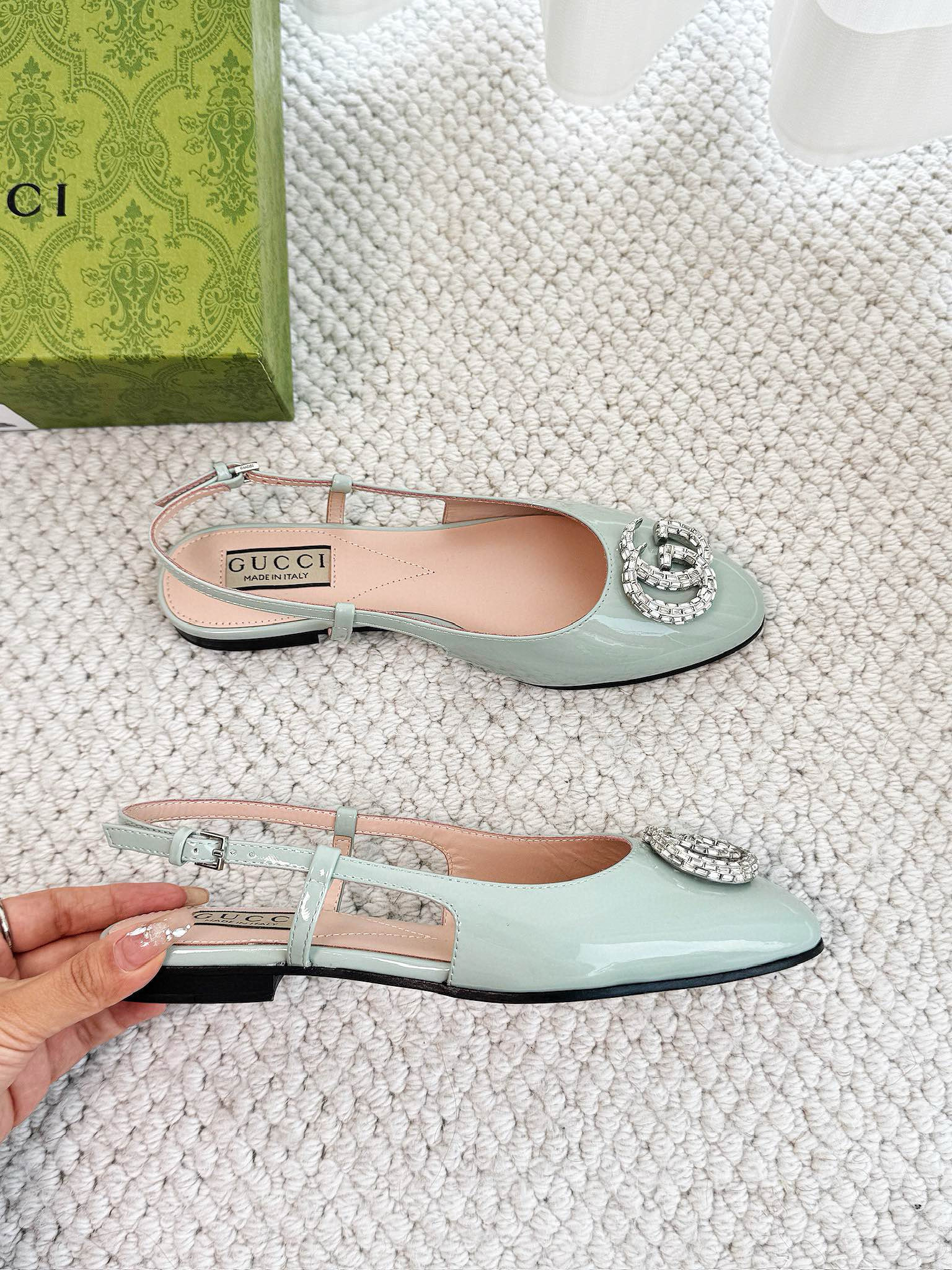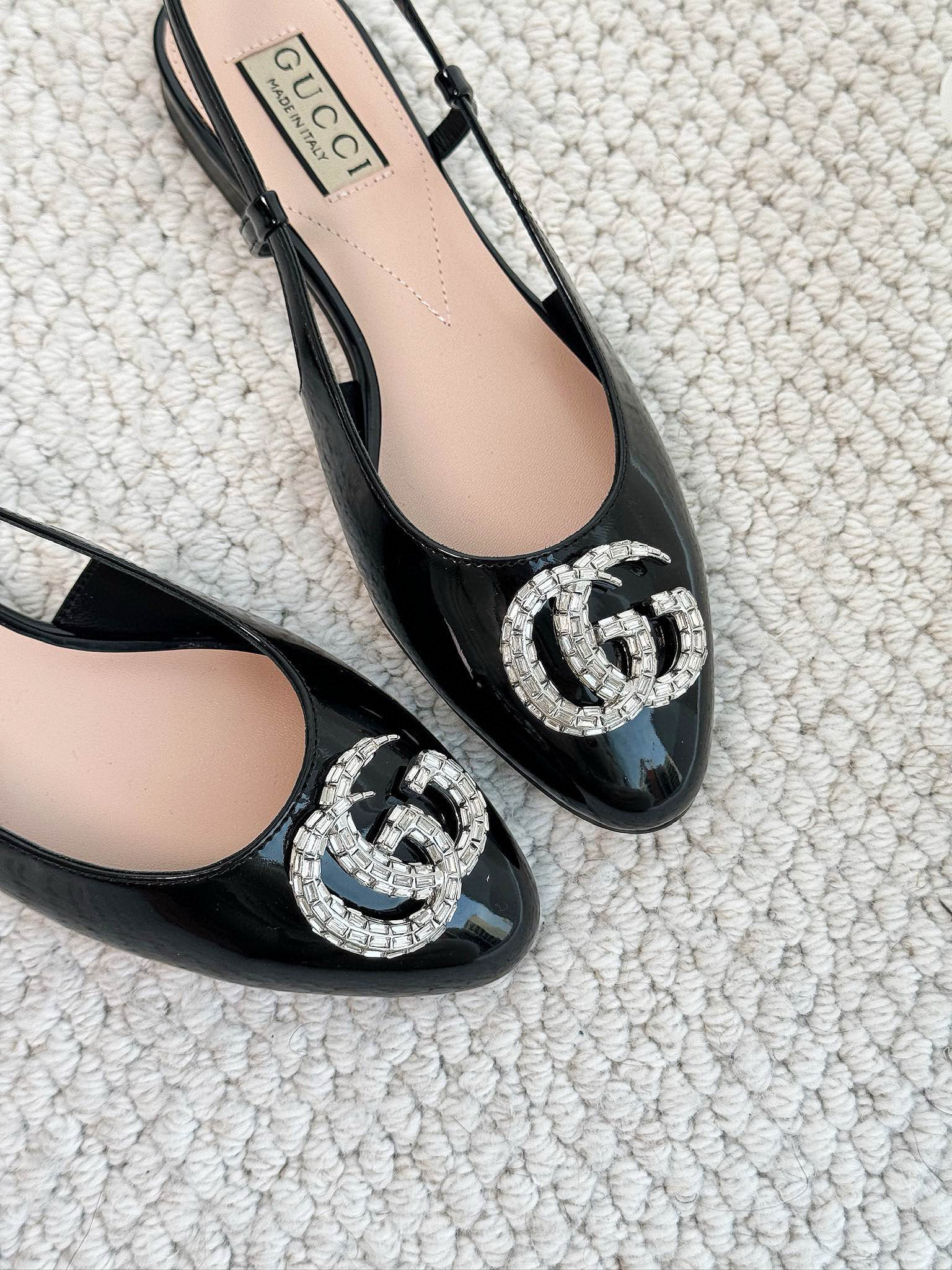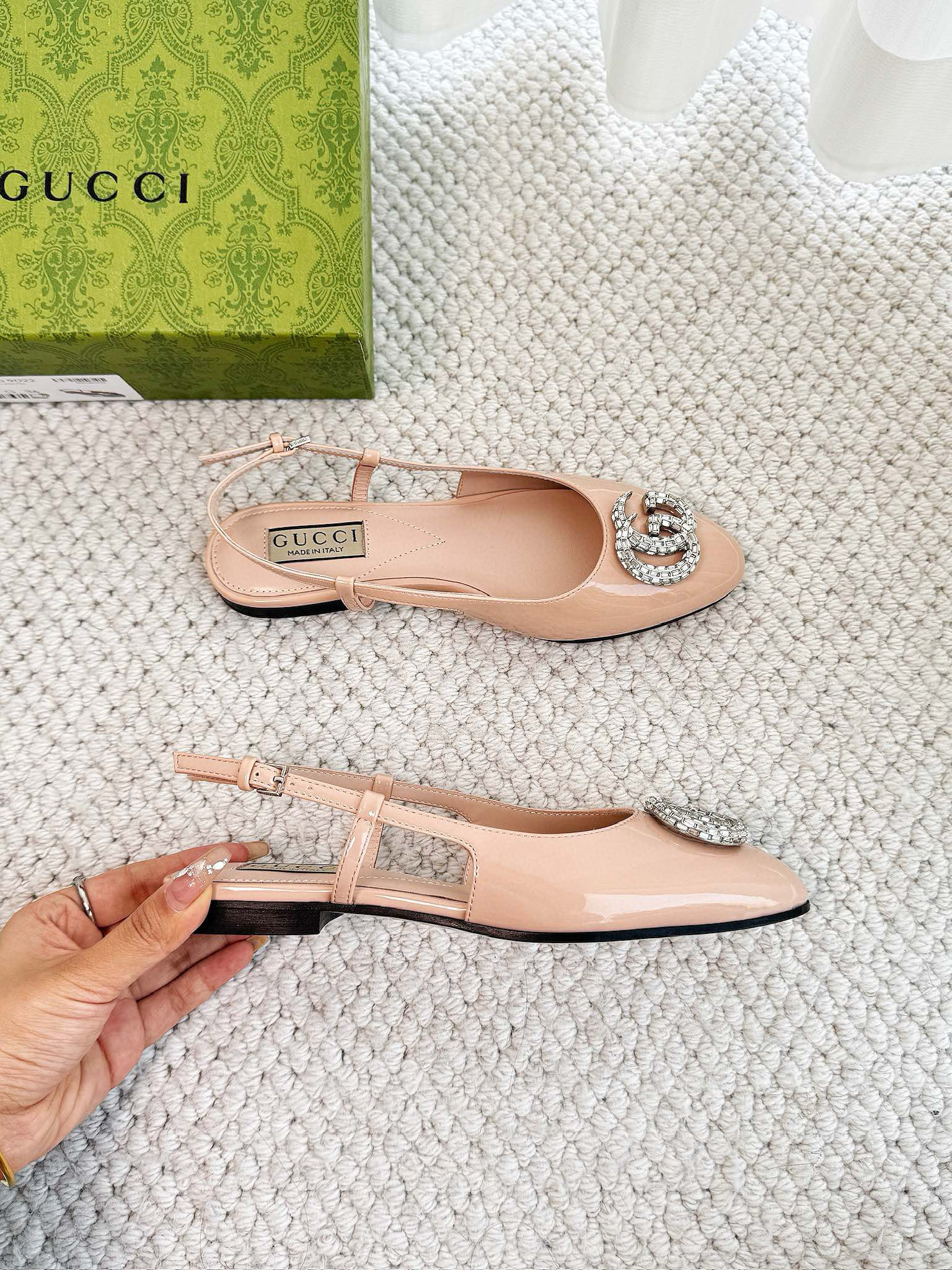 NIGO Gucci Women's Ballerina With Double G Round Toe Rhinestone Leather Sandals Shoes #nigo97468