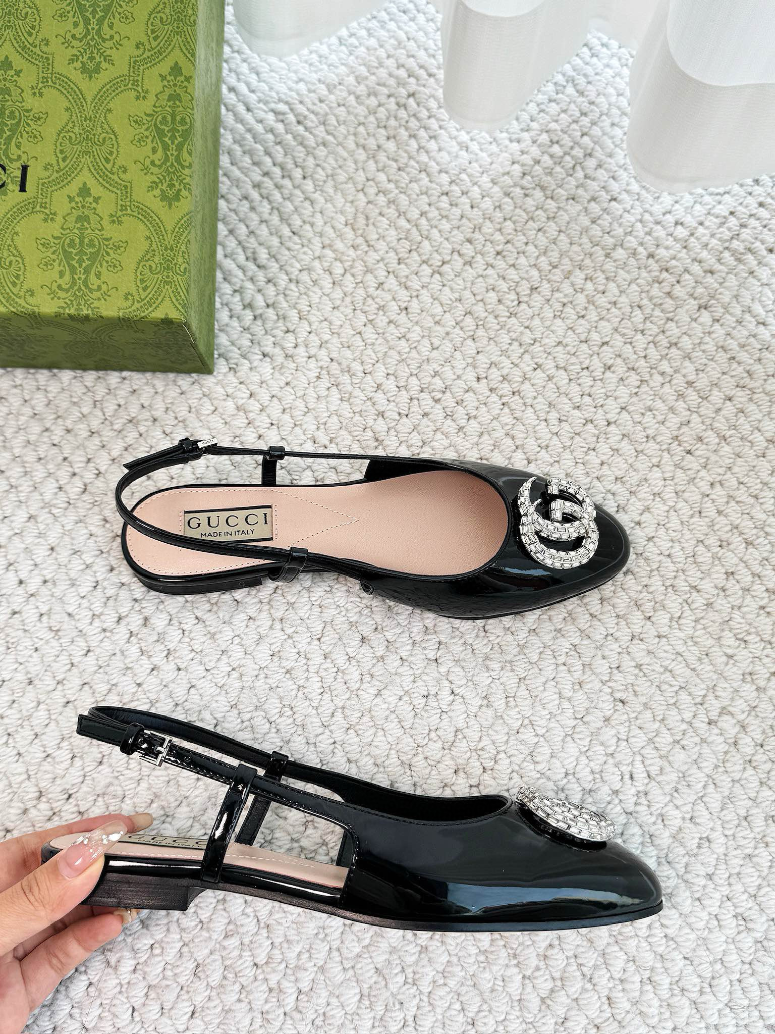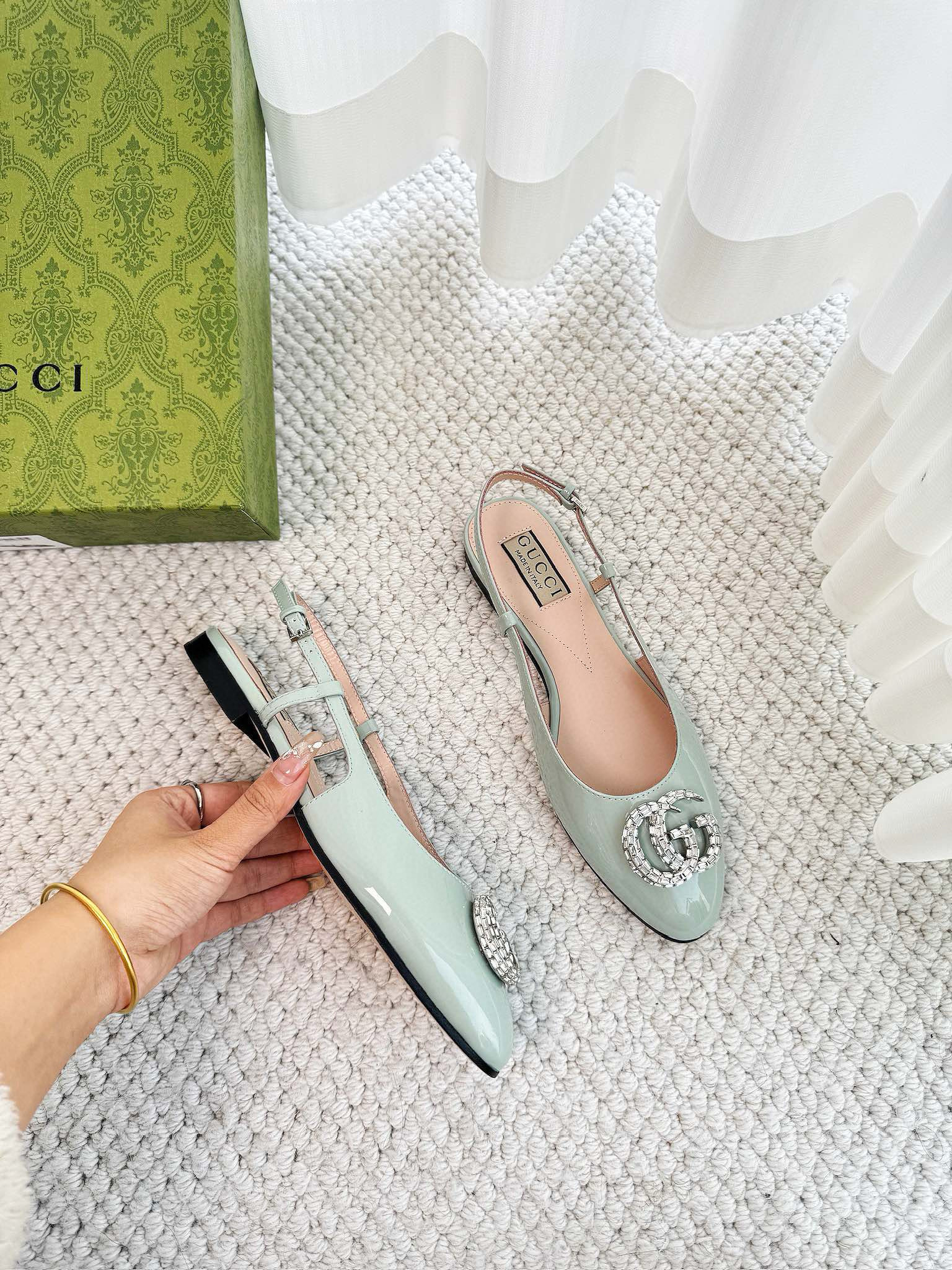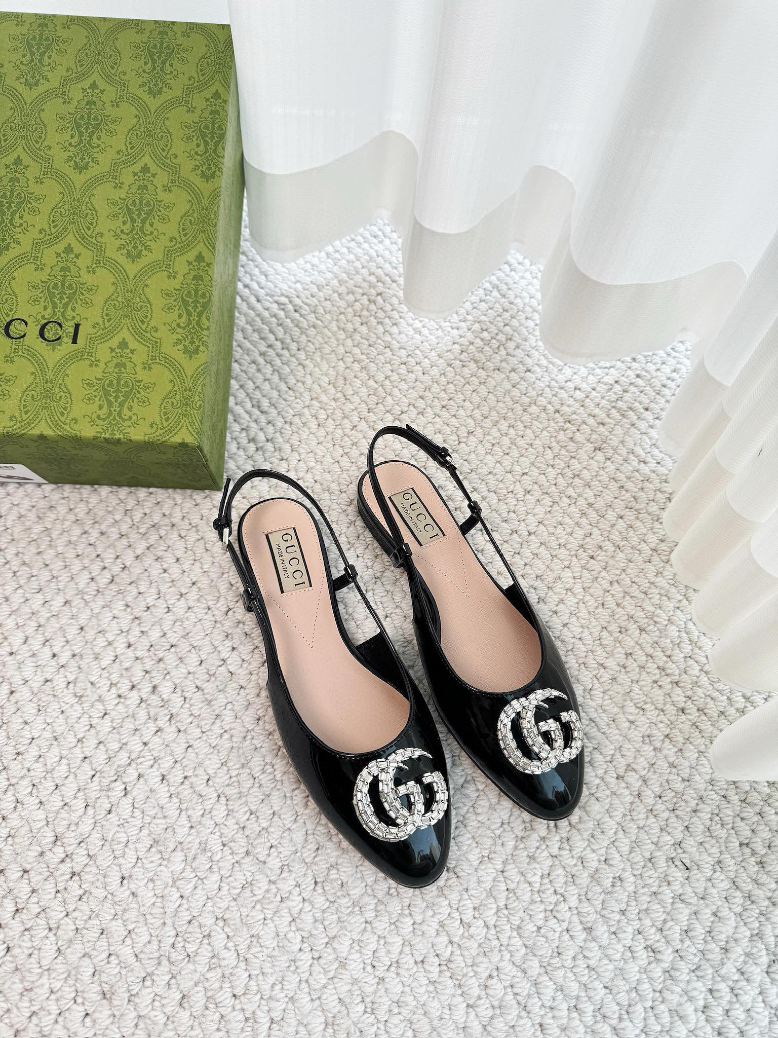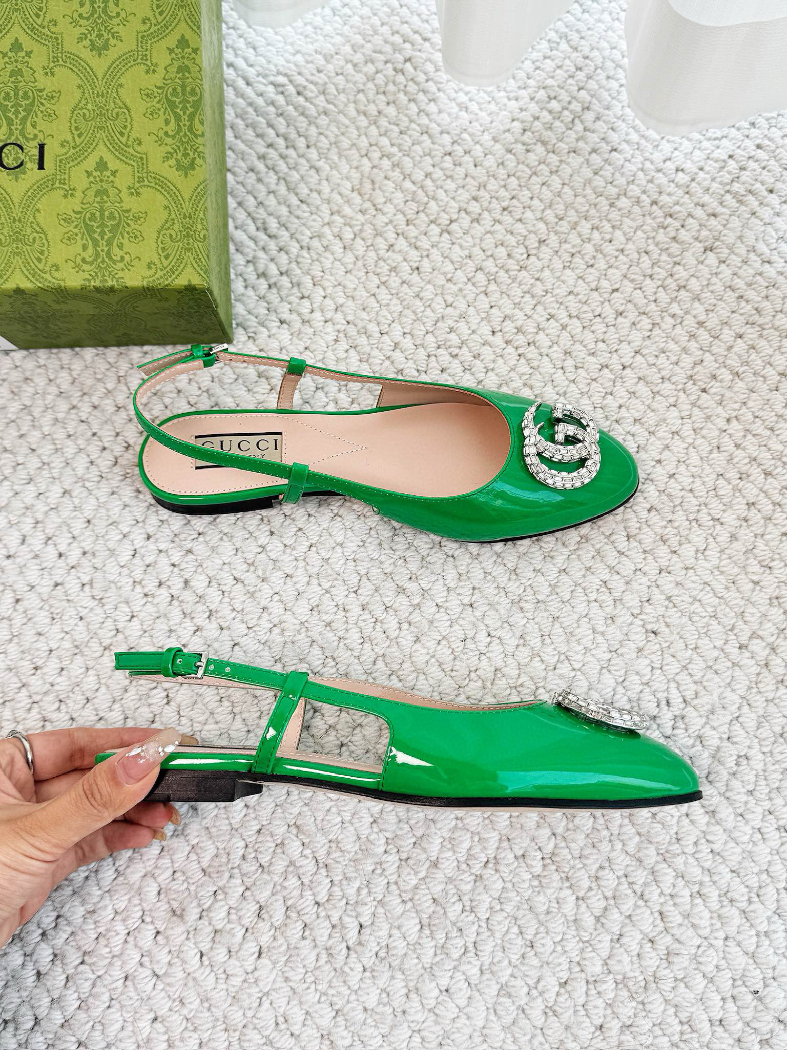 NIGO Gucci Women's Ballerina With Double G Round Toe Rhinestone Leather Sandals Shoes #nigo97468