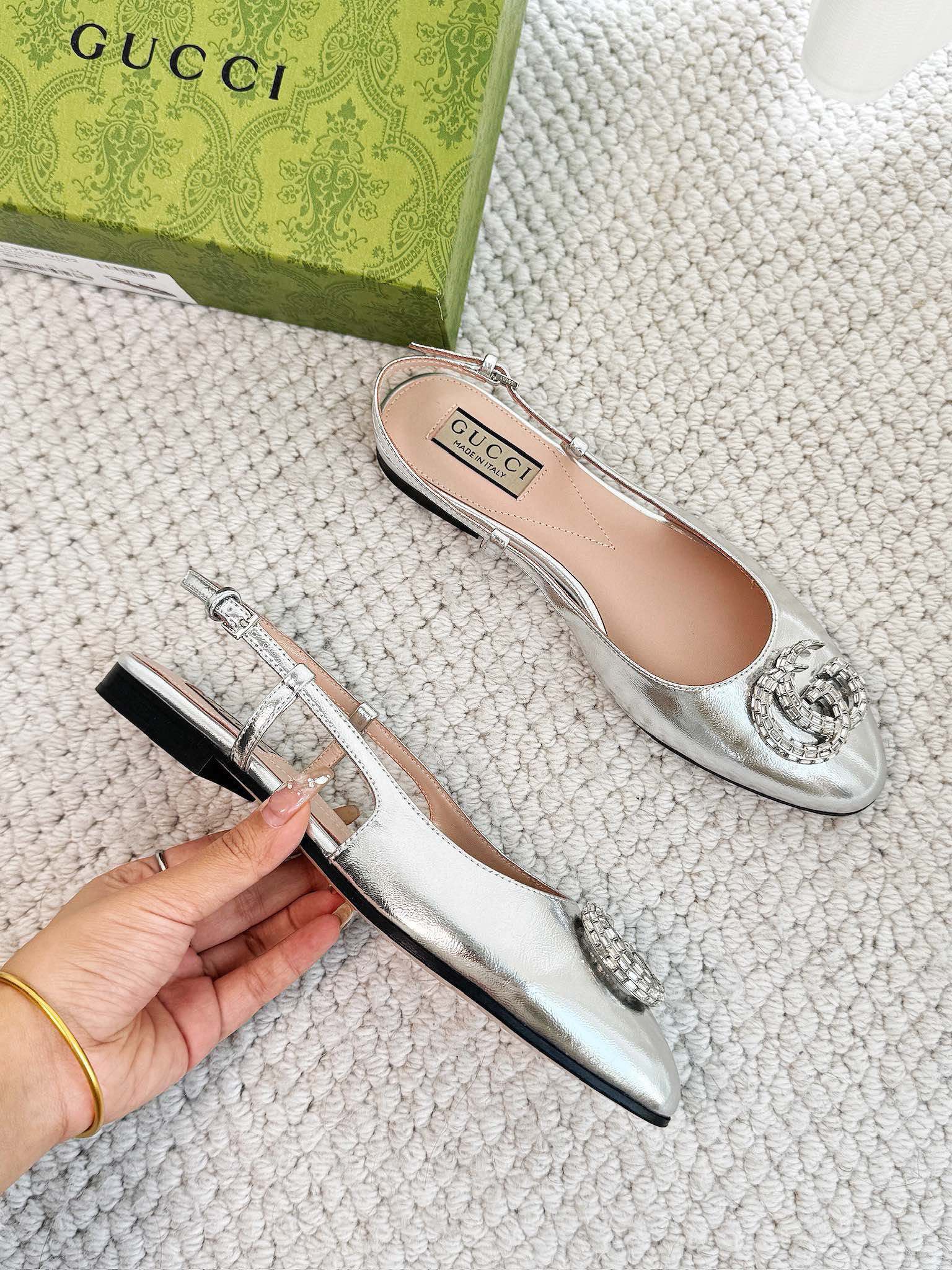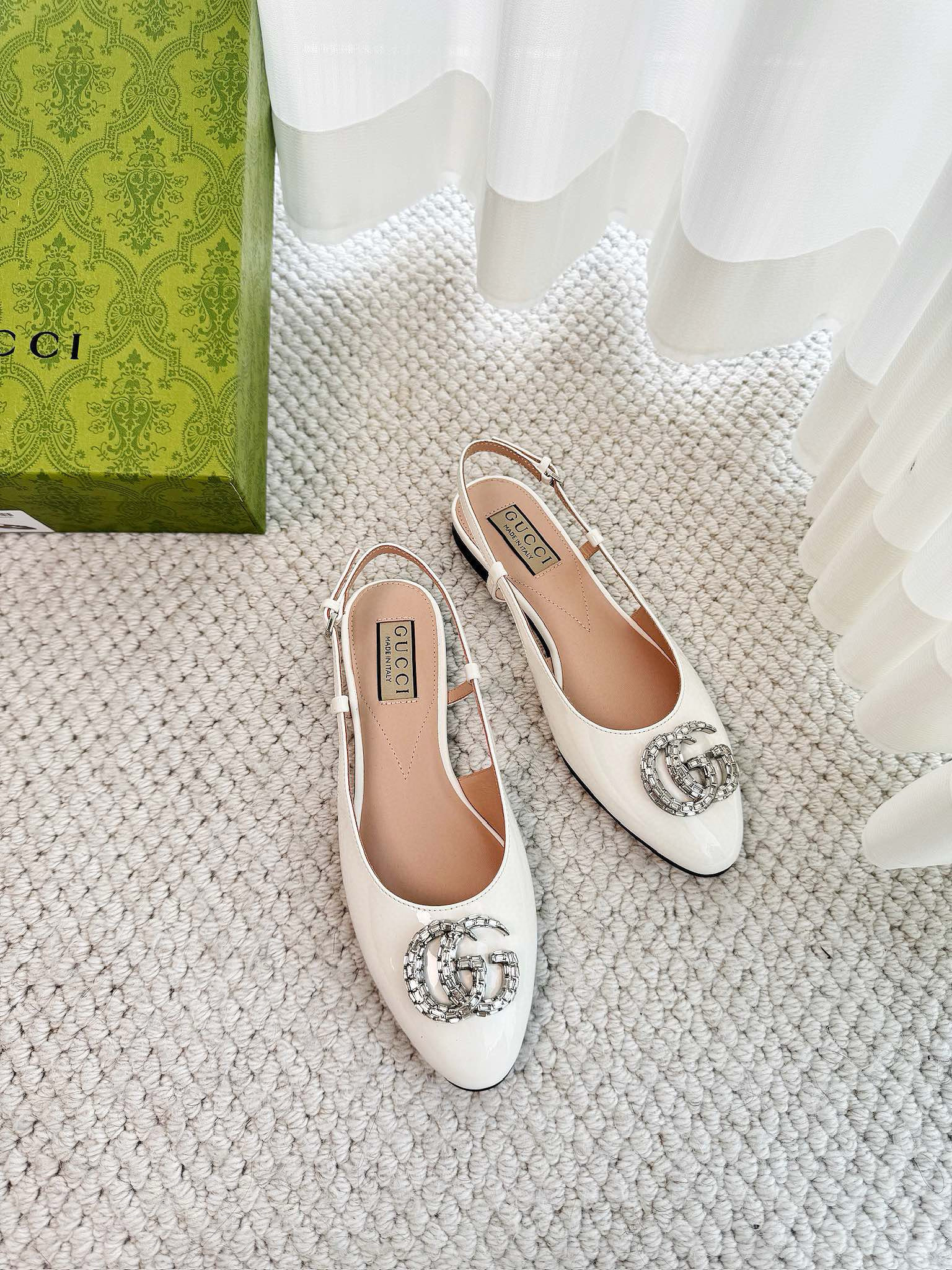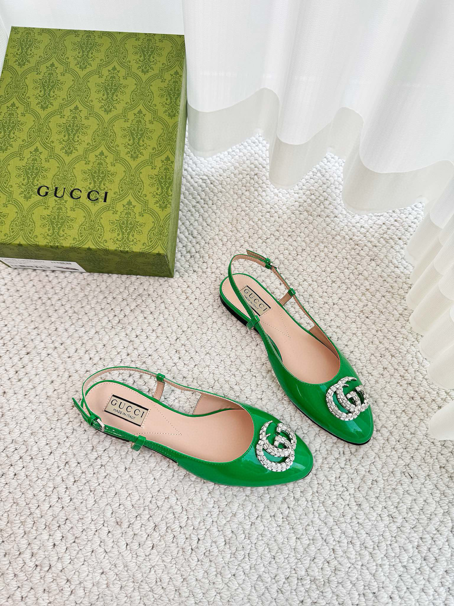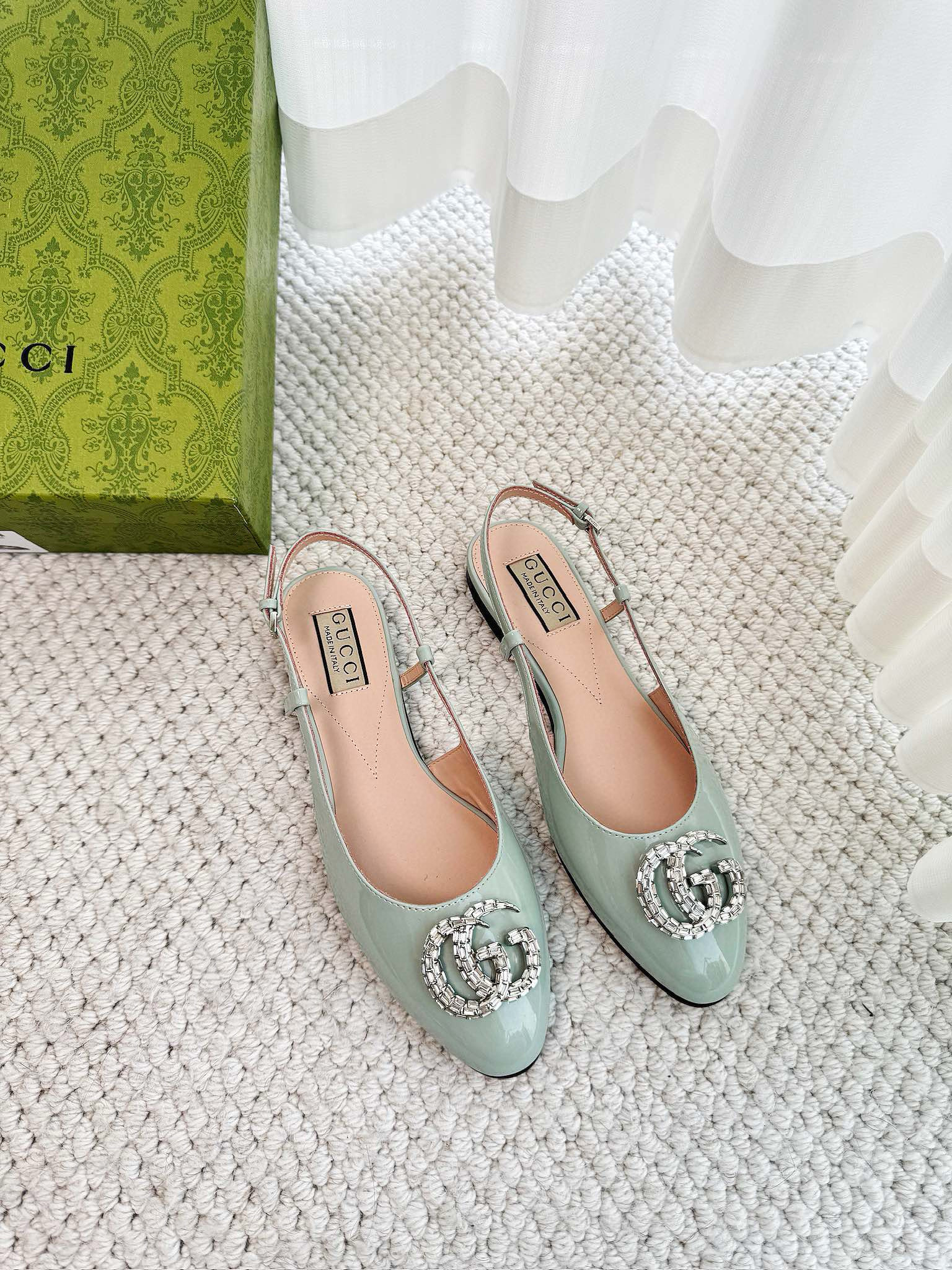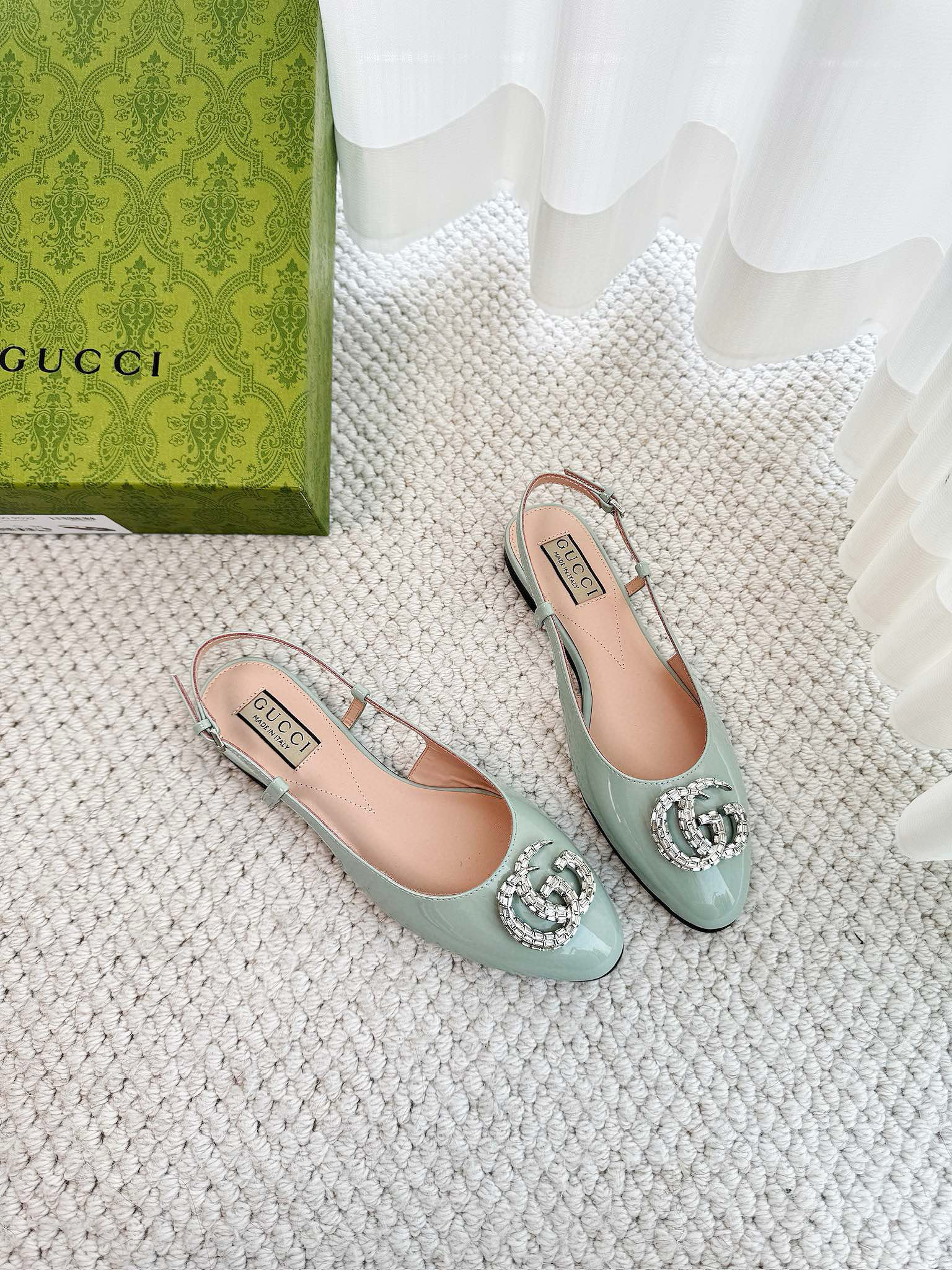NIGO Gucci Women's Ballerina With Double G Round Toe Rhinestone Leather Sandals Shoes #nigo97468