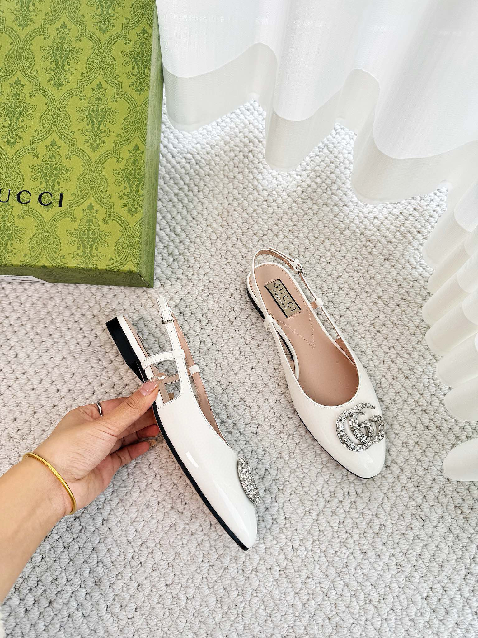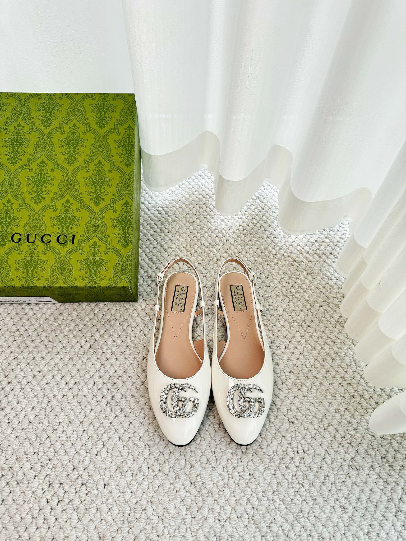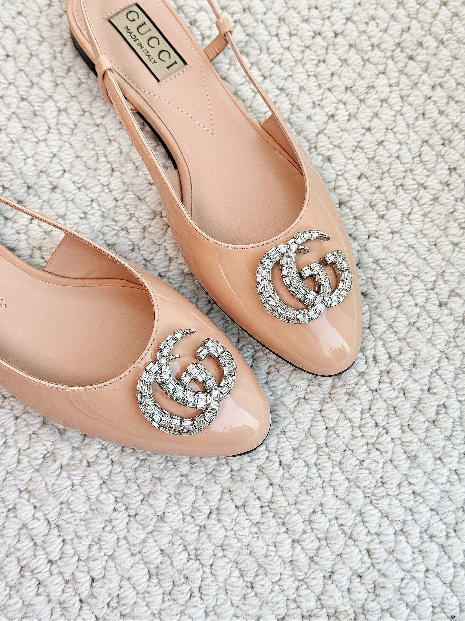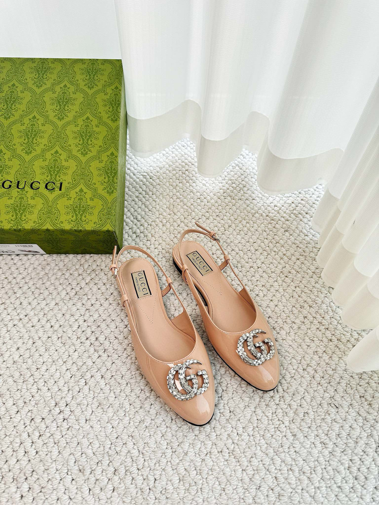 NIGO Gucci Women's Ballerina With Double G Round Toe Rhinestone Leather Sandals Shoes #nigo97468