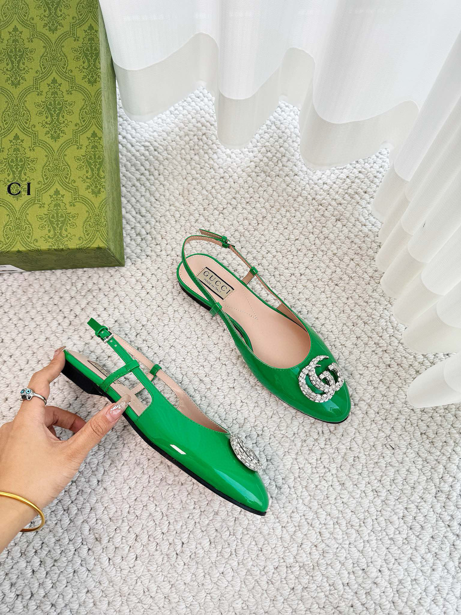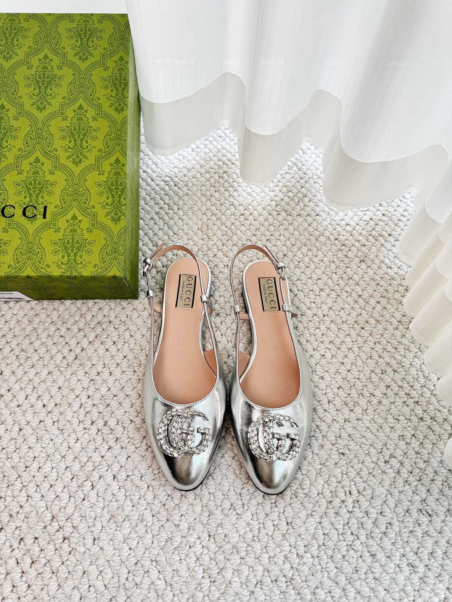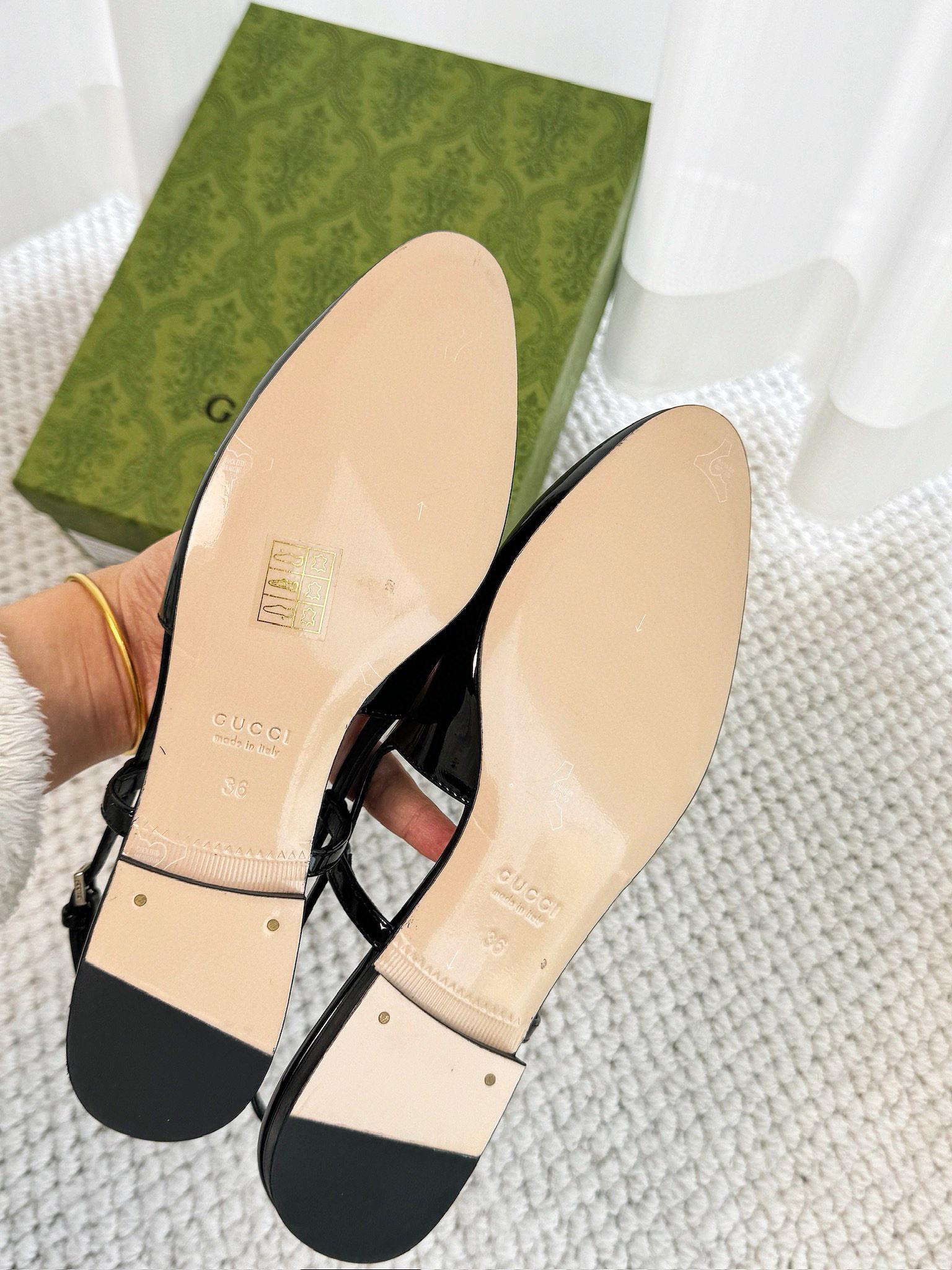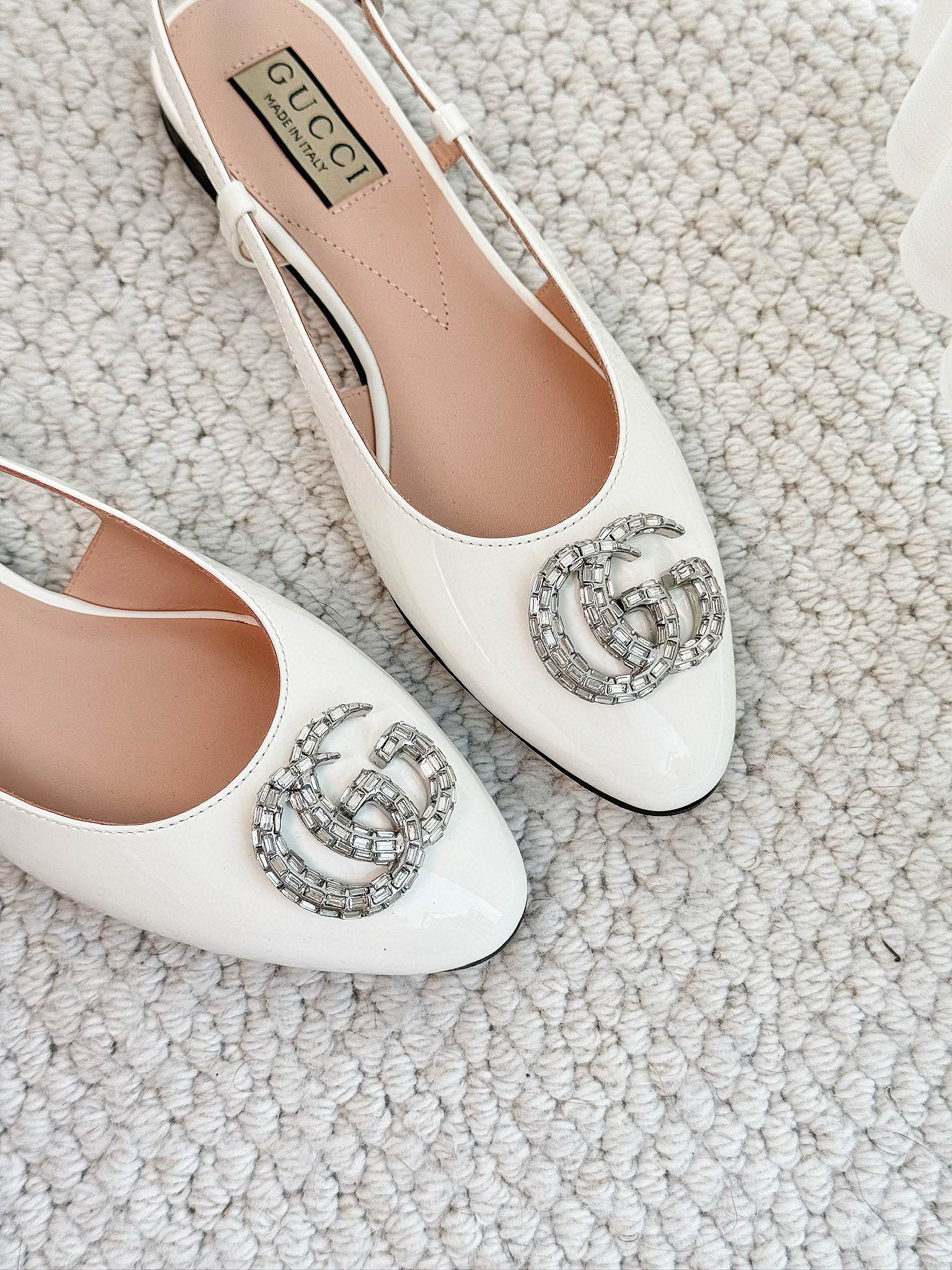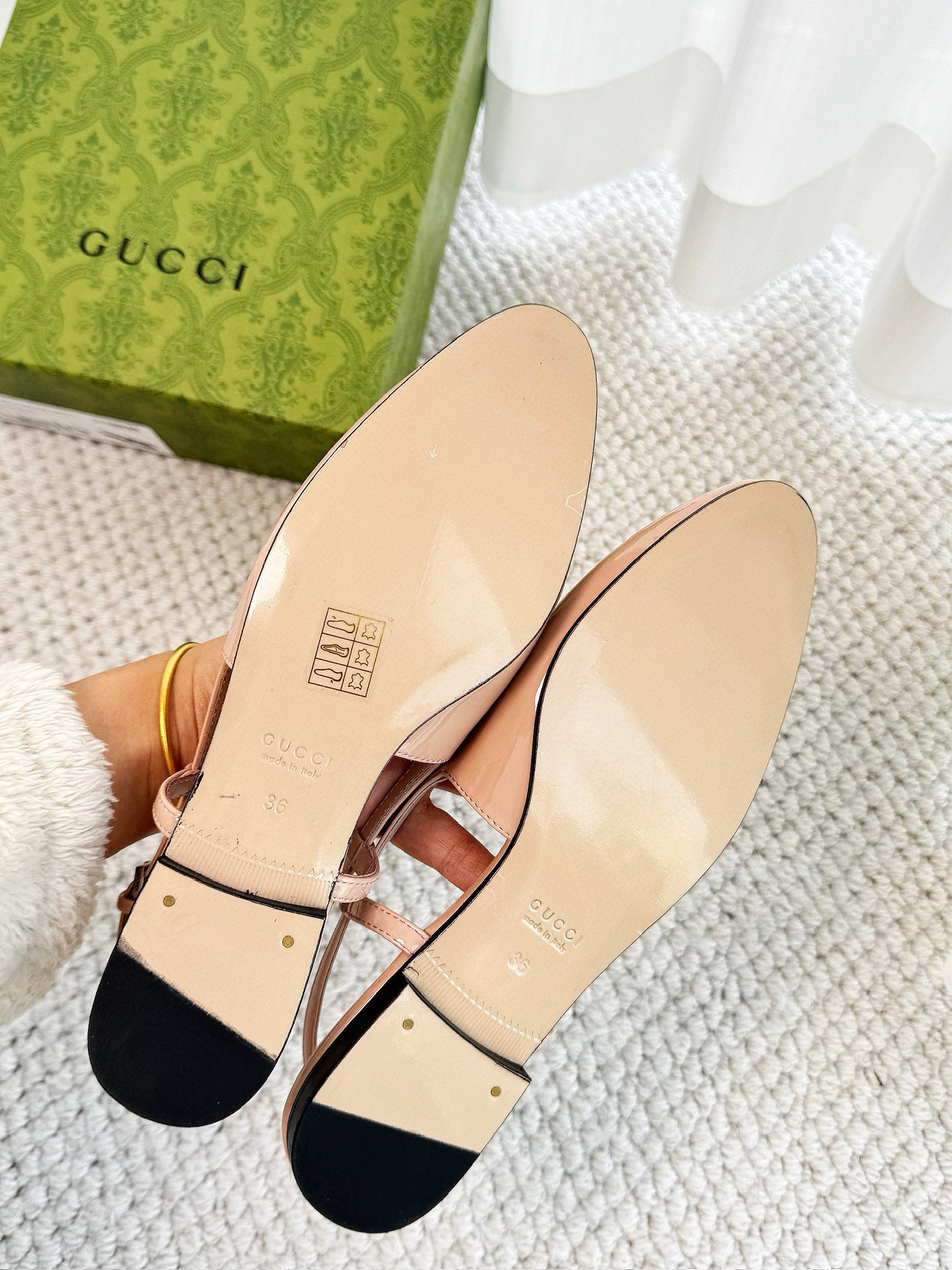 NIGO Gucci Women's Ballerina With Double G Round Toe Rhinestone Leather Sandals Shoes #nigo97468