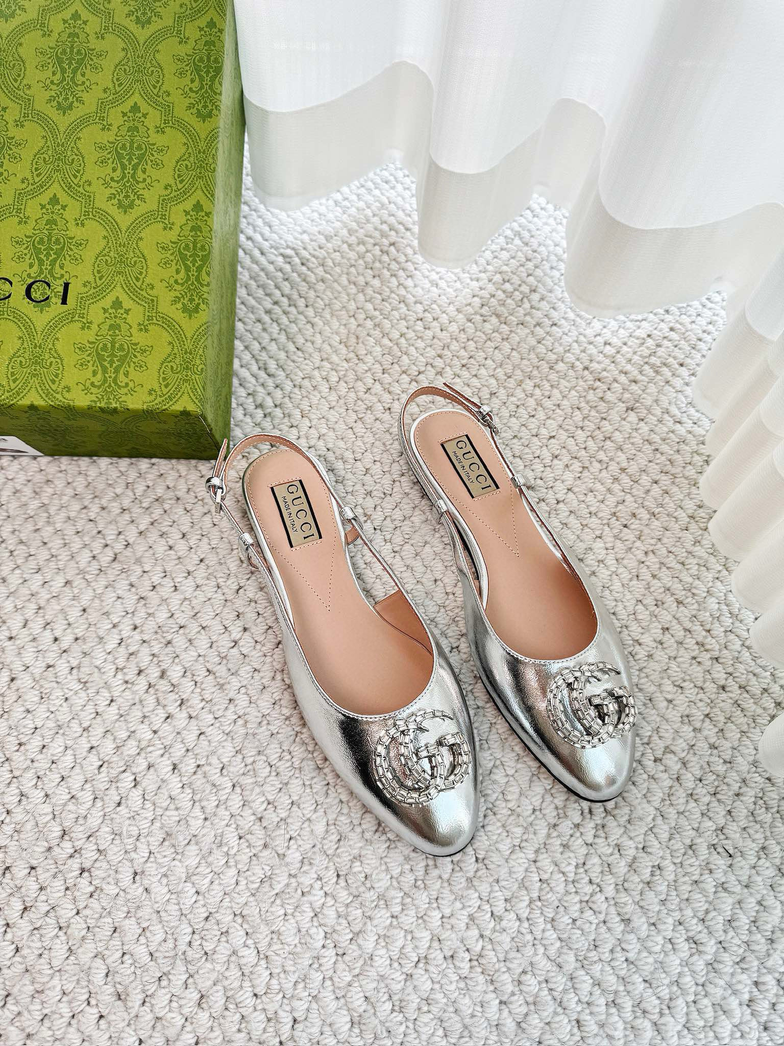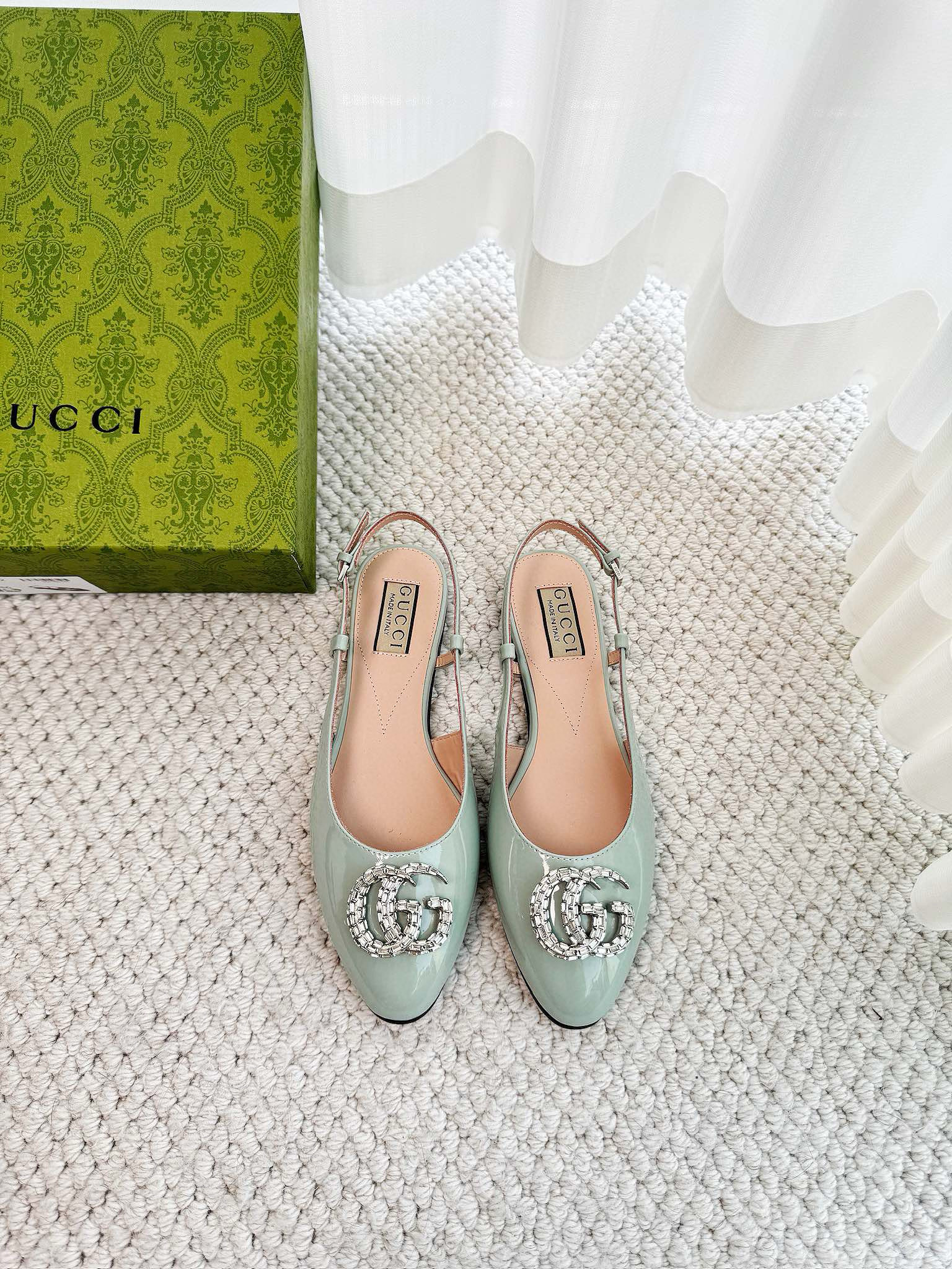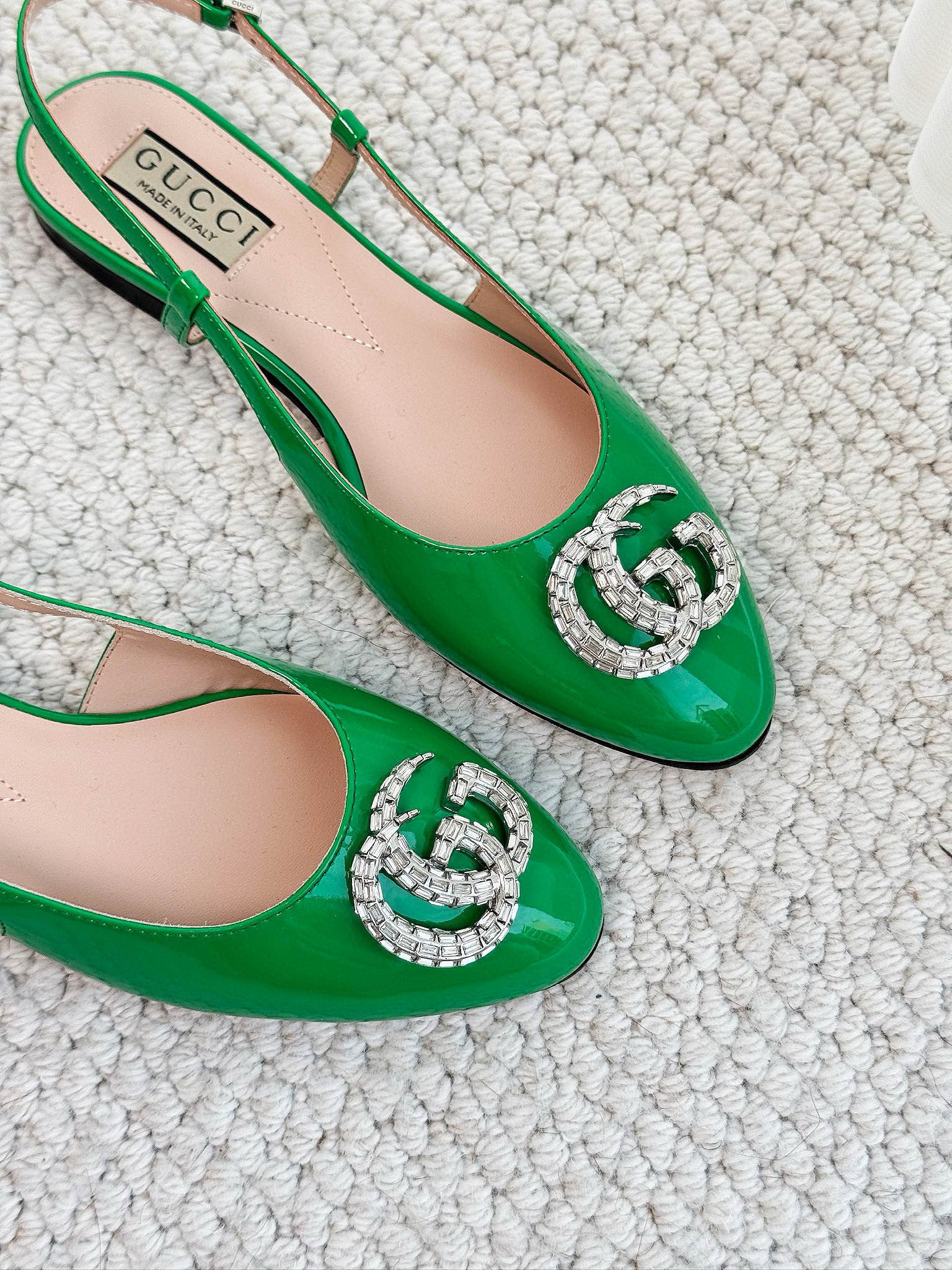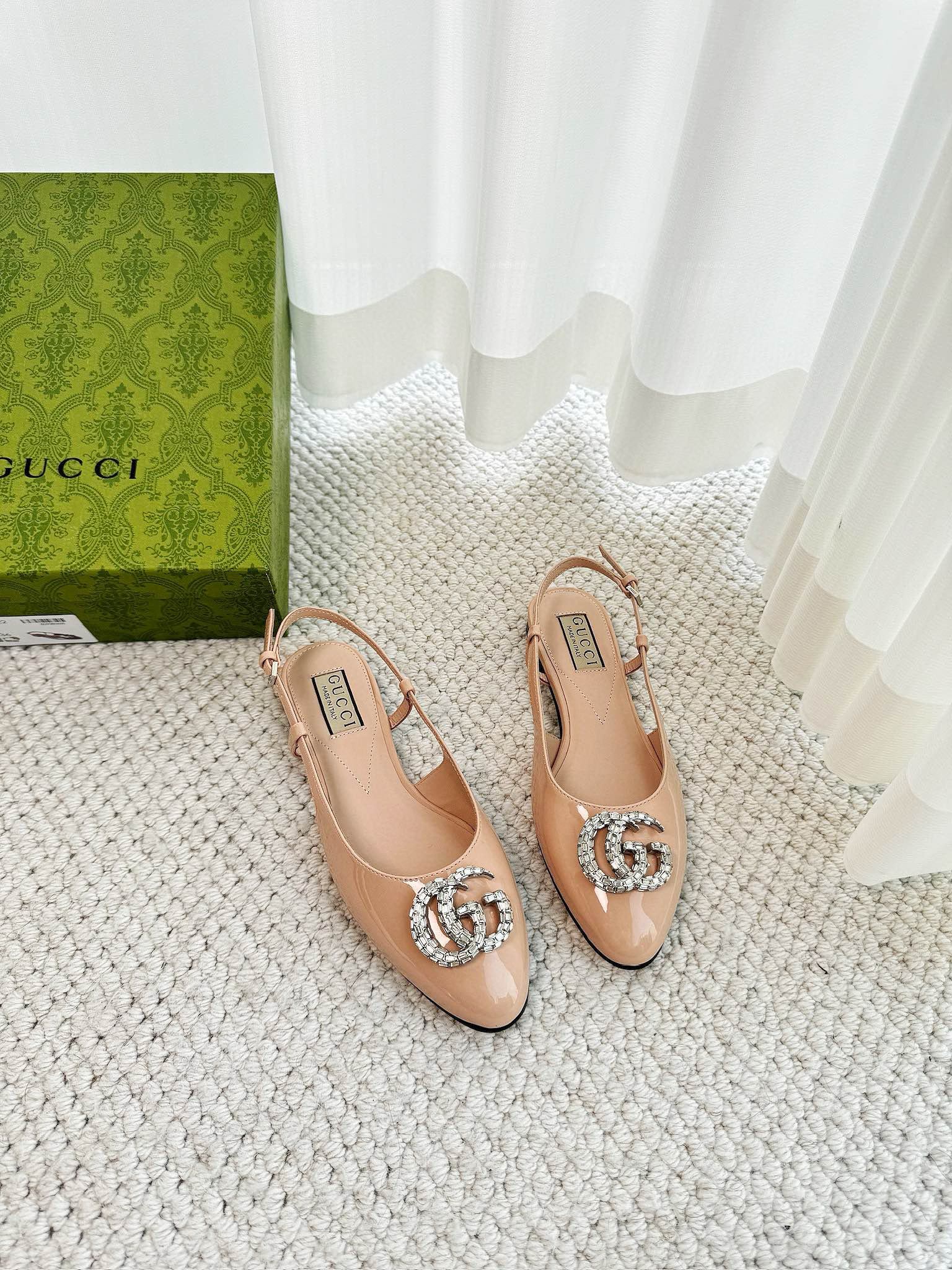 NIGO Gucci Women's Ballerina With Double G Round Toe Rhinestone Leather Sandals Shoes #nigo97468