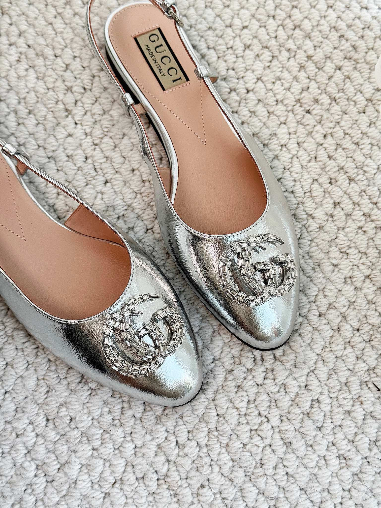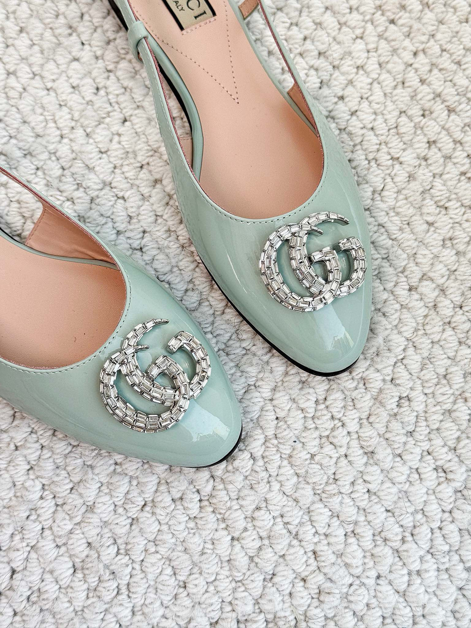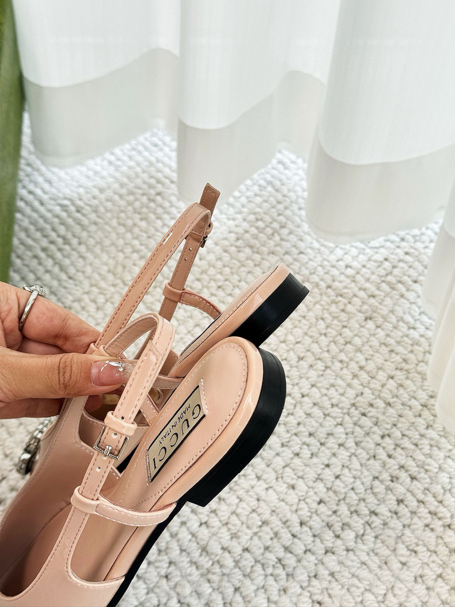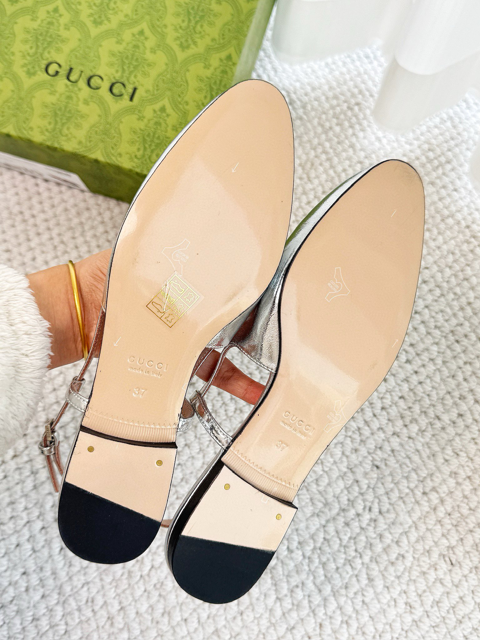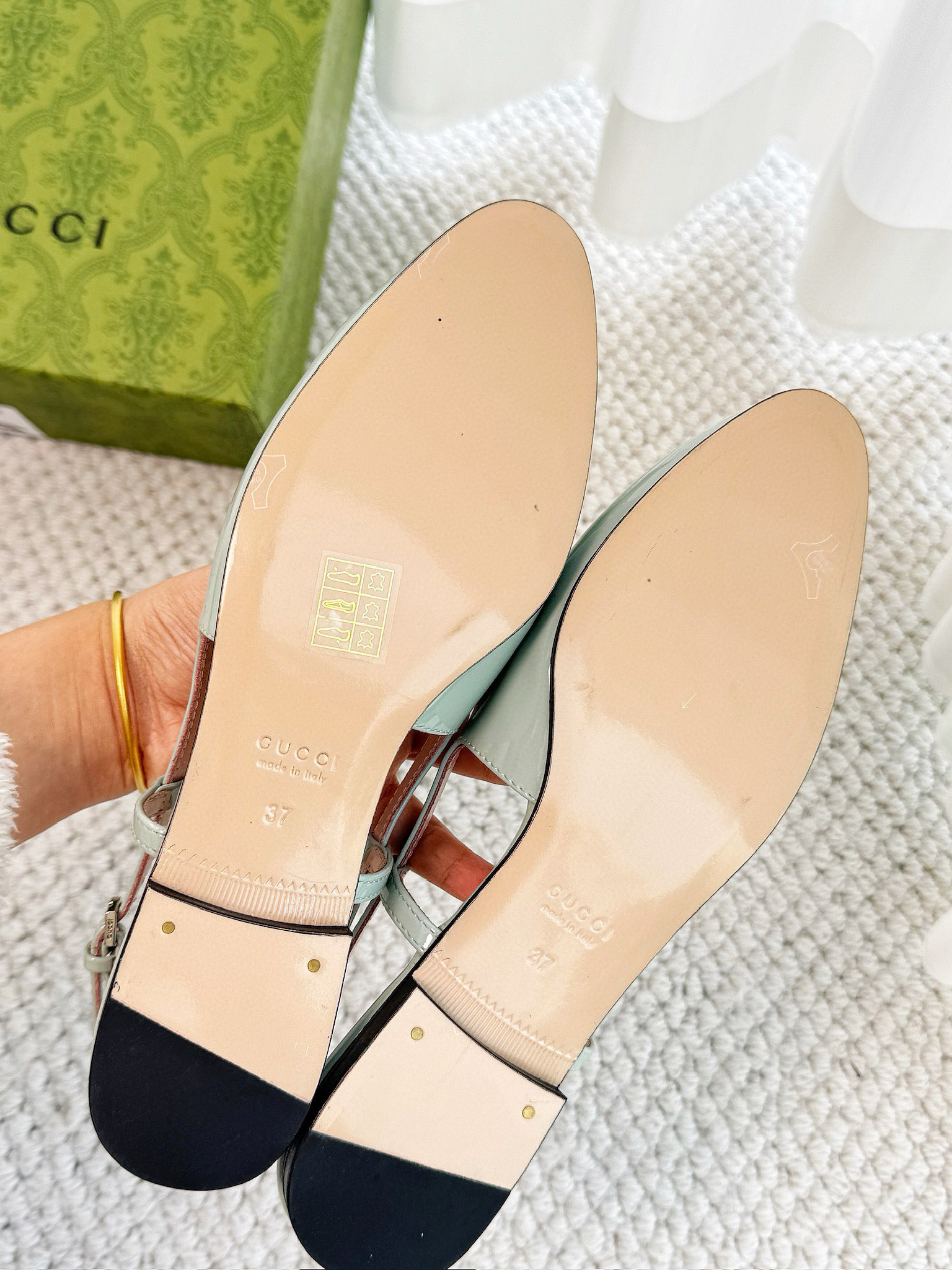 NIGO Gucci Women's Ballerina With Double G Round Toe Rhinestone Leather Sandals Shoes #nigo97468