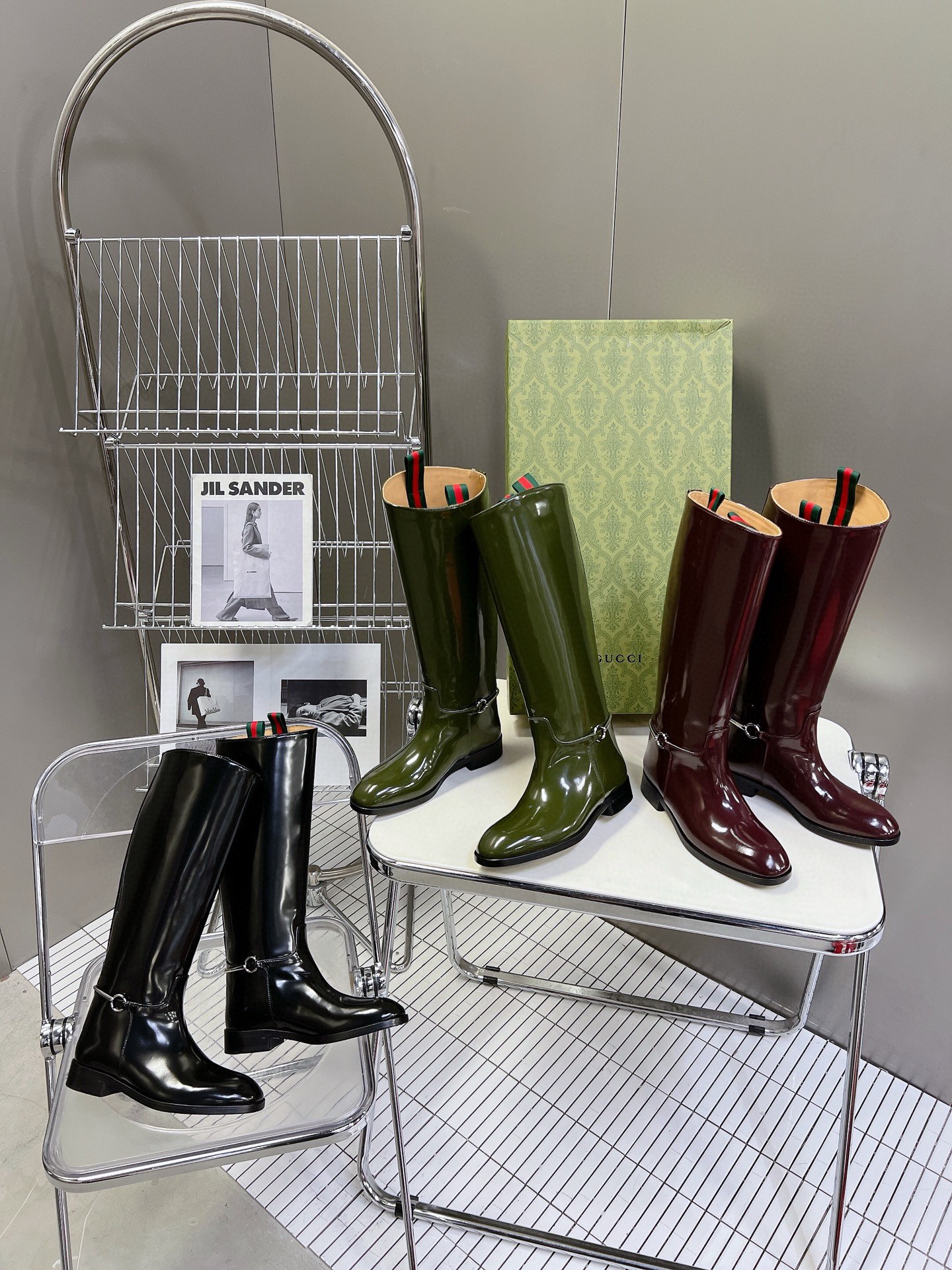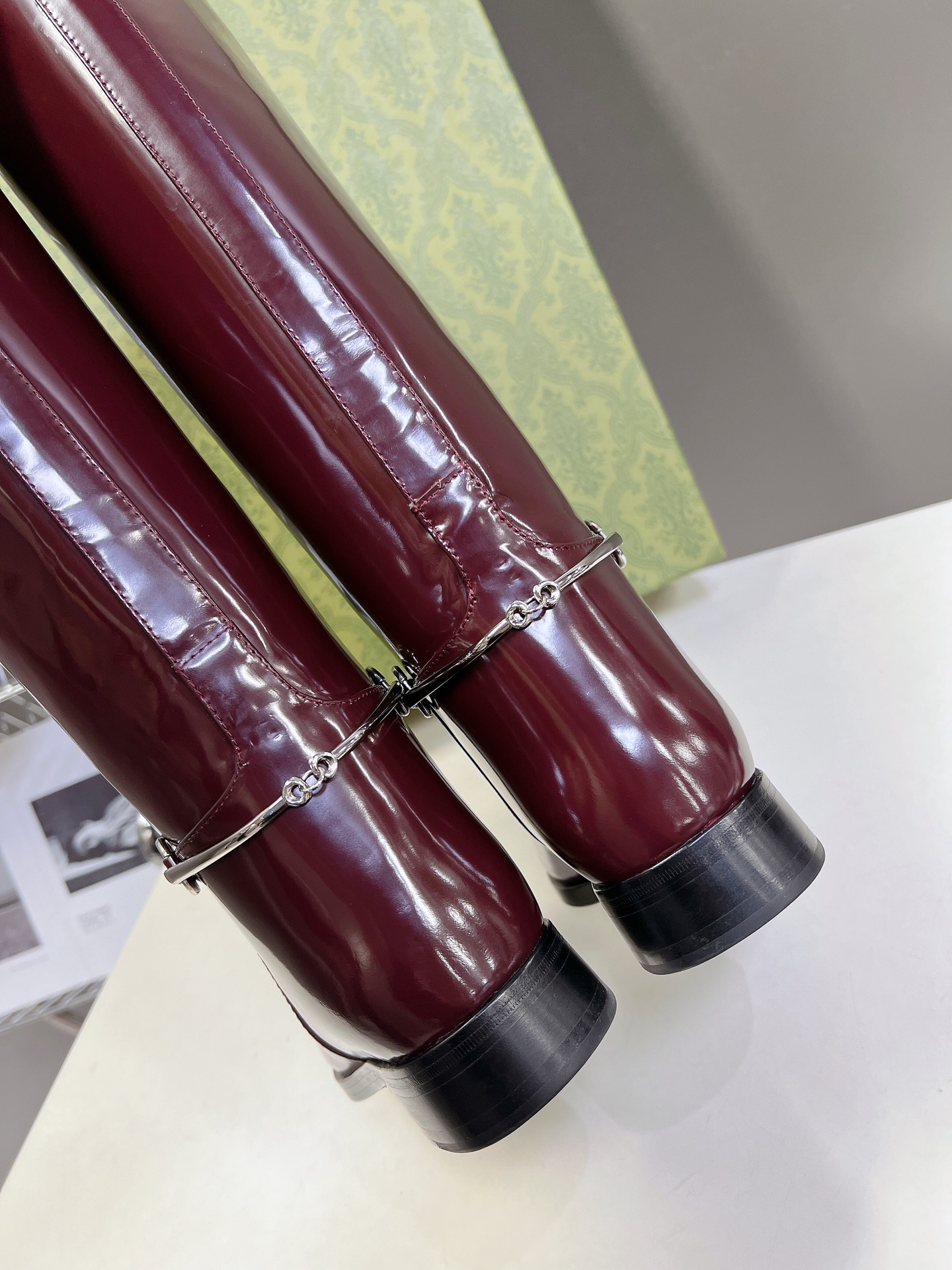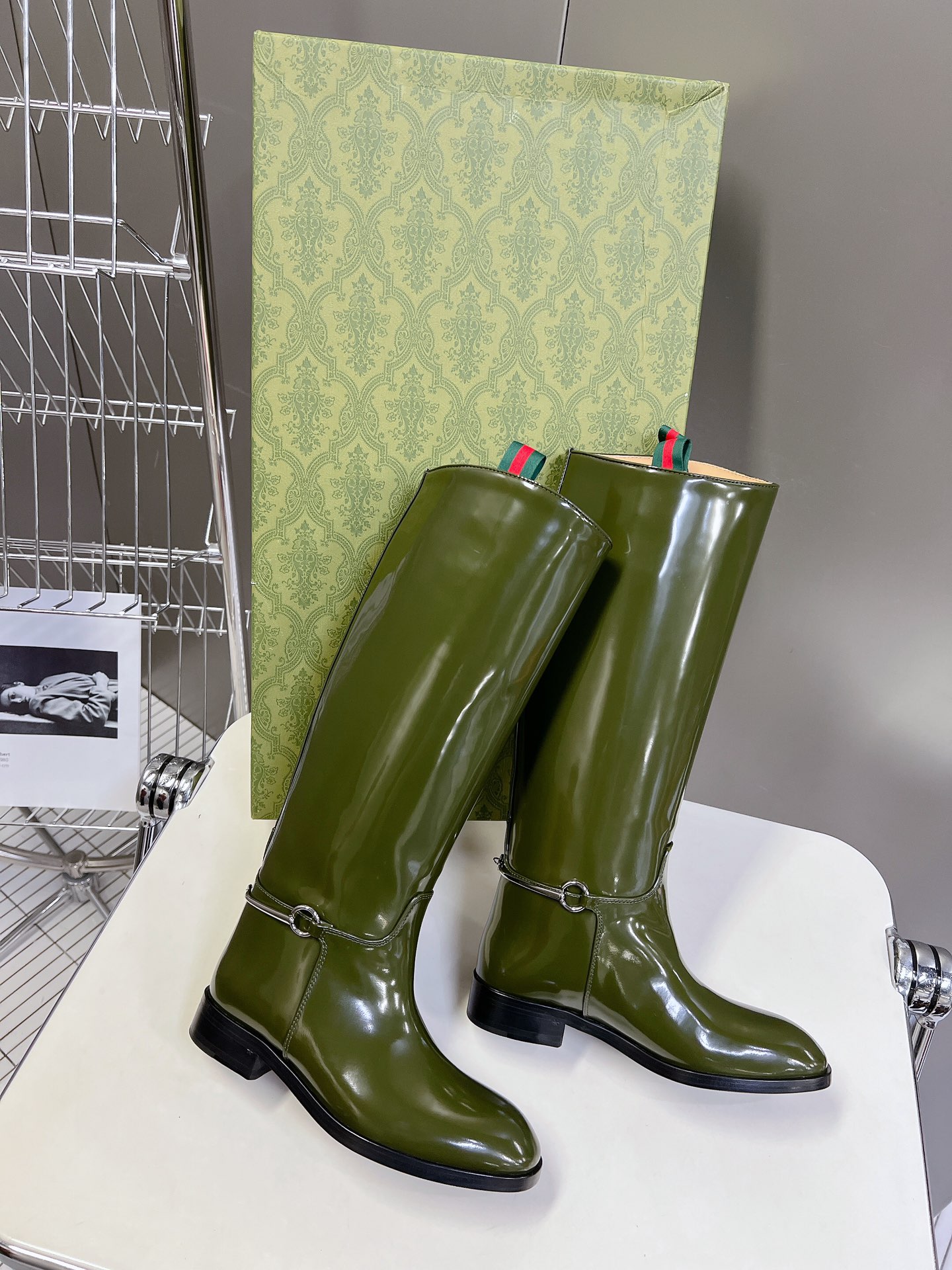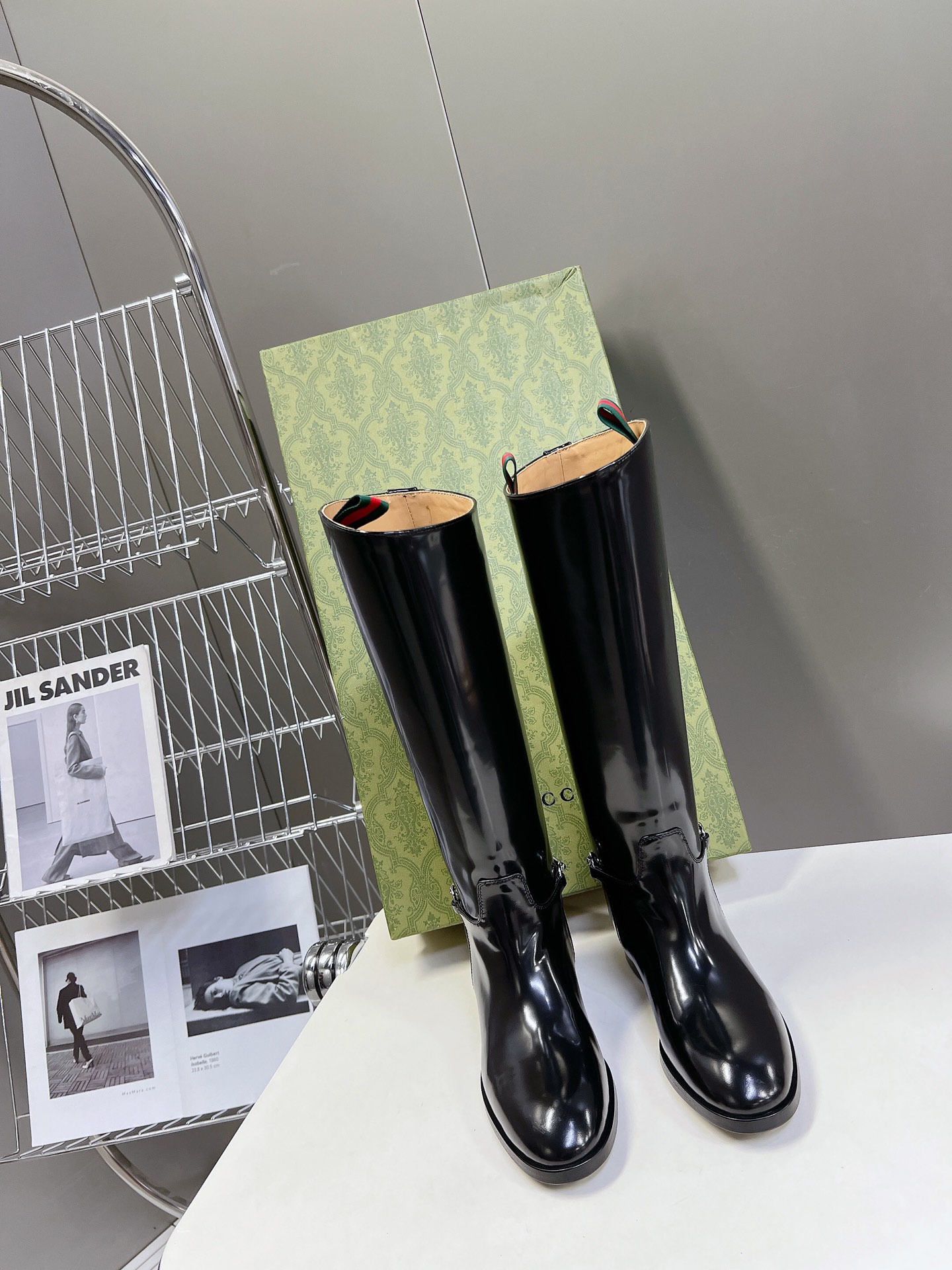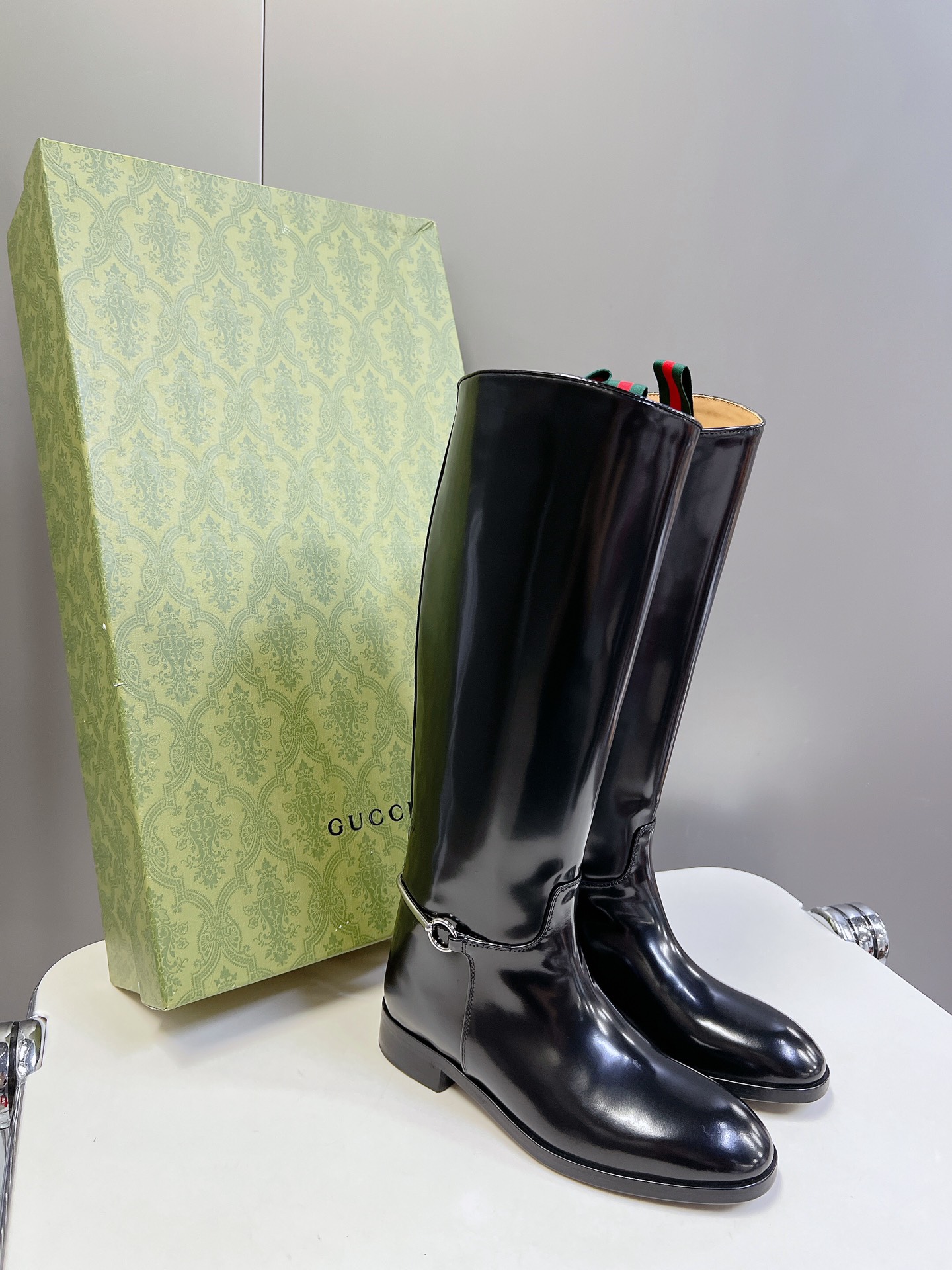 NIGO Gucci Women's Fashion Cowhide Equestrian Boots Autumn Winter Chic Temperament Trend Cool Knight Boots Heel Height 2.5cm #nigo71781