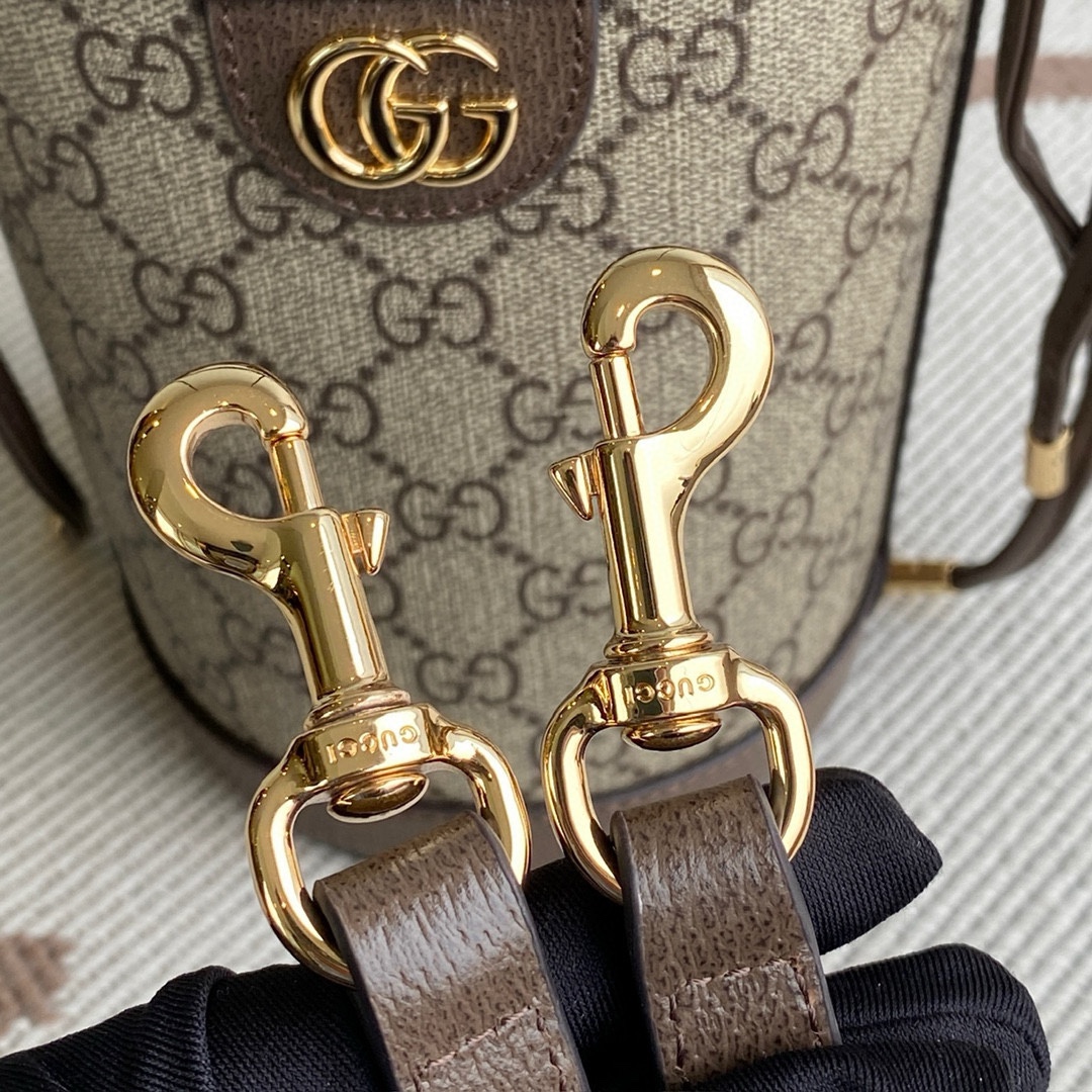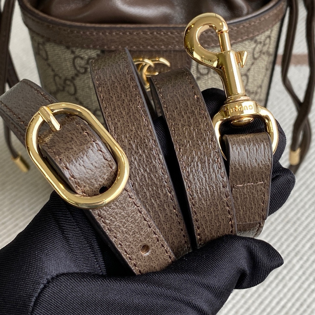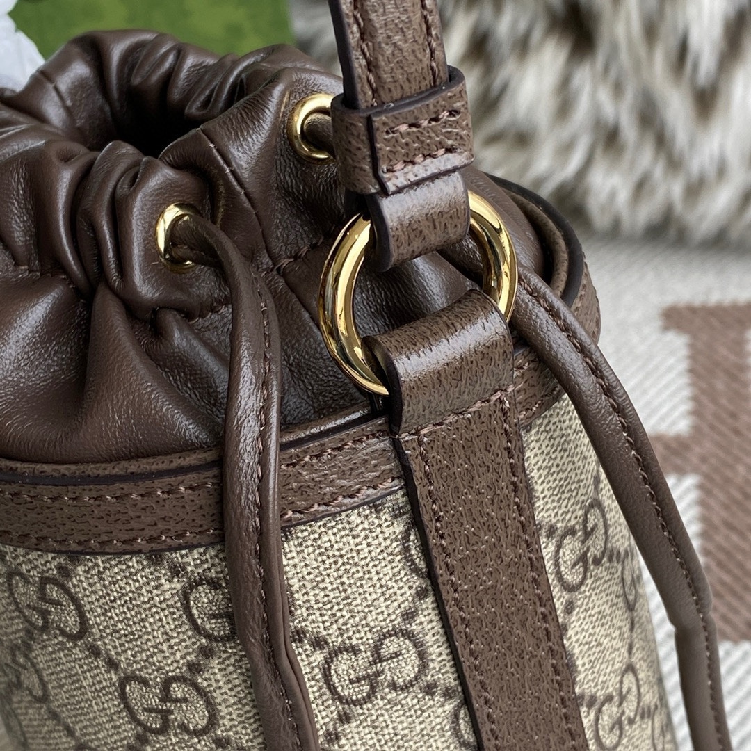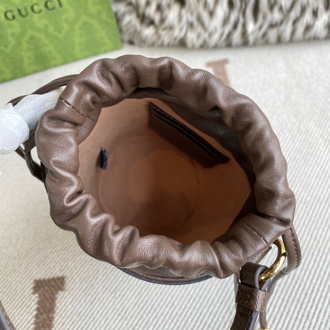 NIGO Gucci Women‘s Ophidia Brown Adjustable Shoulder Strap Drawstring Closure Canvas Spell Leather Bucket Bag Single Shoulder Crossbody Handbag Bags #nigo75549