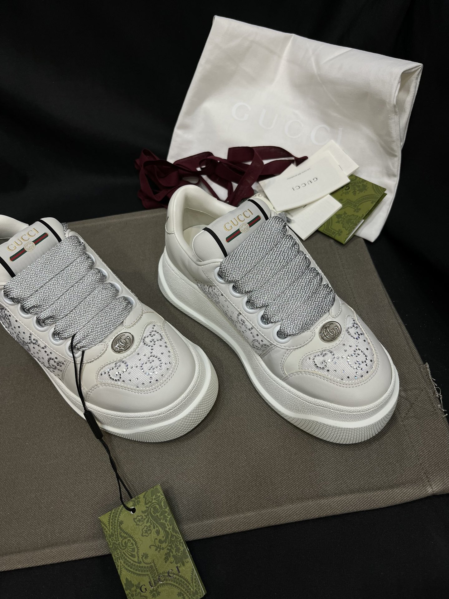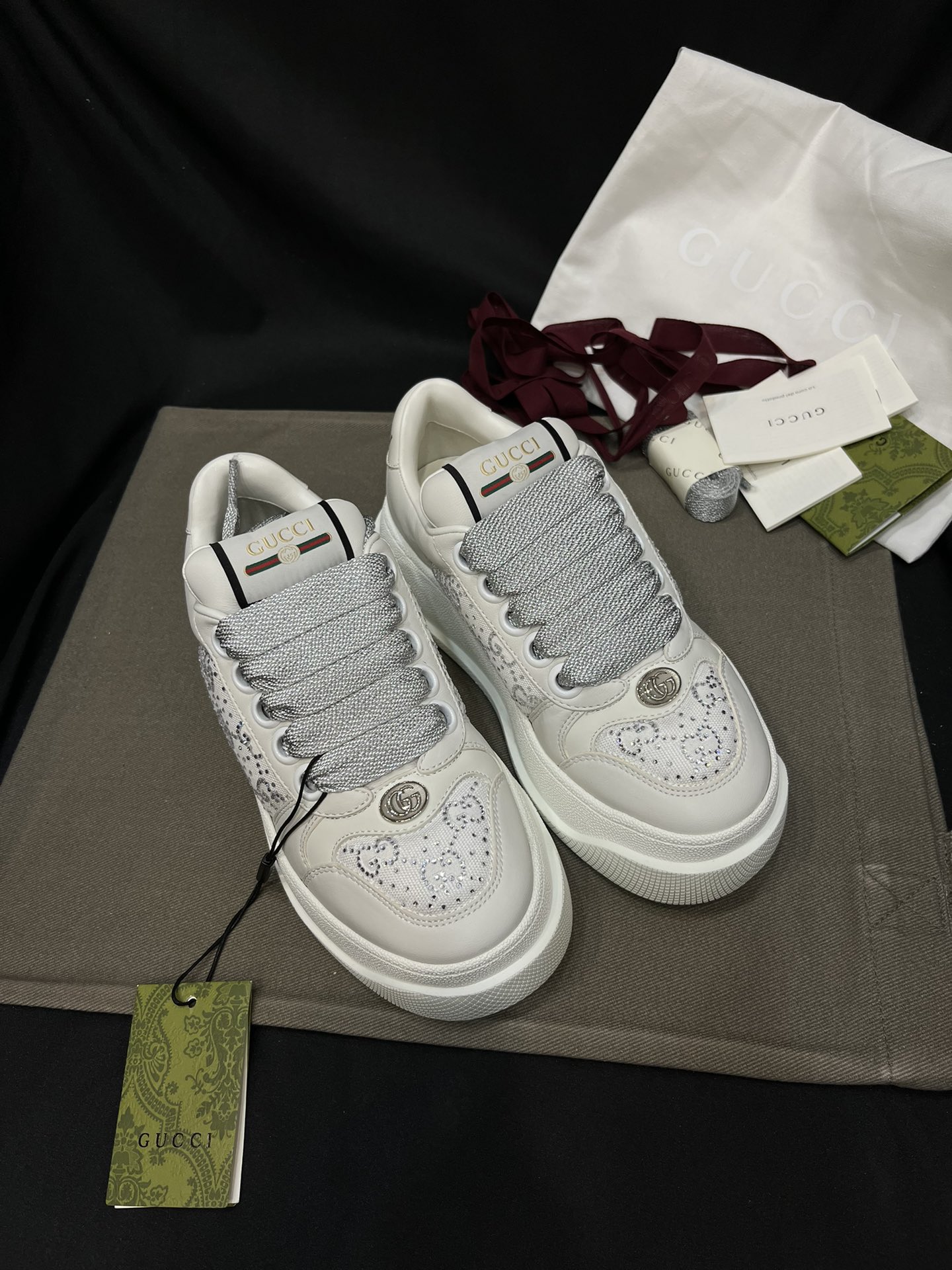 NIGO Gucci Women's Screener Collection Embellished Webbing Thick Sole Low Top Sneakers Shoes #nigo73521