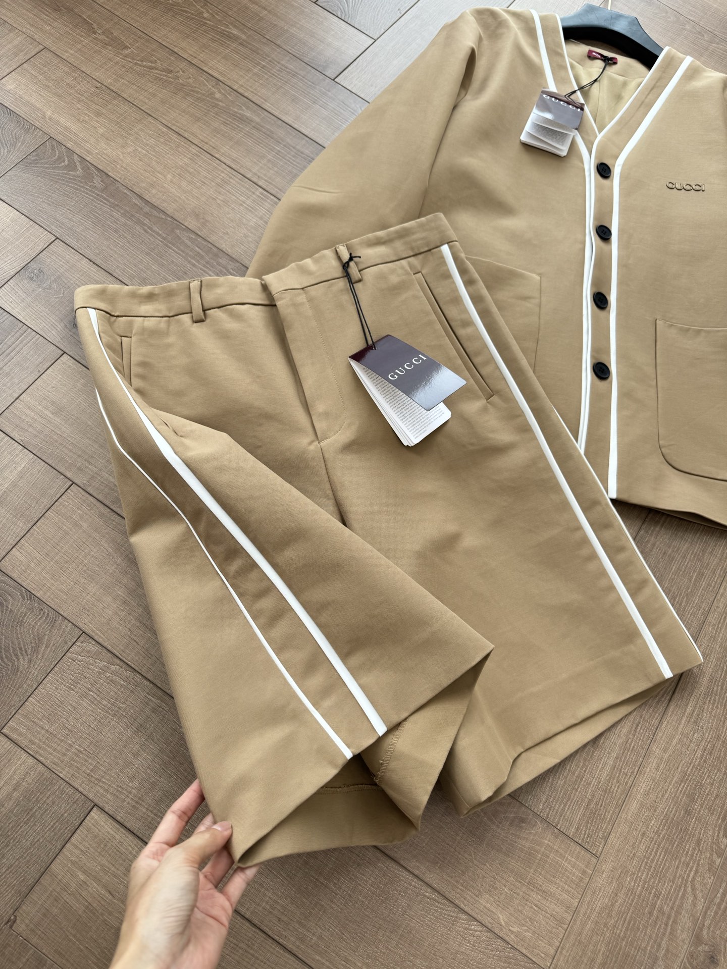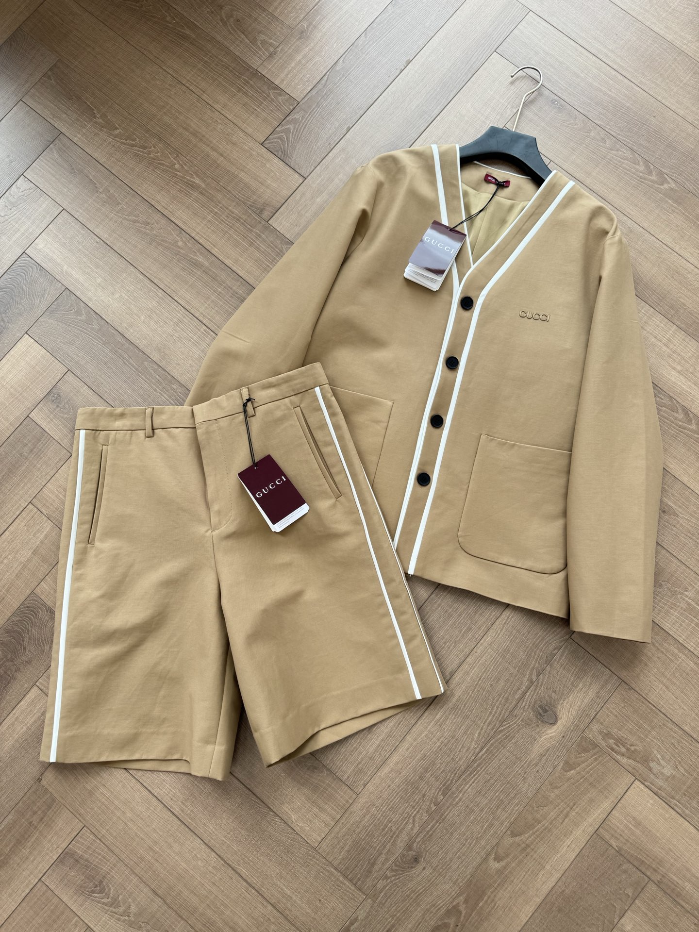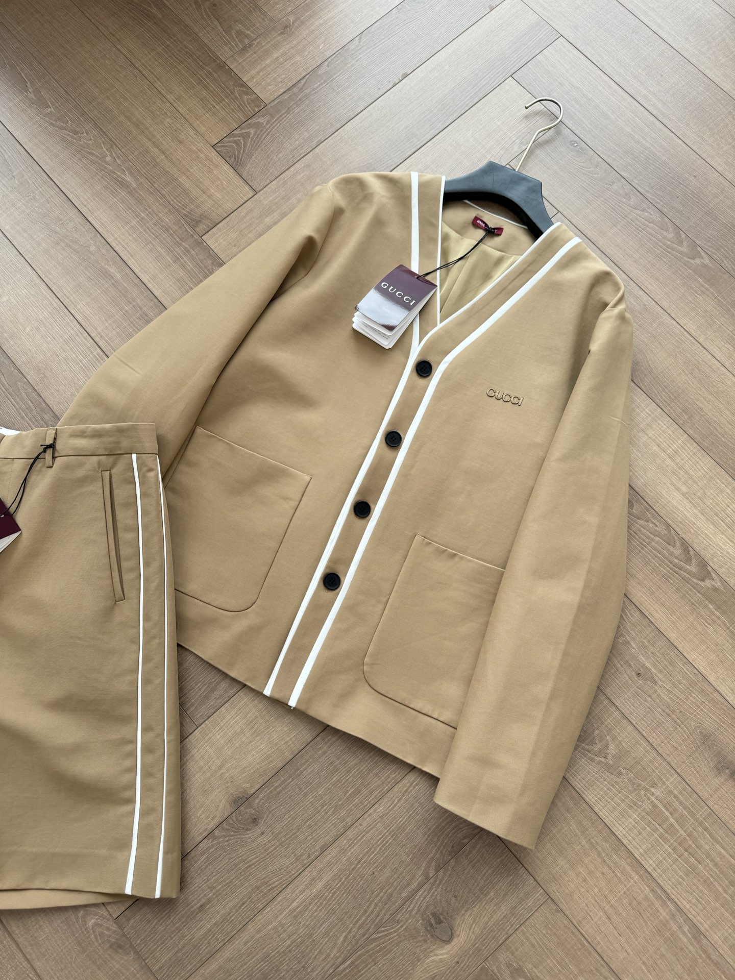 NIGO Gucci Women's Spring And Summer Solid Colour V-neck Single Breasted Long Sleeved Jacket Casual Shorts Suit Set #nigo76811