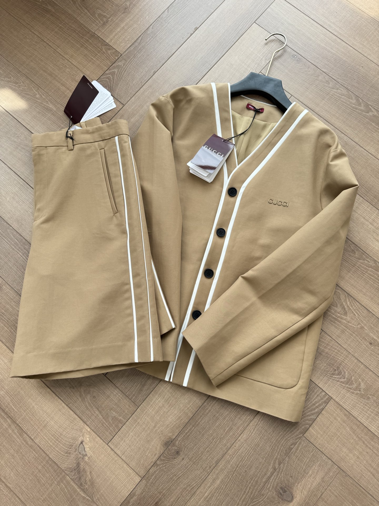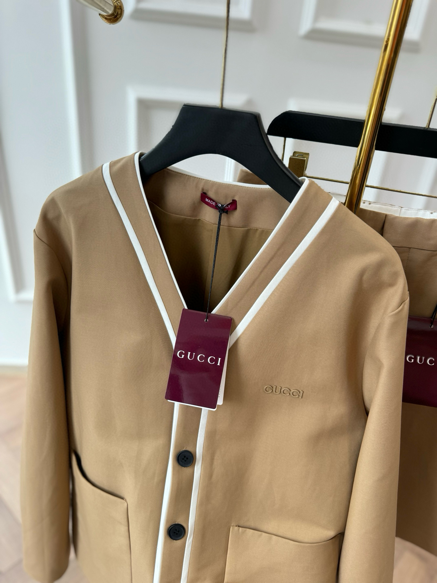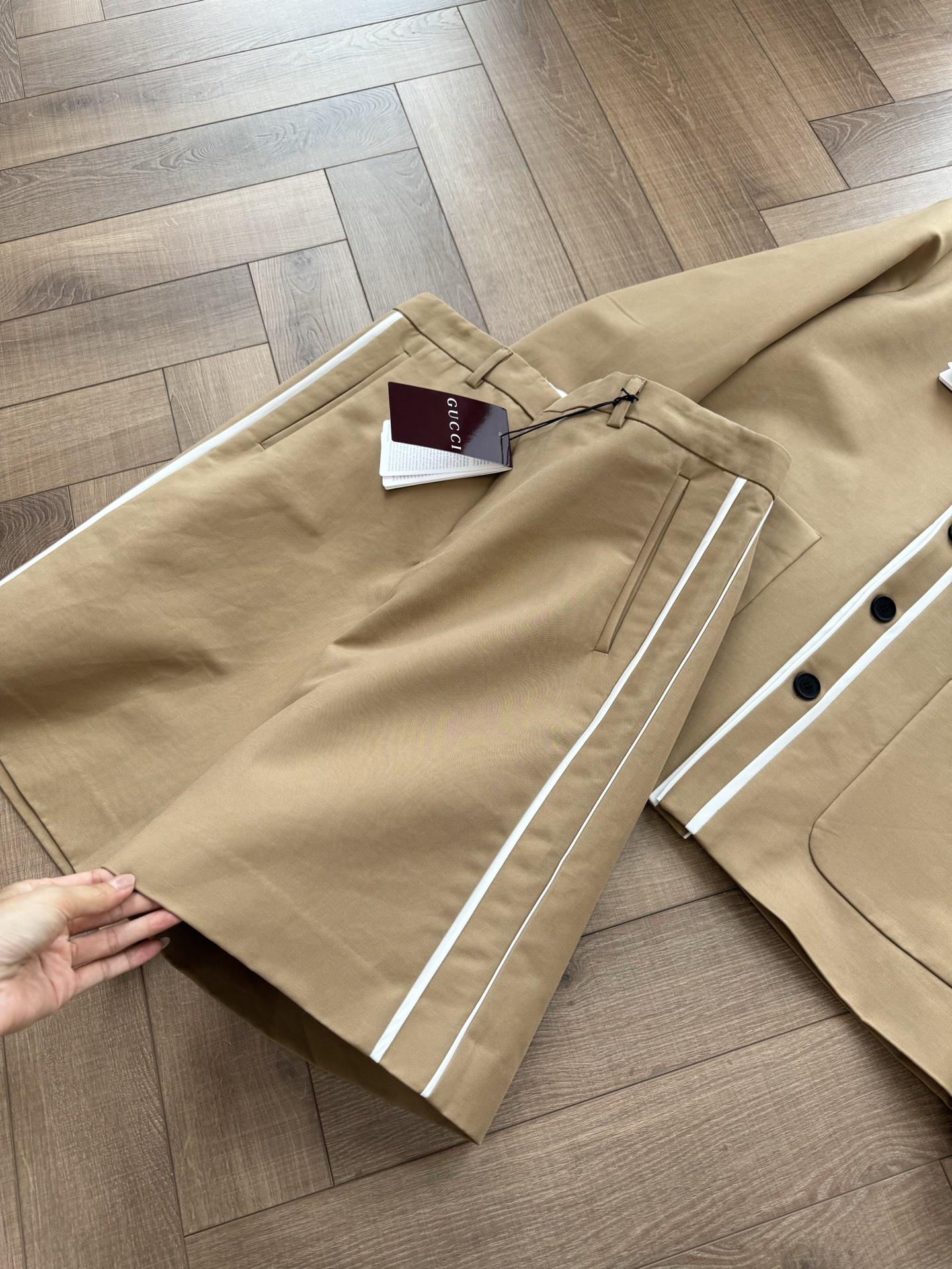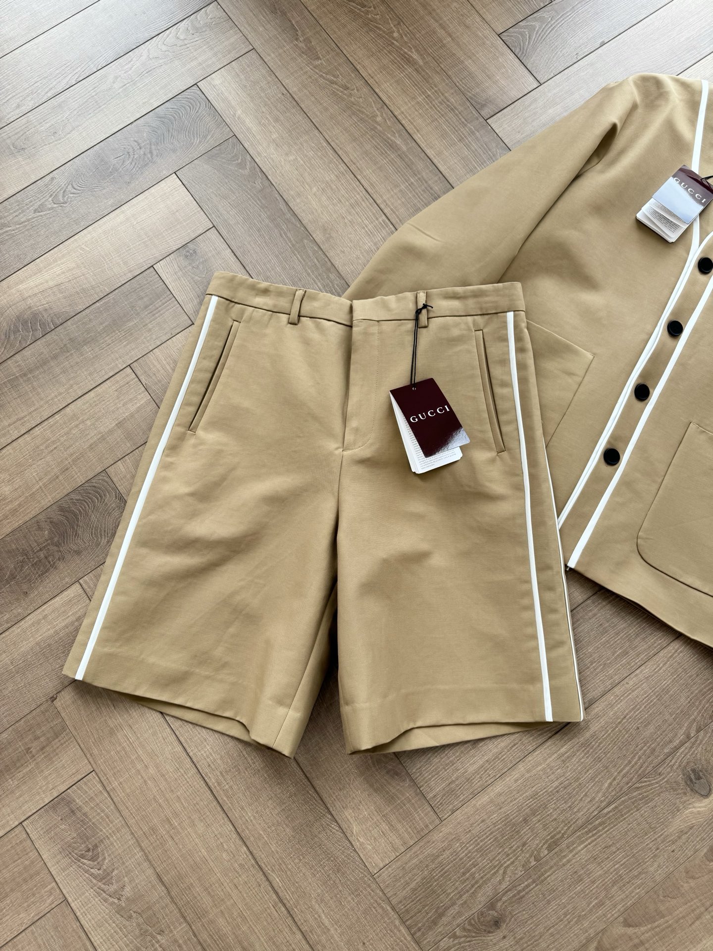 NIGO Gucci Women's Spring And Summer Solid Colour V-neck Single Breasted Long Sleeved Jacket Casual Shorts Suit Set #nigo76811