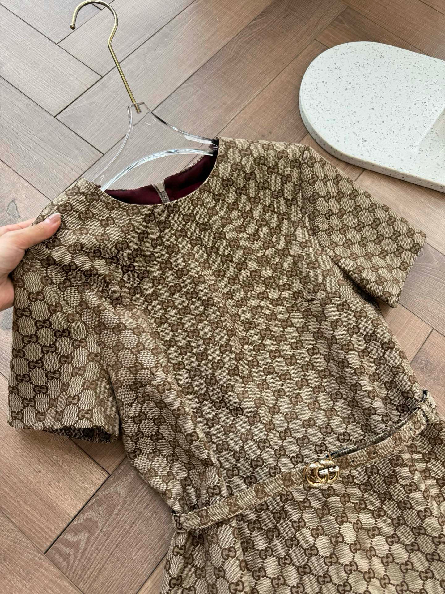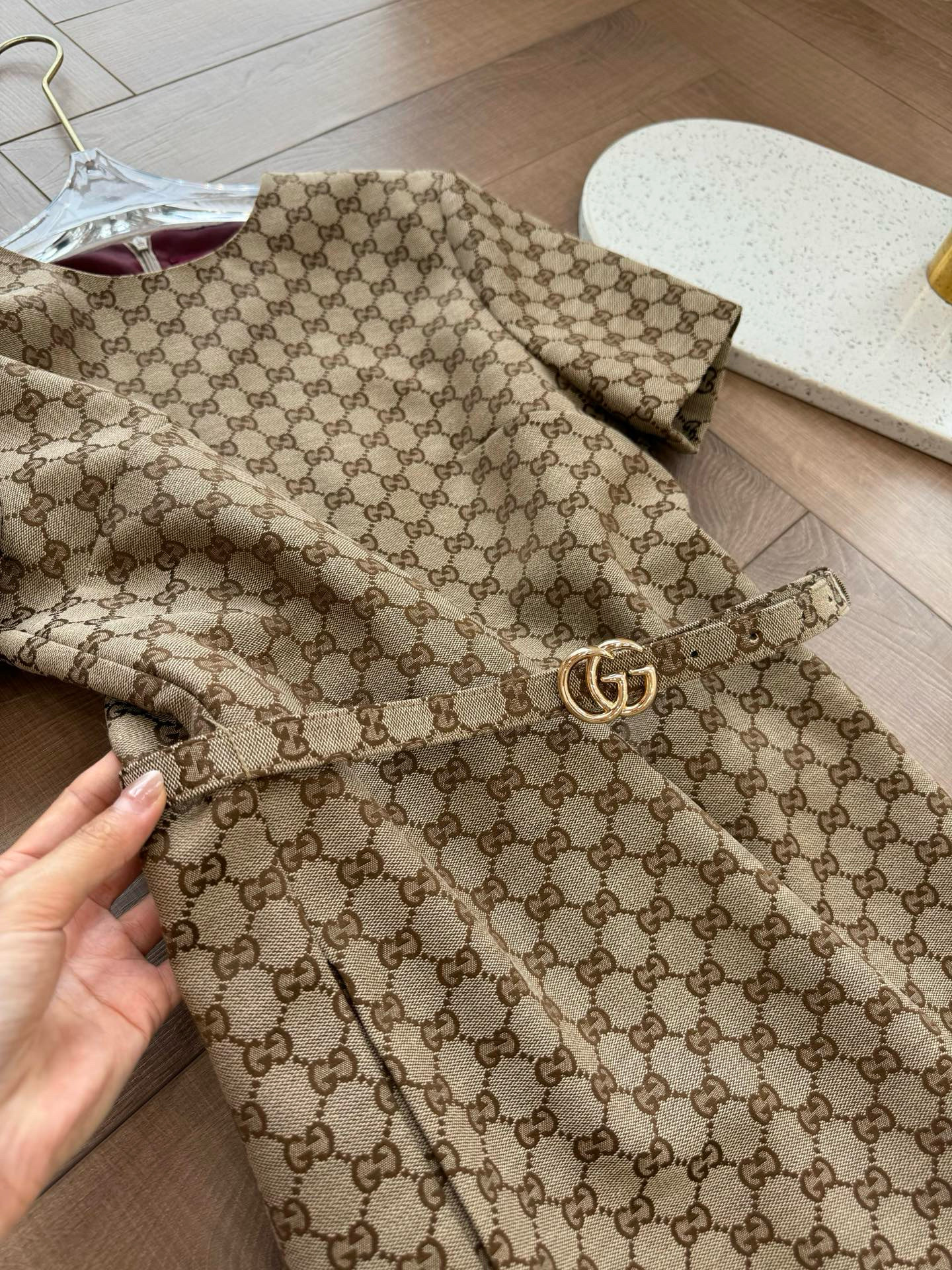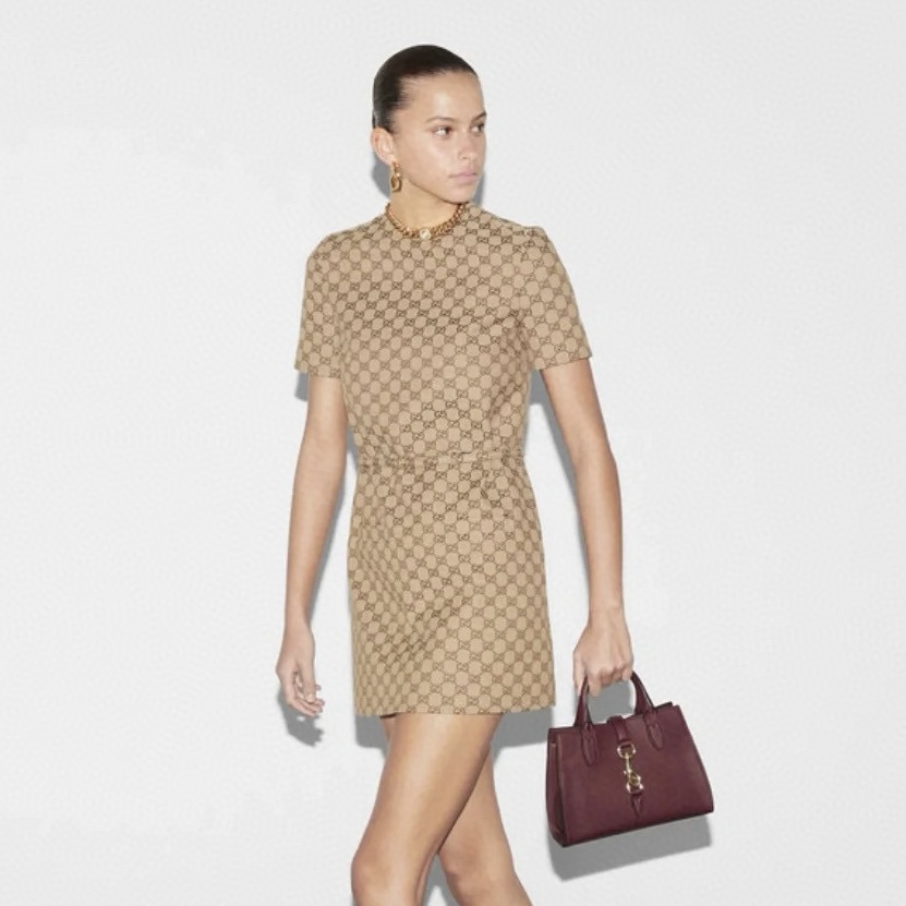 NIGO Gucci Women's Spring/Summer Round Neck Drawstring Waist Letter Printed Jacquard Short Sleeve Dresses #nigo76512