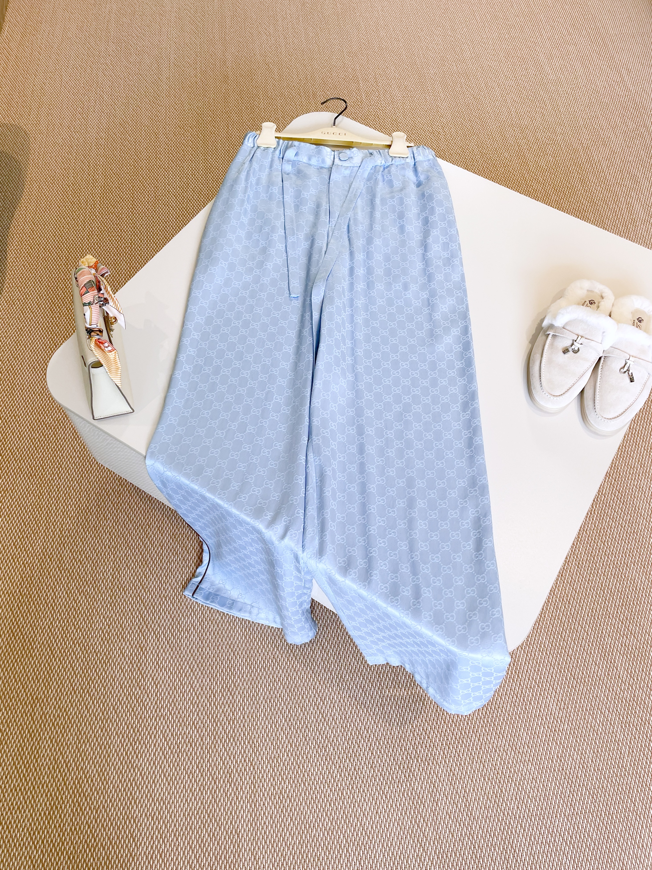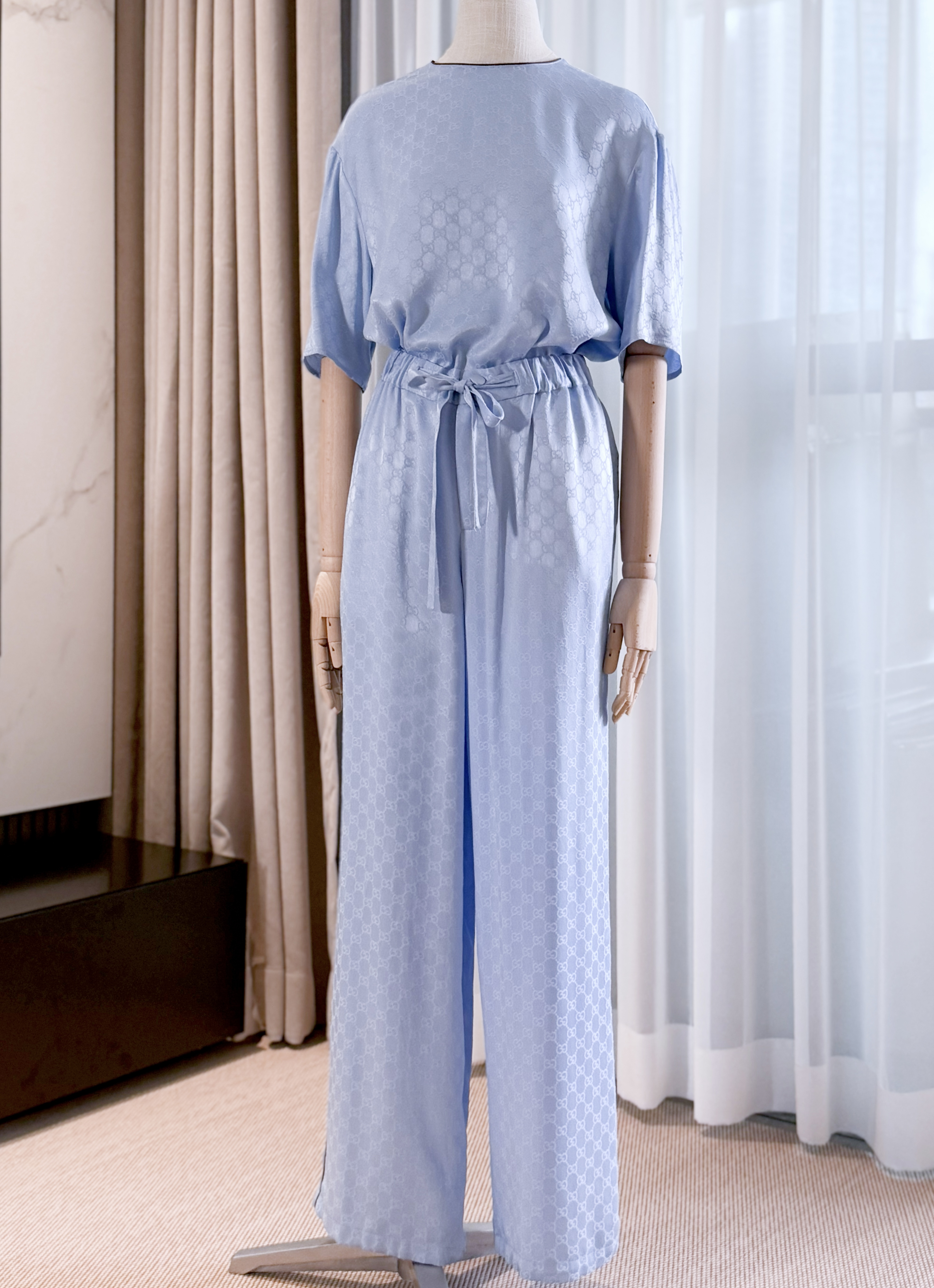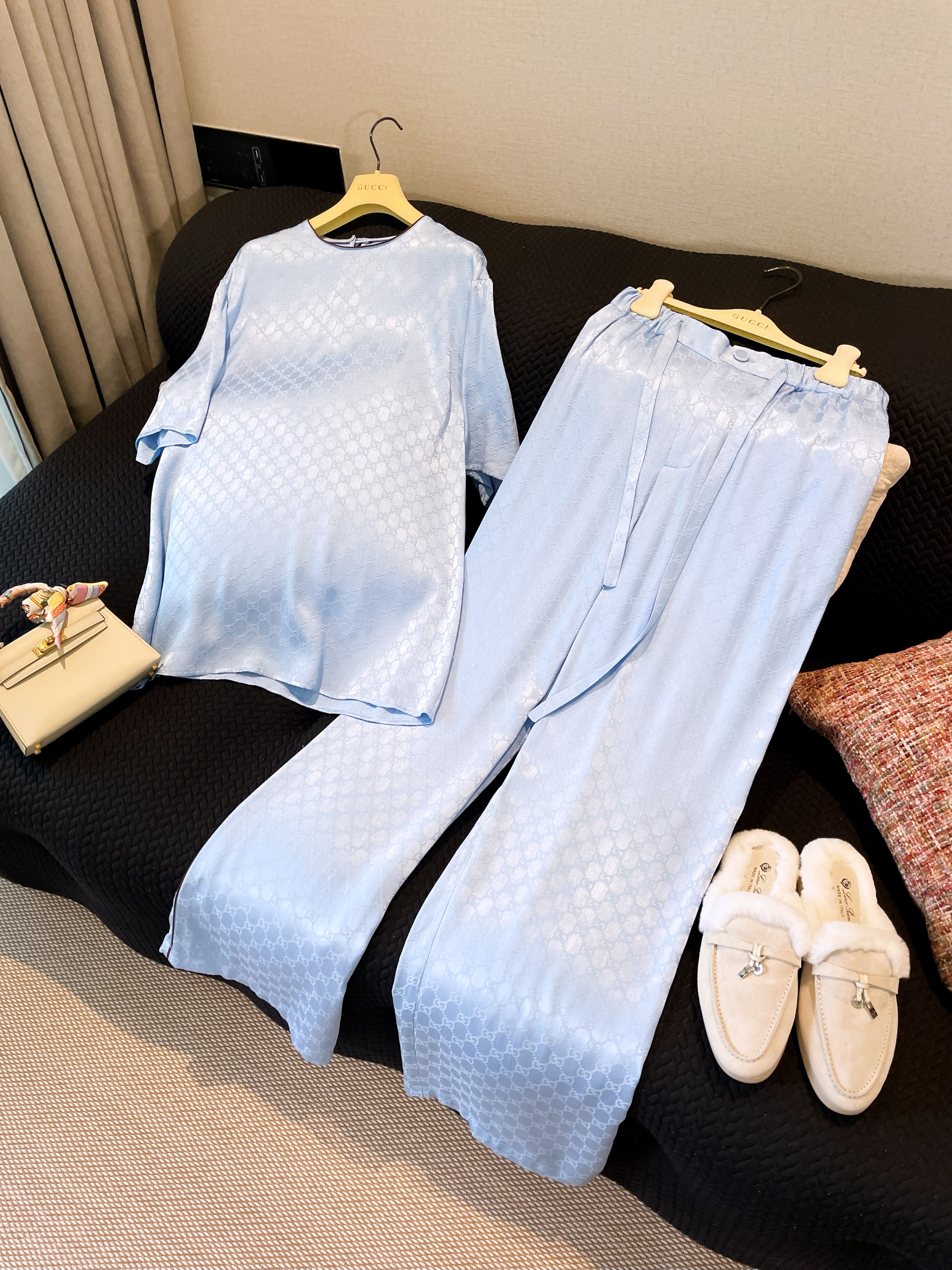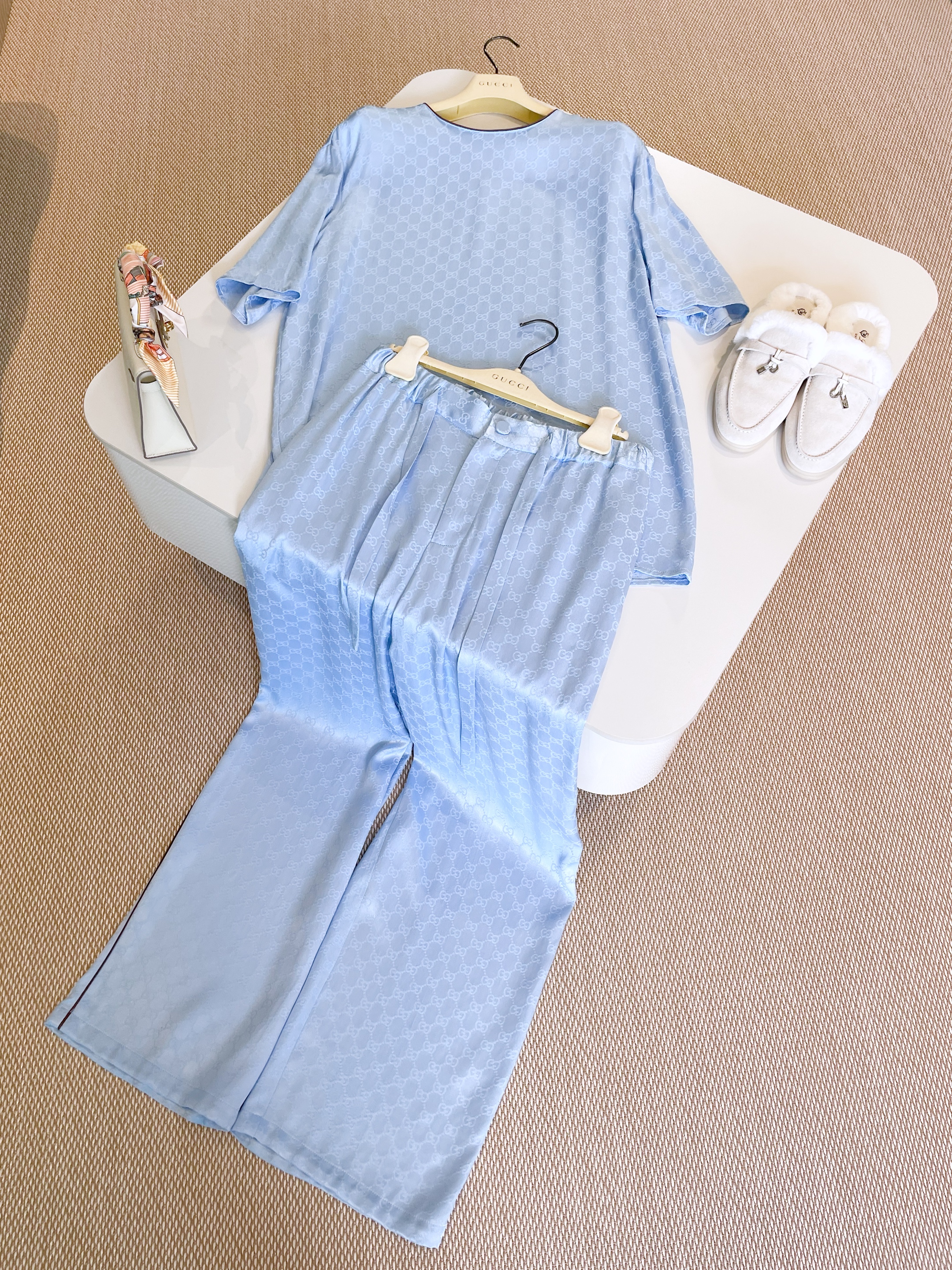 NIGO Gucci Women's Summer Solid Colour Letter Printed Acetate Loose Round Neck Short Sleeve T-Shirt Casual Tie Pants Set Suit #nigo76881
