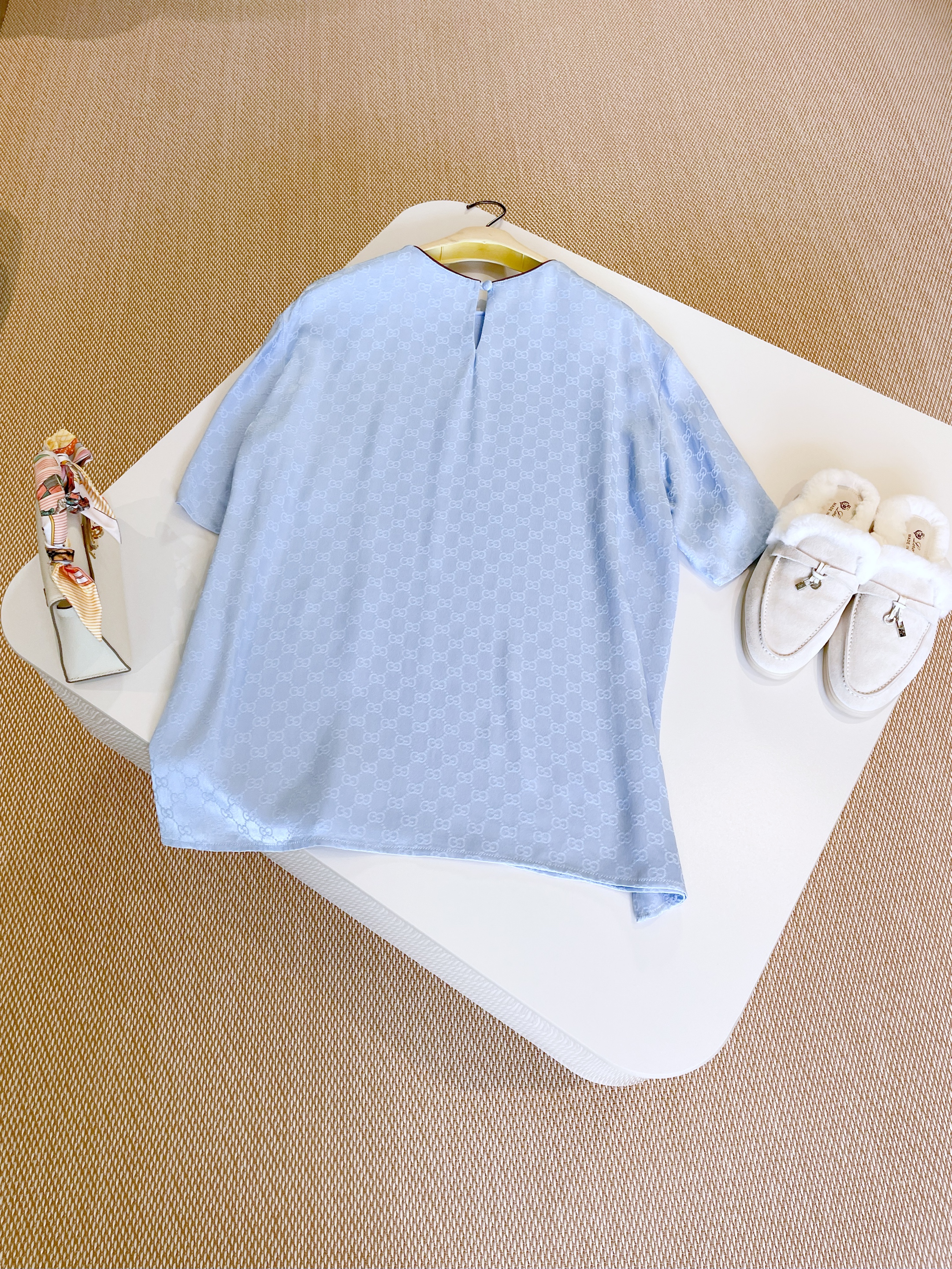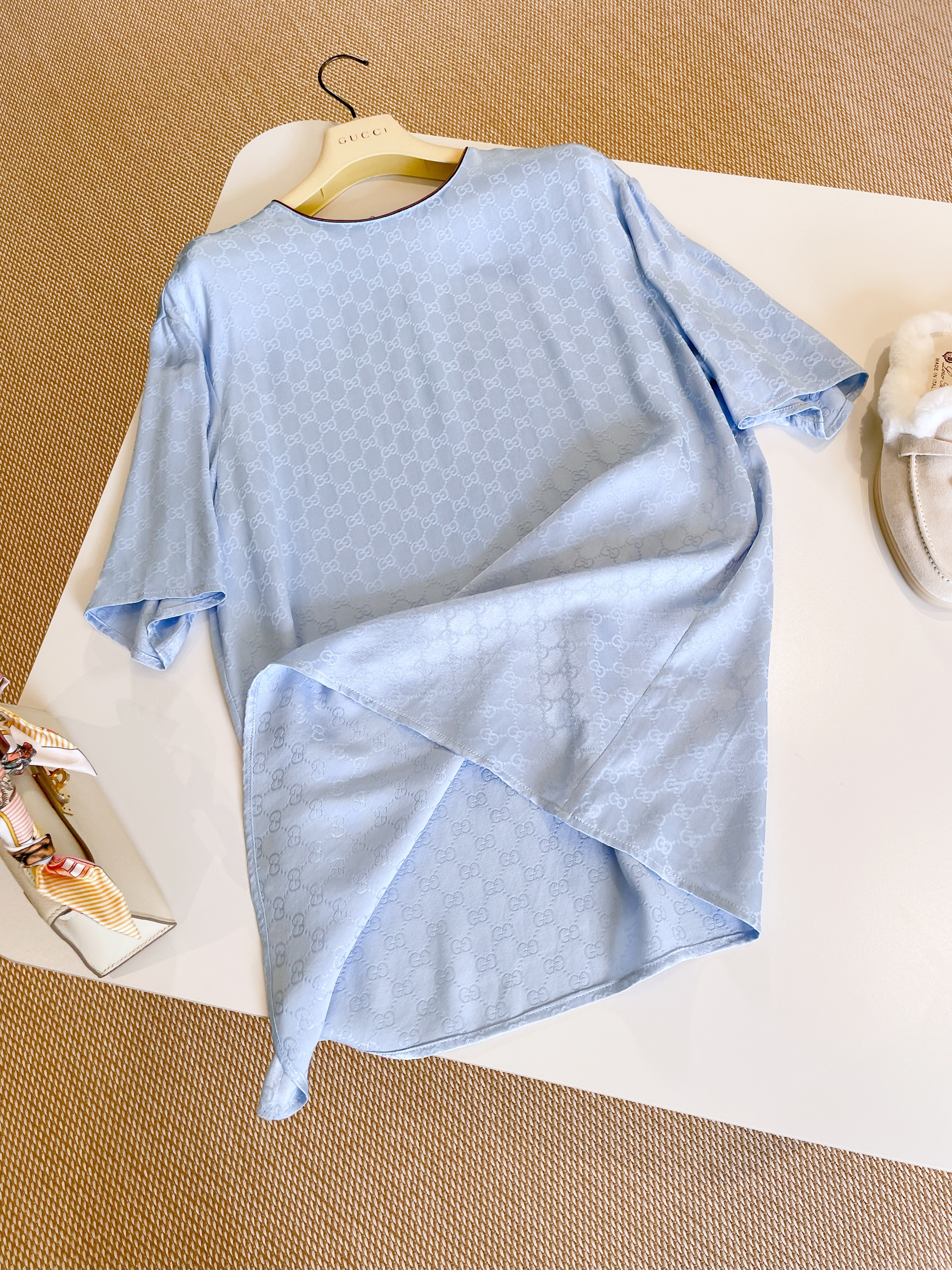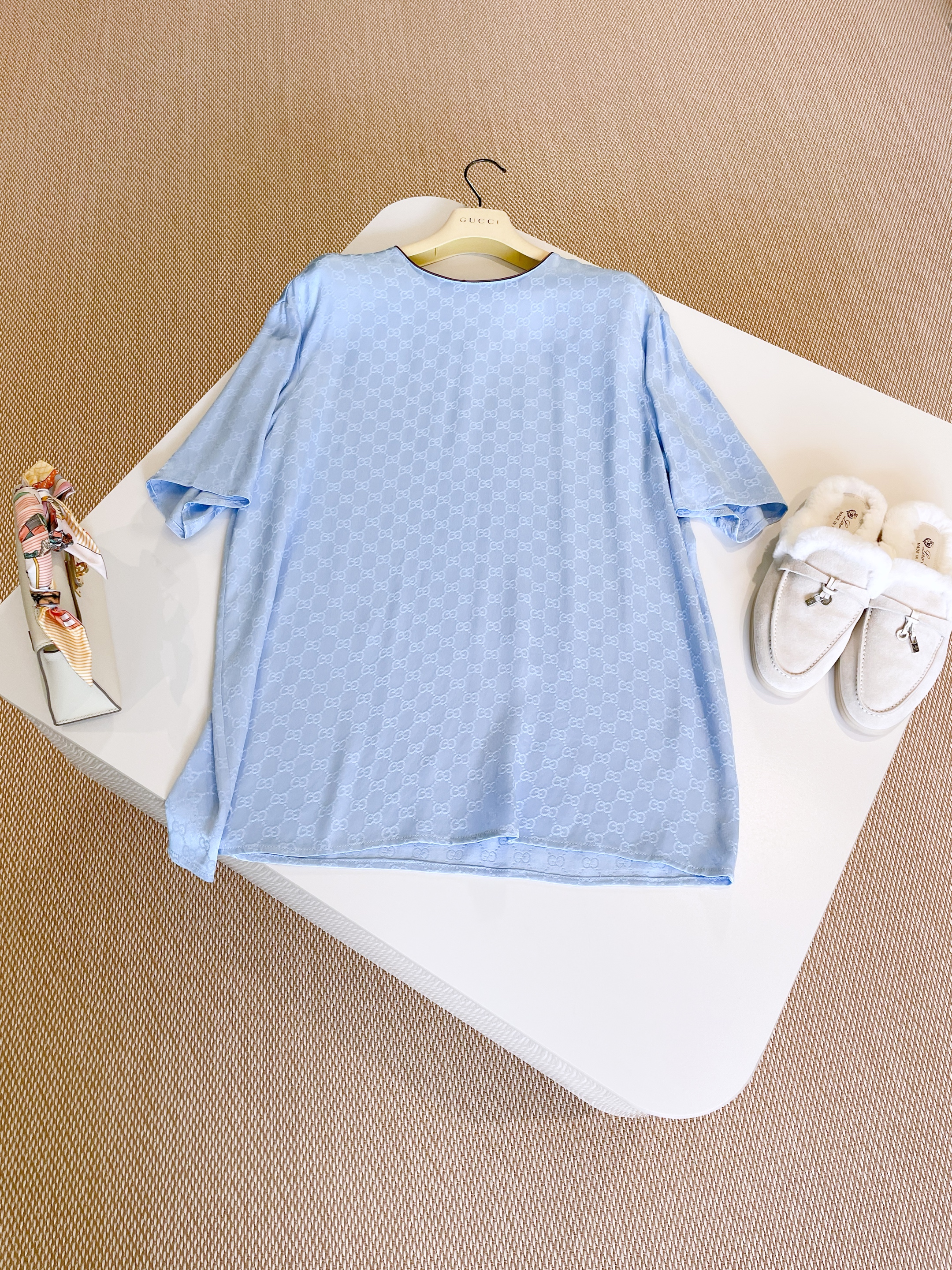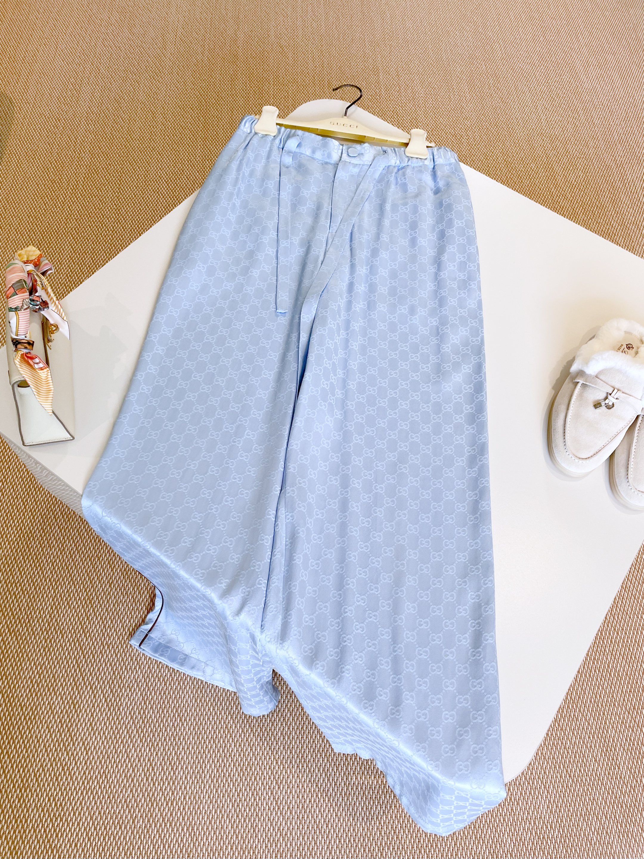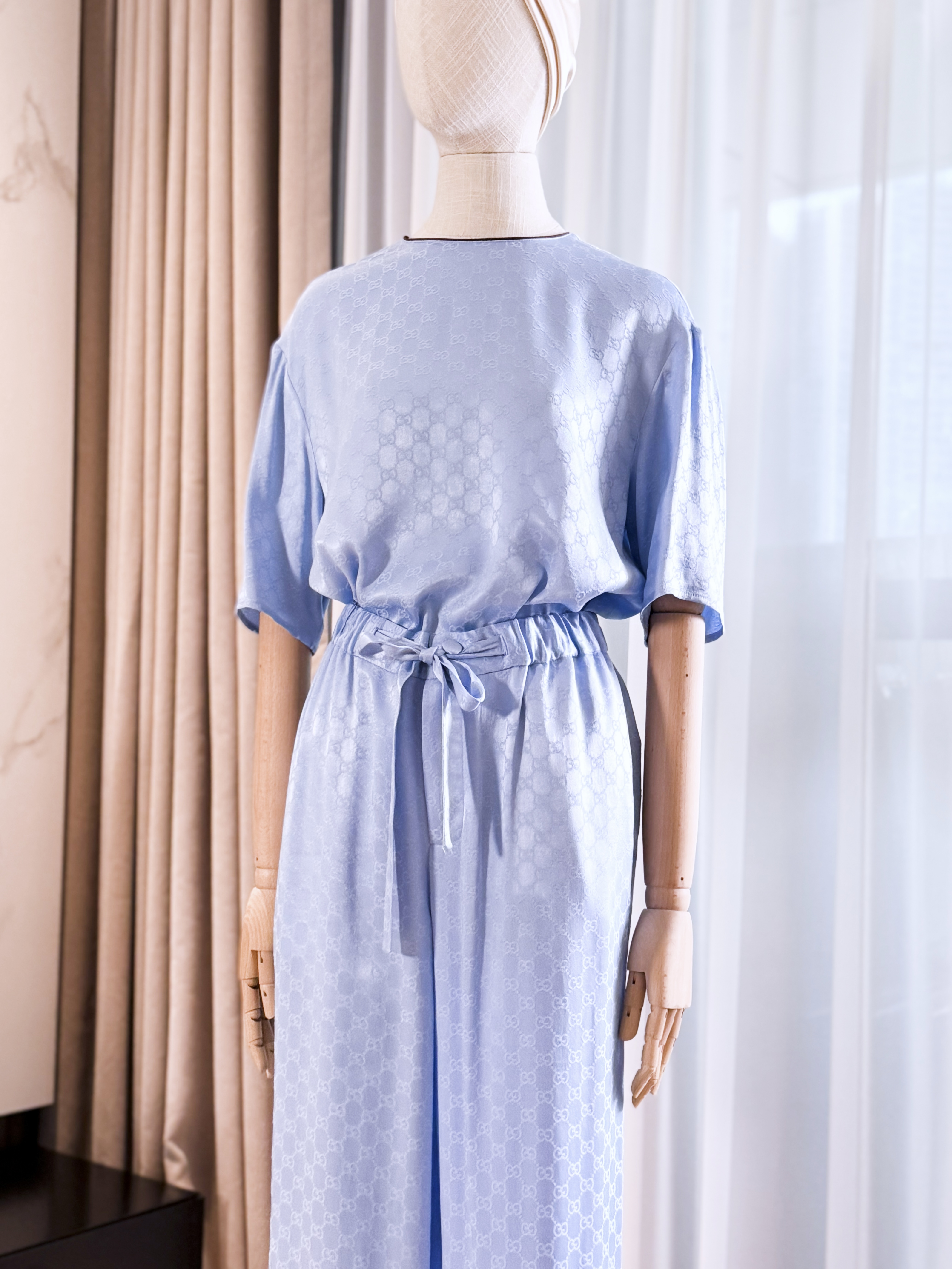 NIGO Gucci Women's Summer Solid Colour Letter Printed Acetate Loose Round Neck Short Sleeve T-Shirt Casual Tie Pants Set Suit #nigo76881