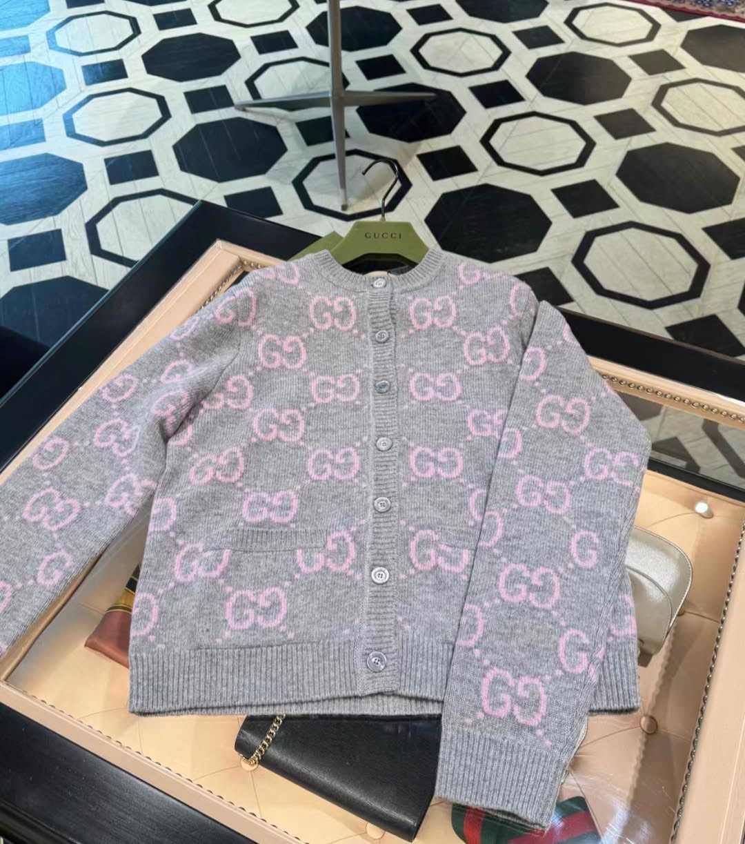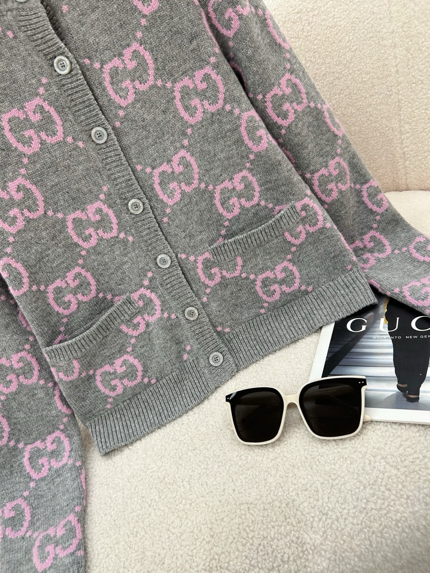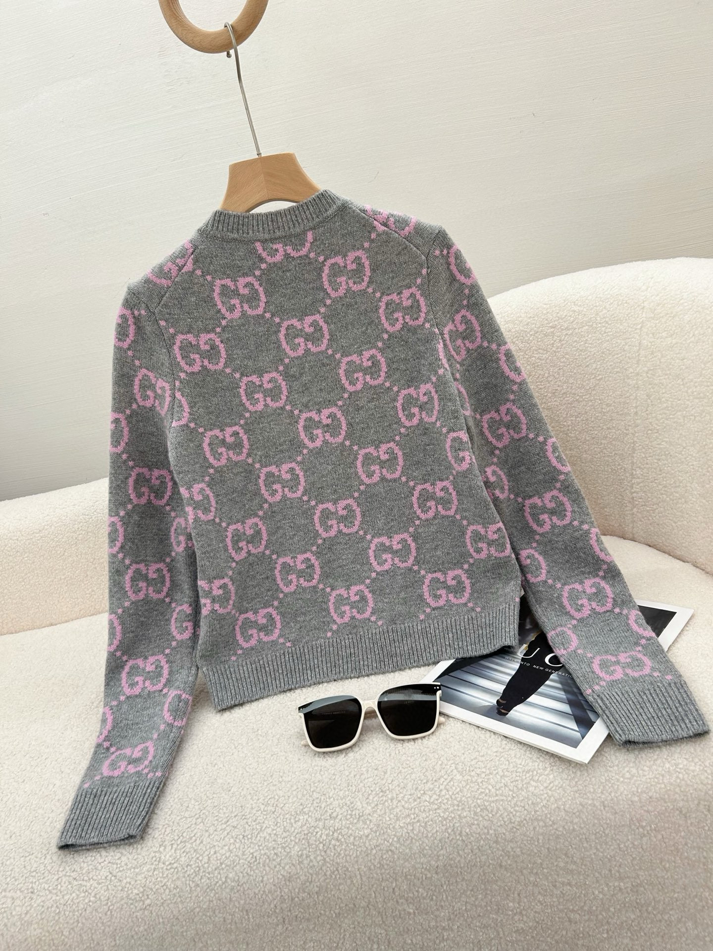 NIGO Gucci Women's Fall And Winter Double G Knit Round Neck Single Breasted Long Sleeved Jacket Sweater #nigo75289
