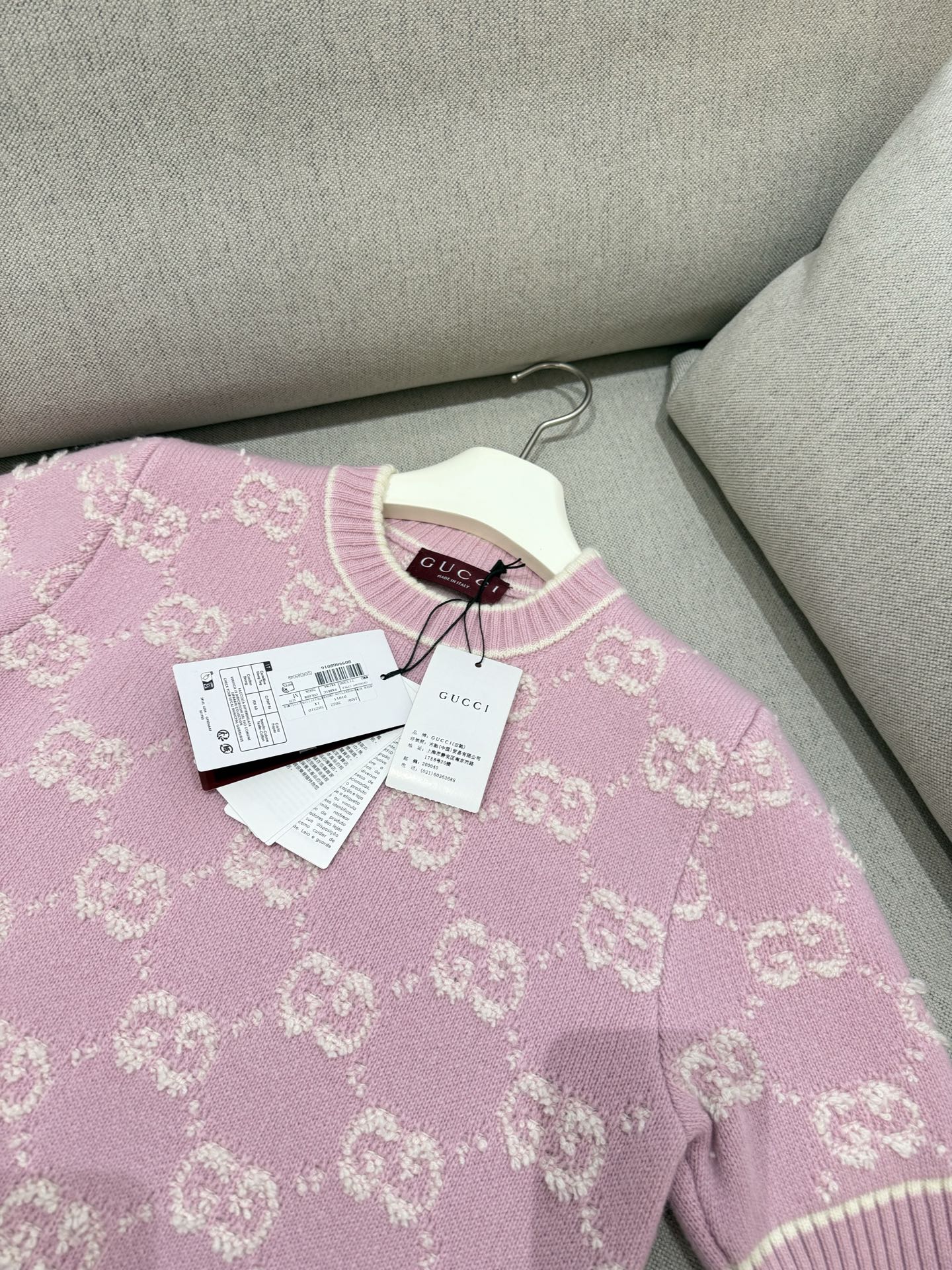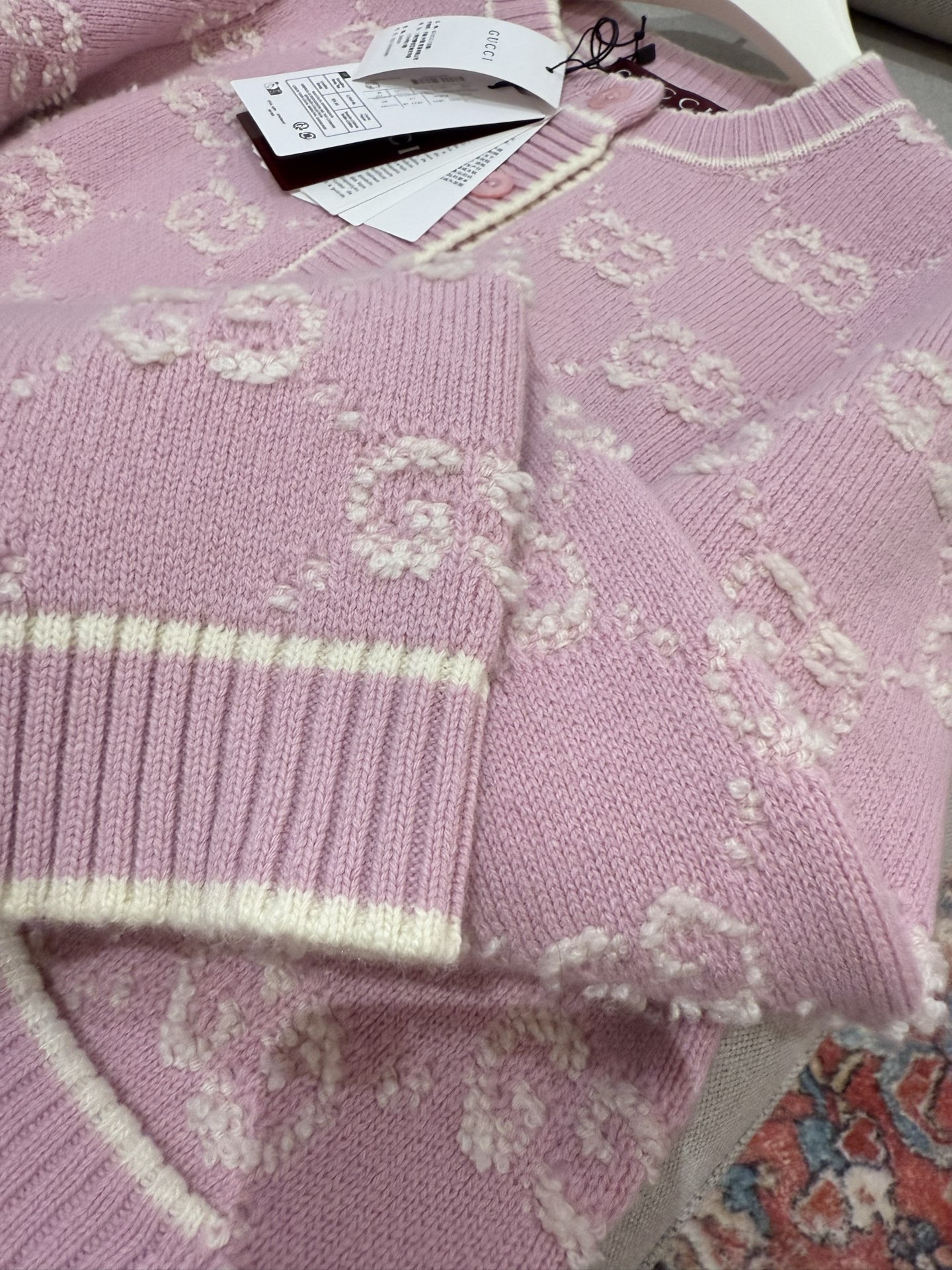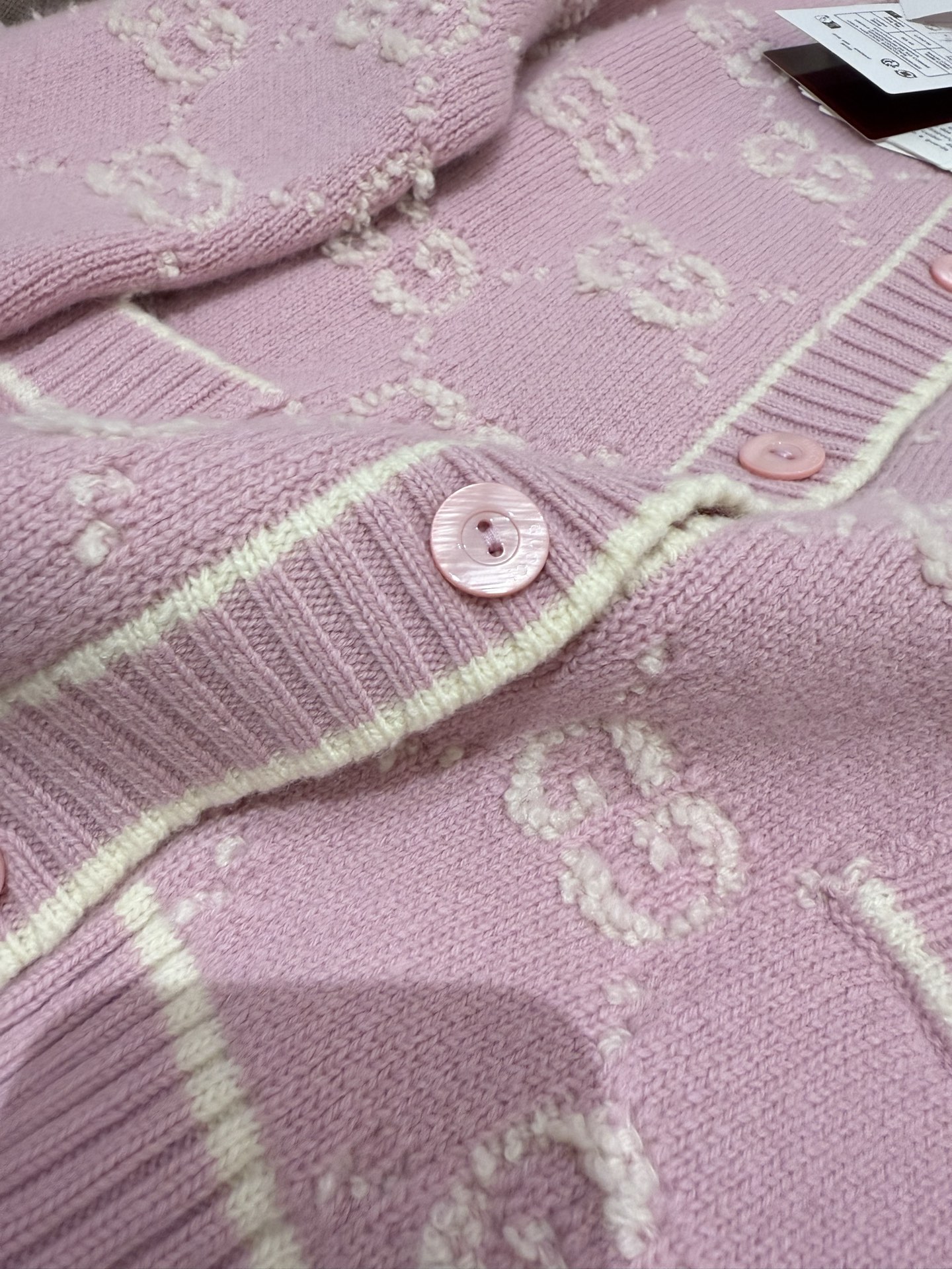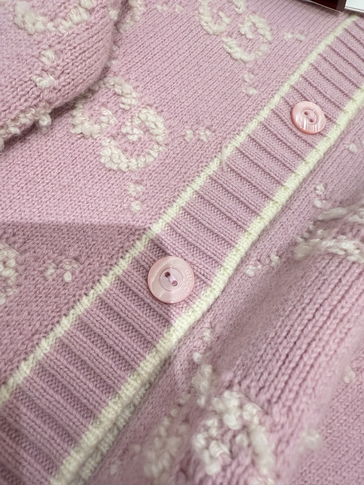 NIGO Gucci NIGO Gucci Spring Women's Pink Logo Appliqué Crew neck Single Breasted Long Sleeve Knit Jacket #nigo75324