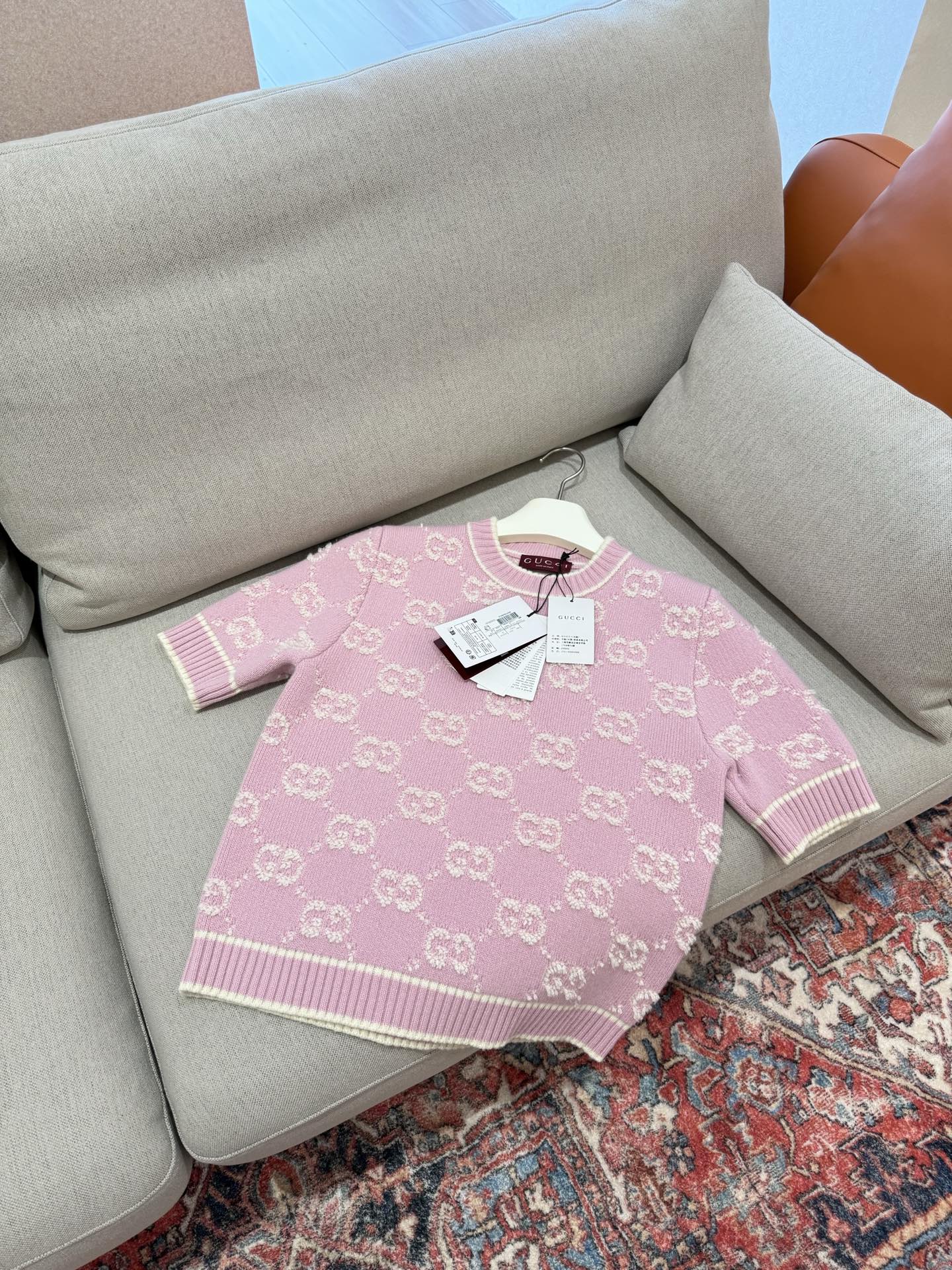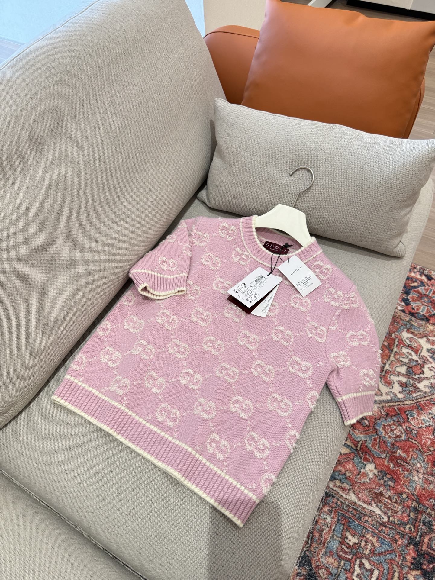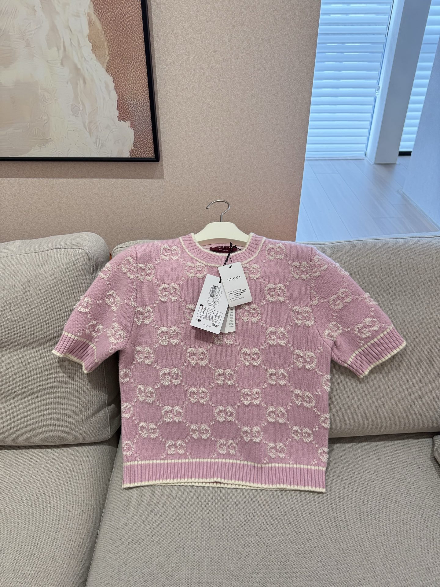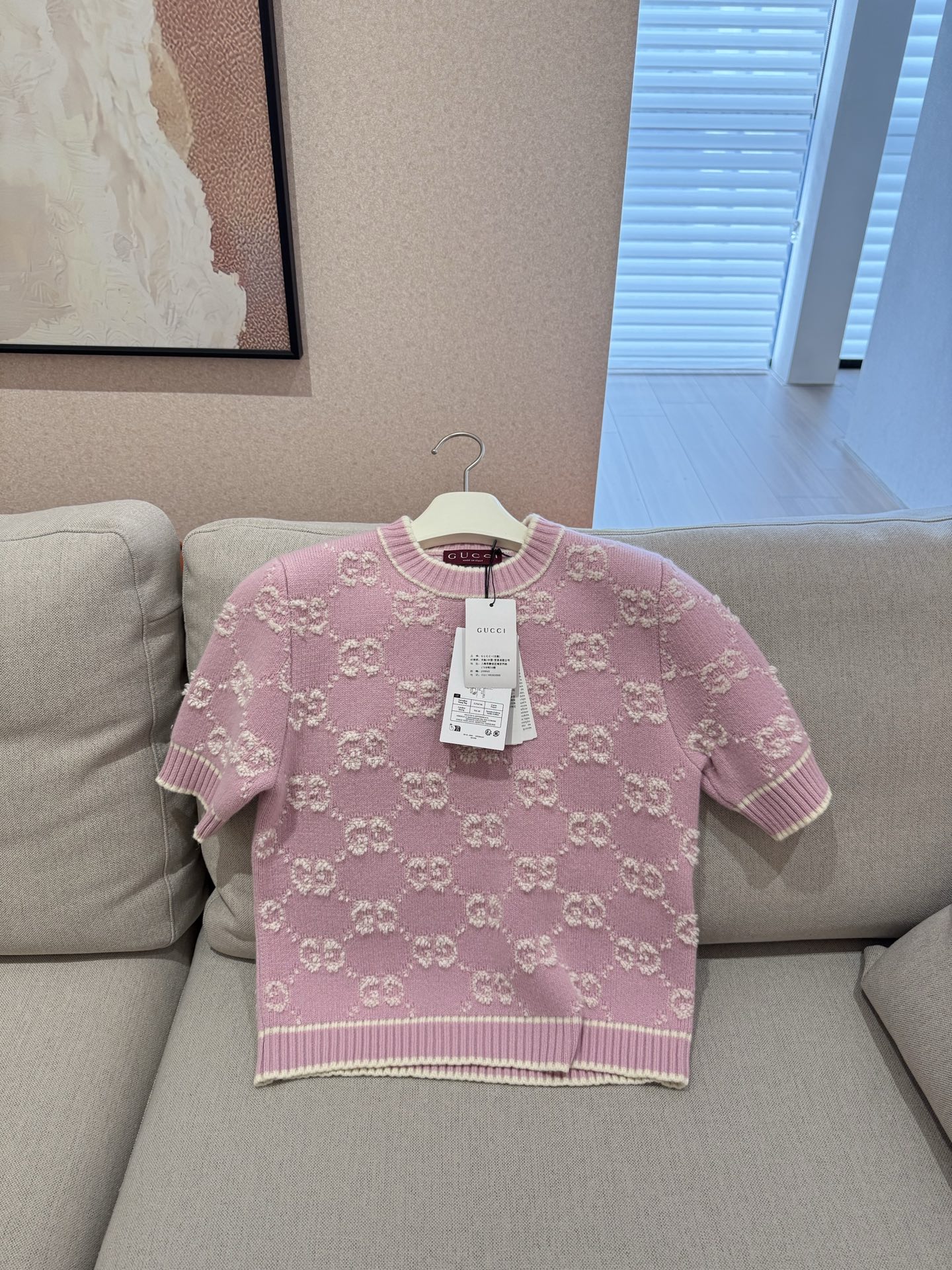 NIGO Gucci Spring Women's Pink Logo Applique Round Neck Short Sleeve Knit T-Shirt #nigo75325