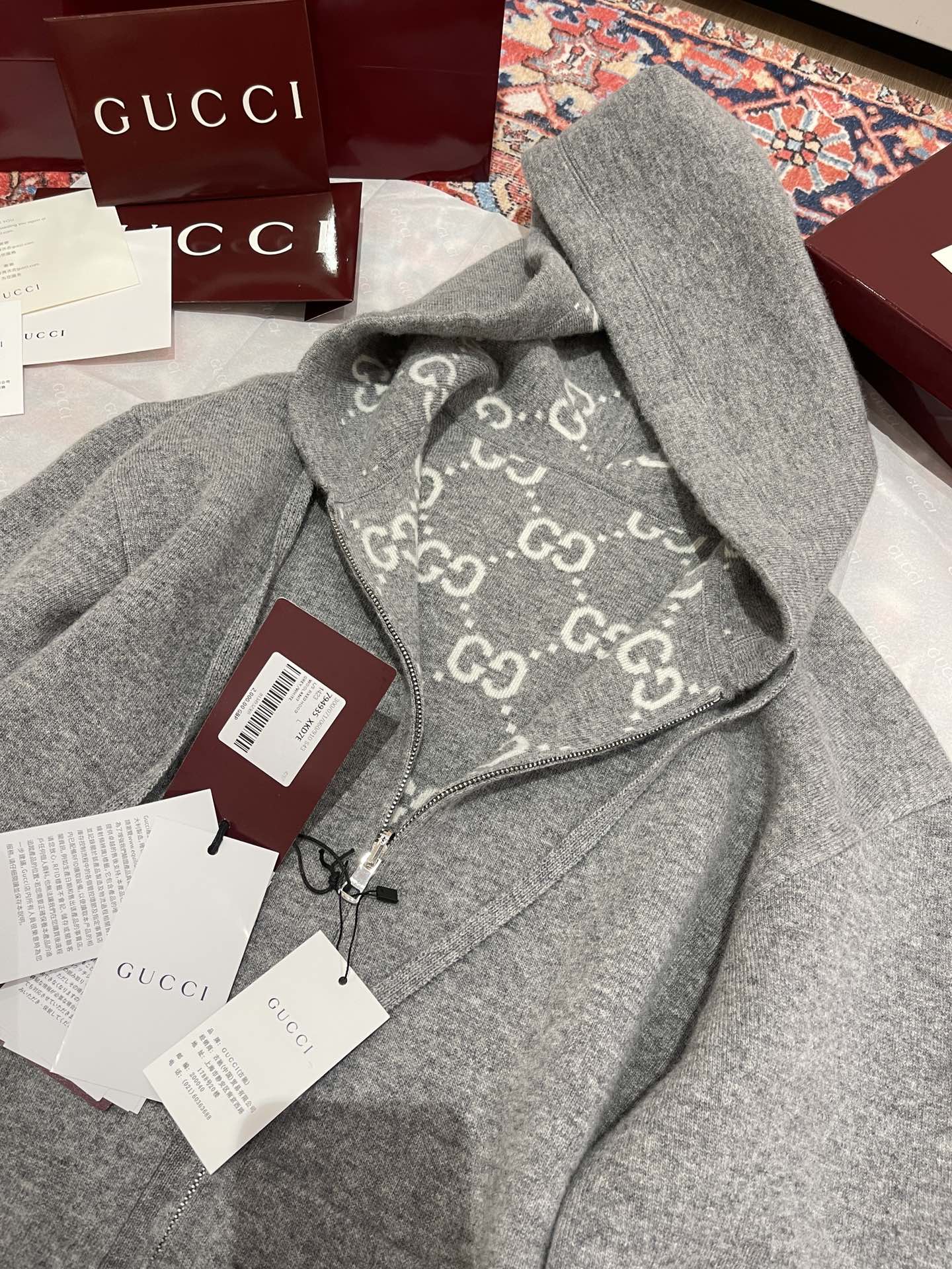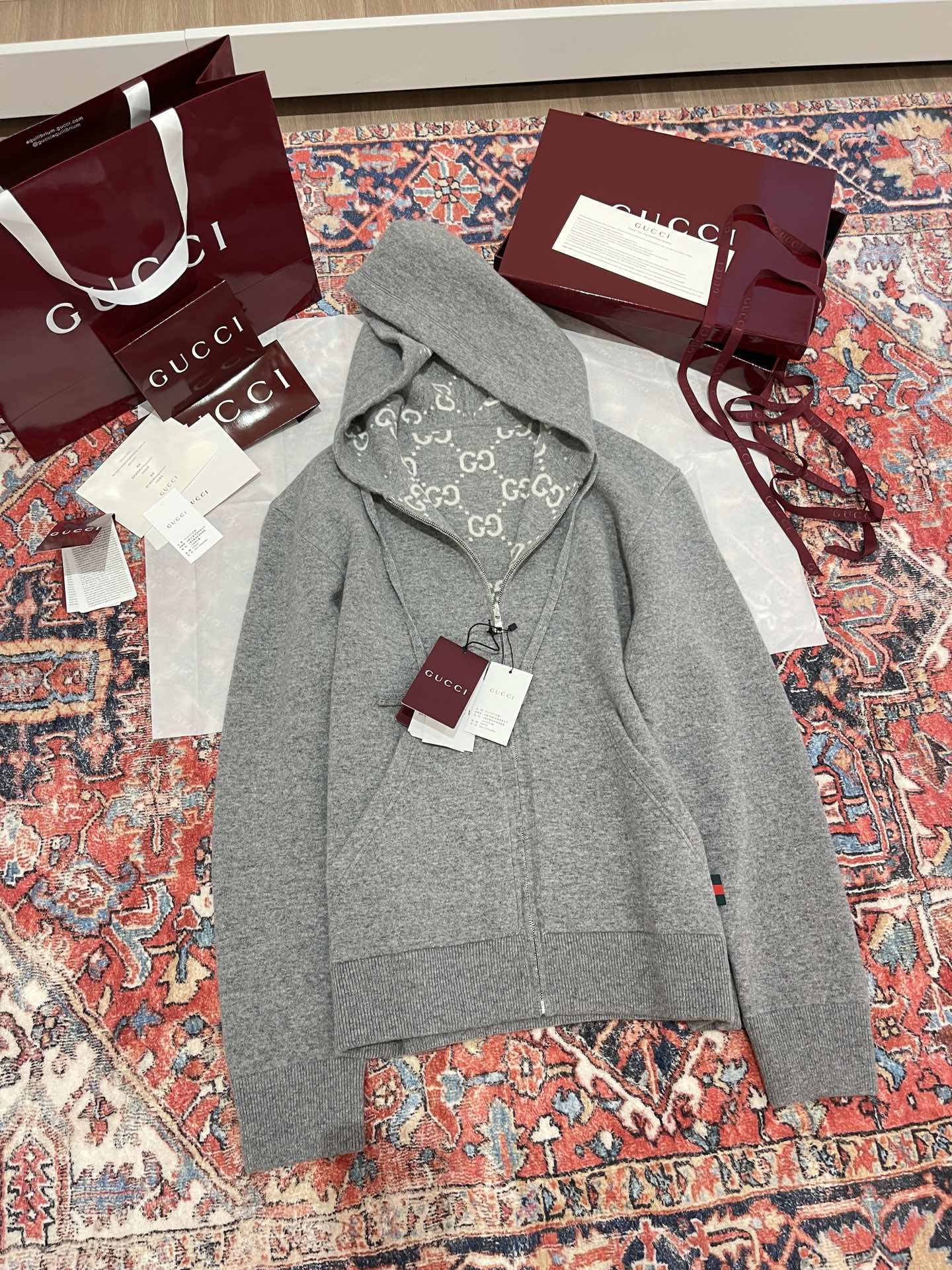 NIGO Gucci Men's Autumn and Winter Gray Full Printed Reversible Hooded Zipper Long Sleeve Jacket #nigo74292