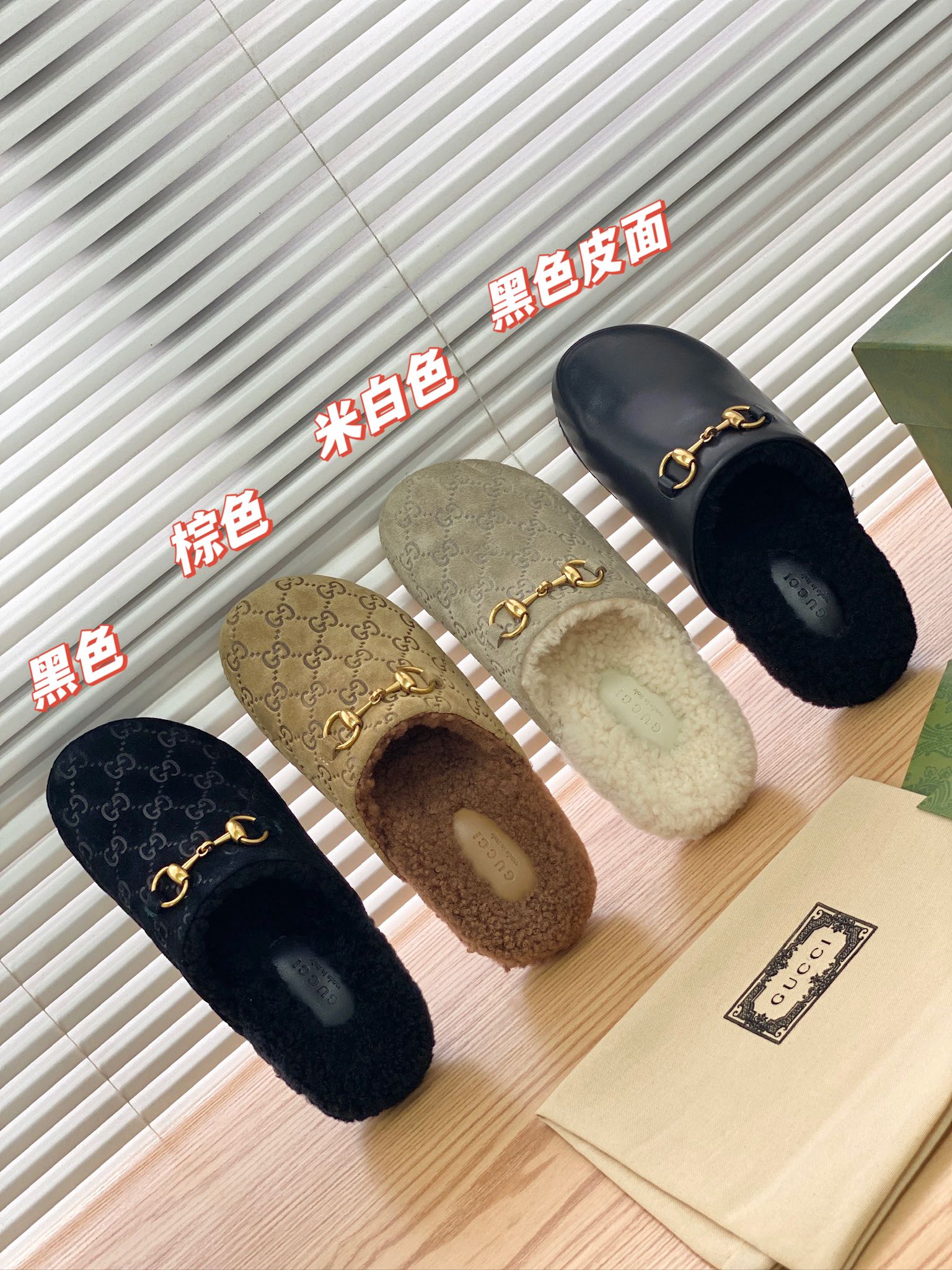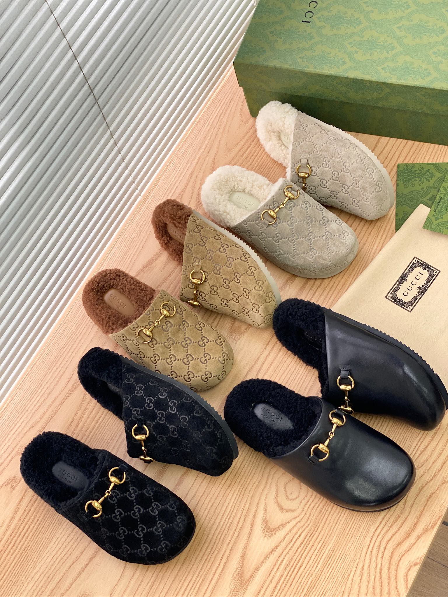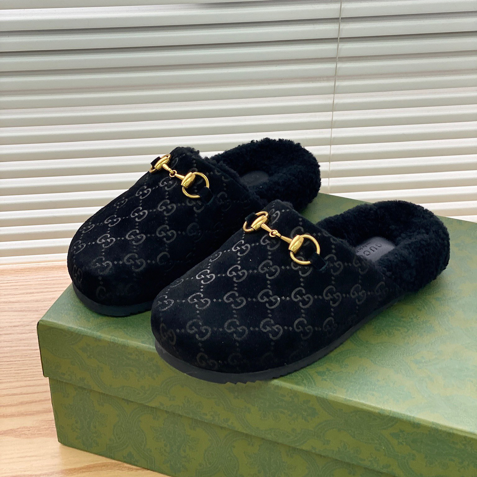 NIGO Gucci Women's Autumn and Winter Suede Alphabet Printed Lamb Suede Slippers Shoes #nigo74337