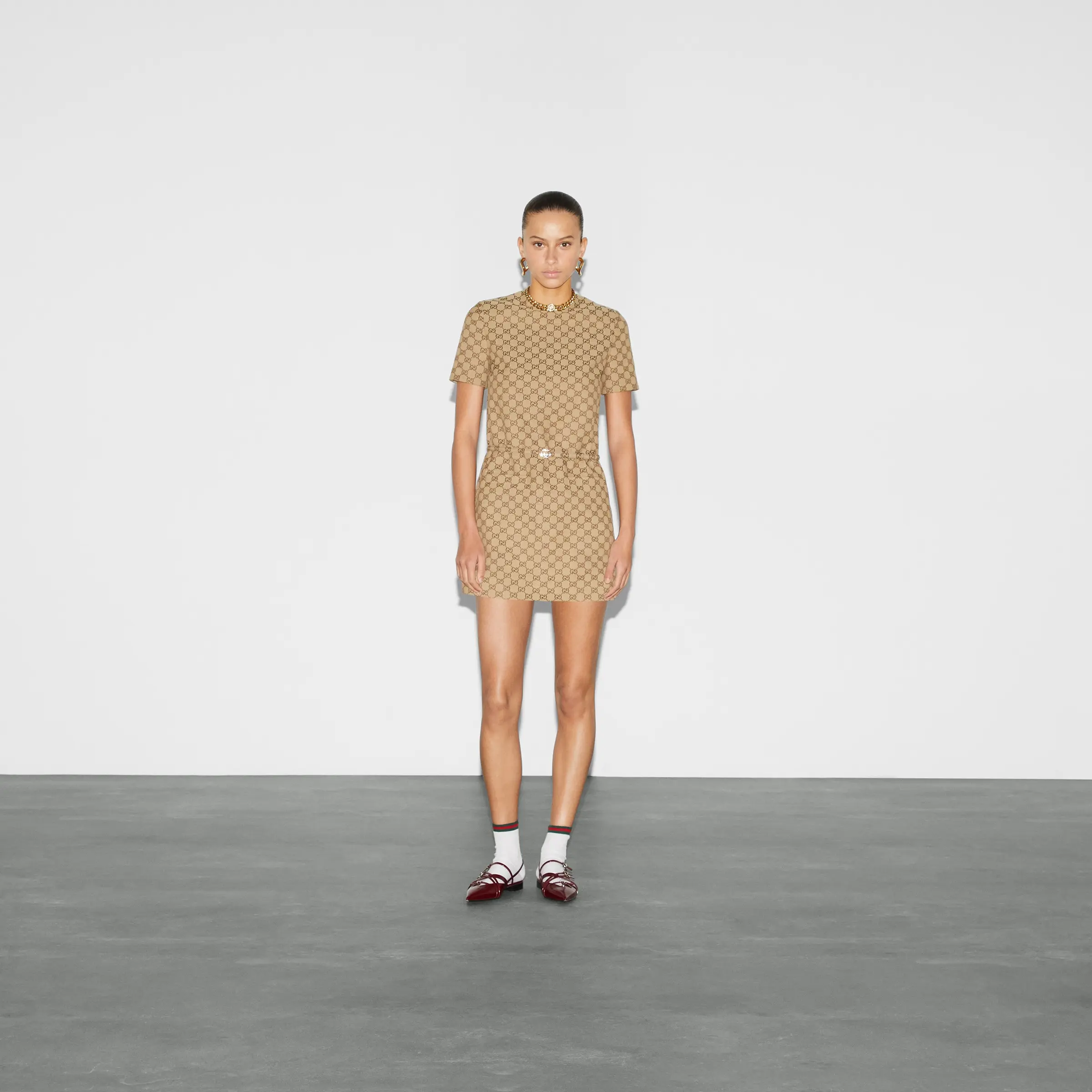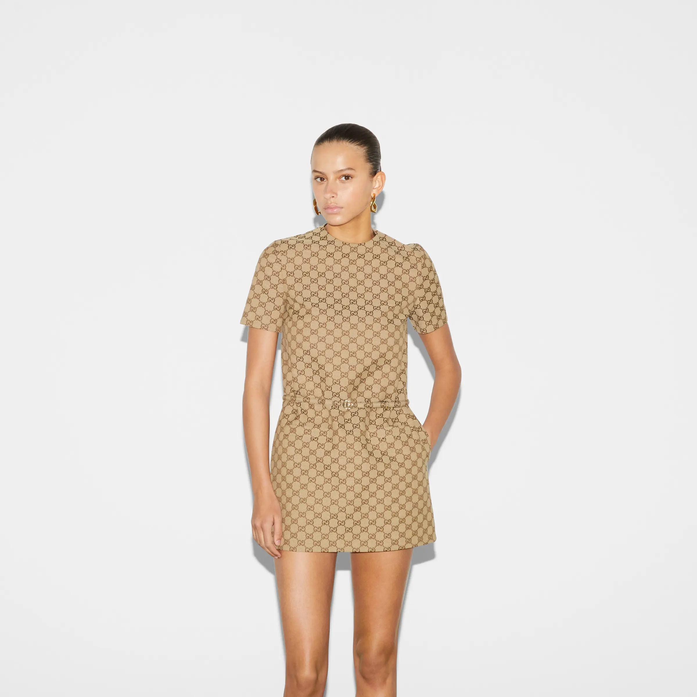 NIGO Gucci Women's Summer GG Jacquard Round Neck Canvas Short Sleeve Solid Color Fitted Dresses #nigo71756