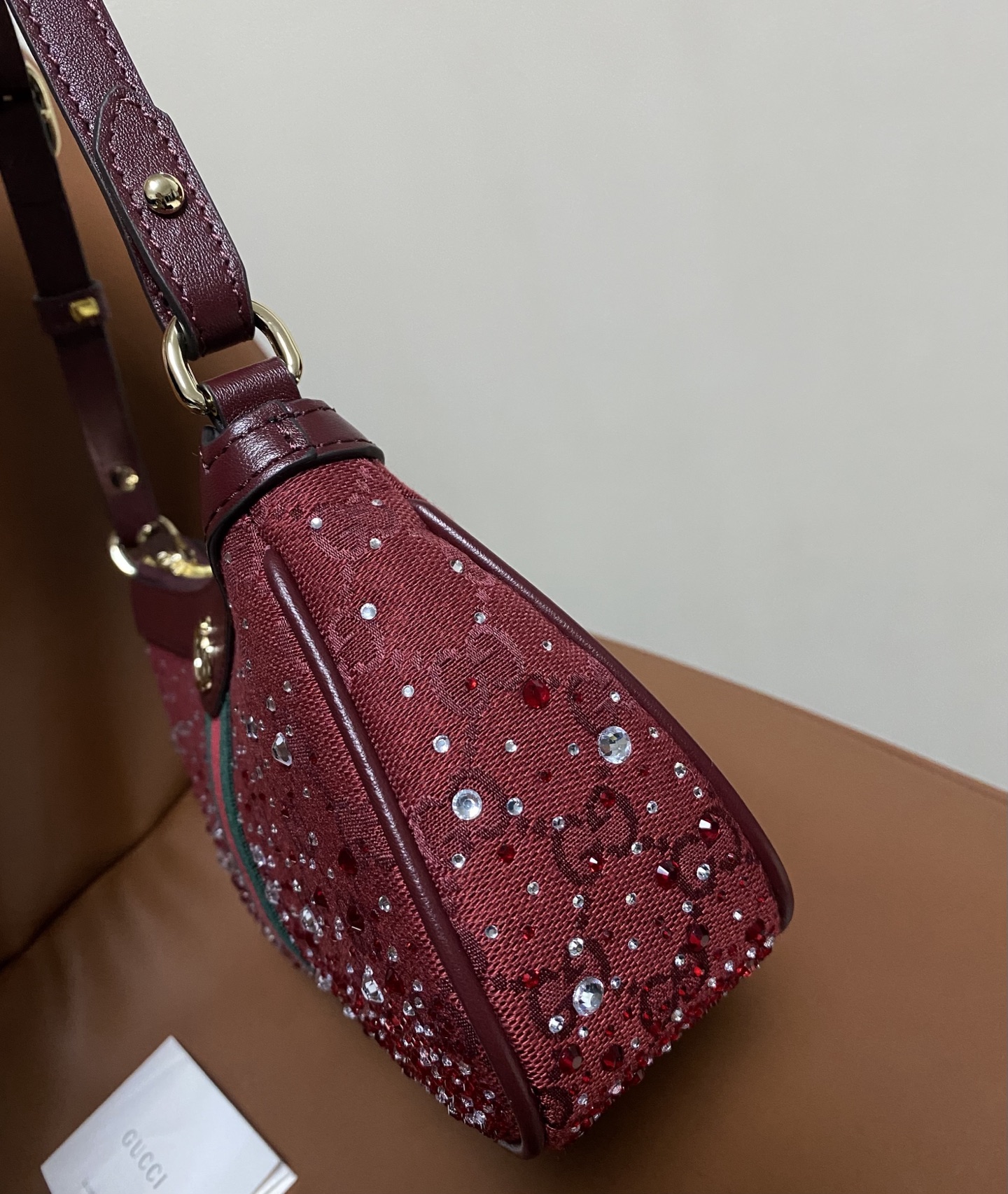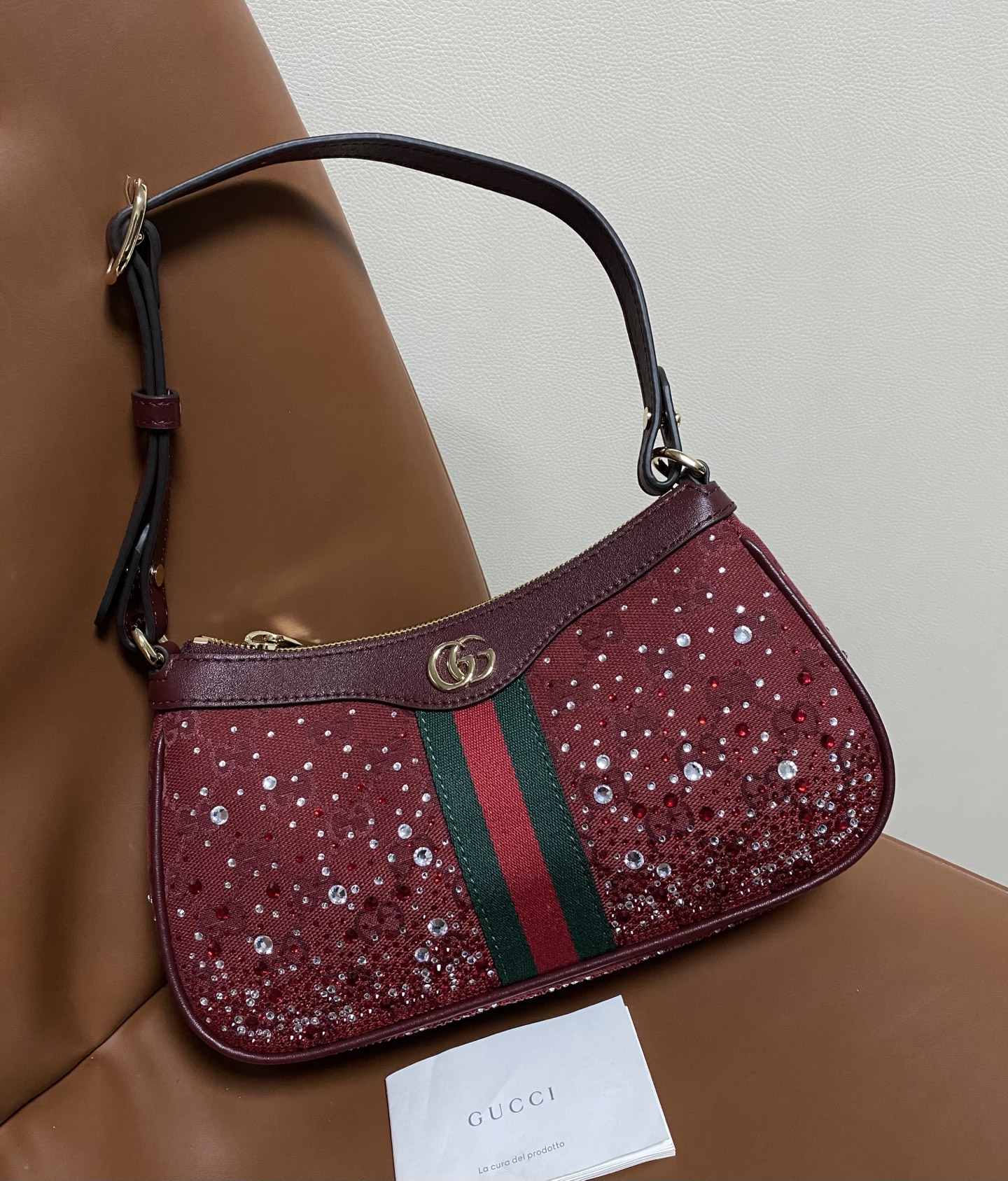 NIGO Gucci Ophidia crystals small shoulder bag in Rosso Ancora red GG canvas #nigo335871