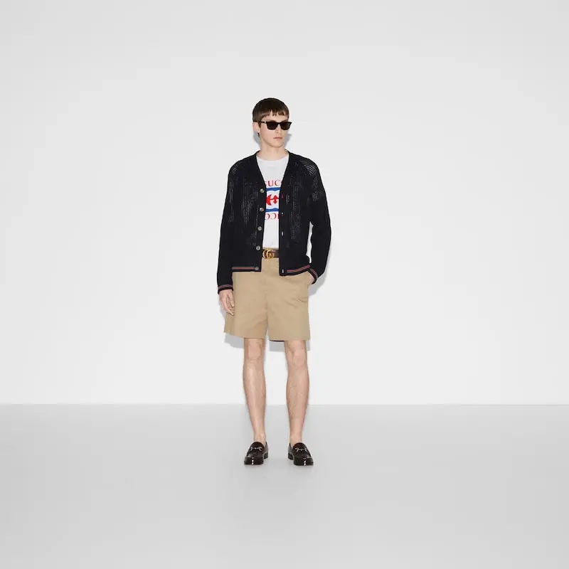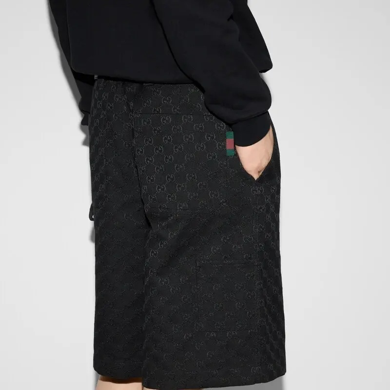 NIGO Gucci Men's Summer Solid Color Canvas Letter Print Zipper Casual Shorts #nigo73245