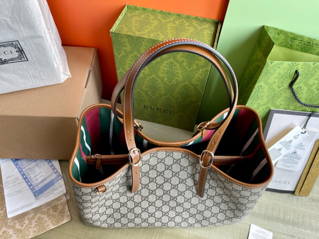 NIGO Gucci Women's Brown Monogrammed Printed Leather Quilted Canvas Shoulder Handbag Crossbody Bag Bags #nigo72931