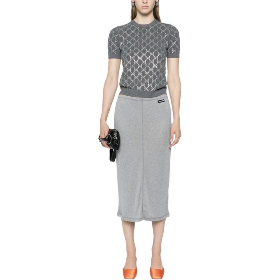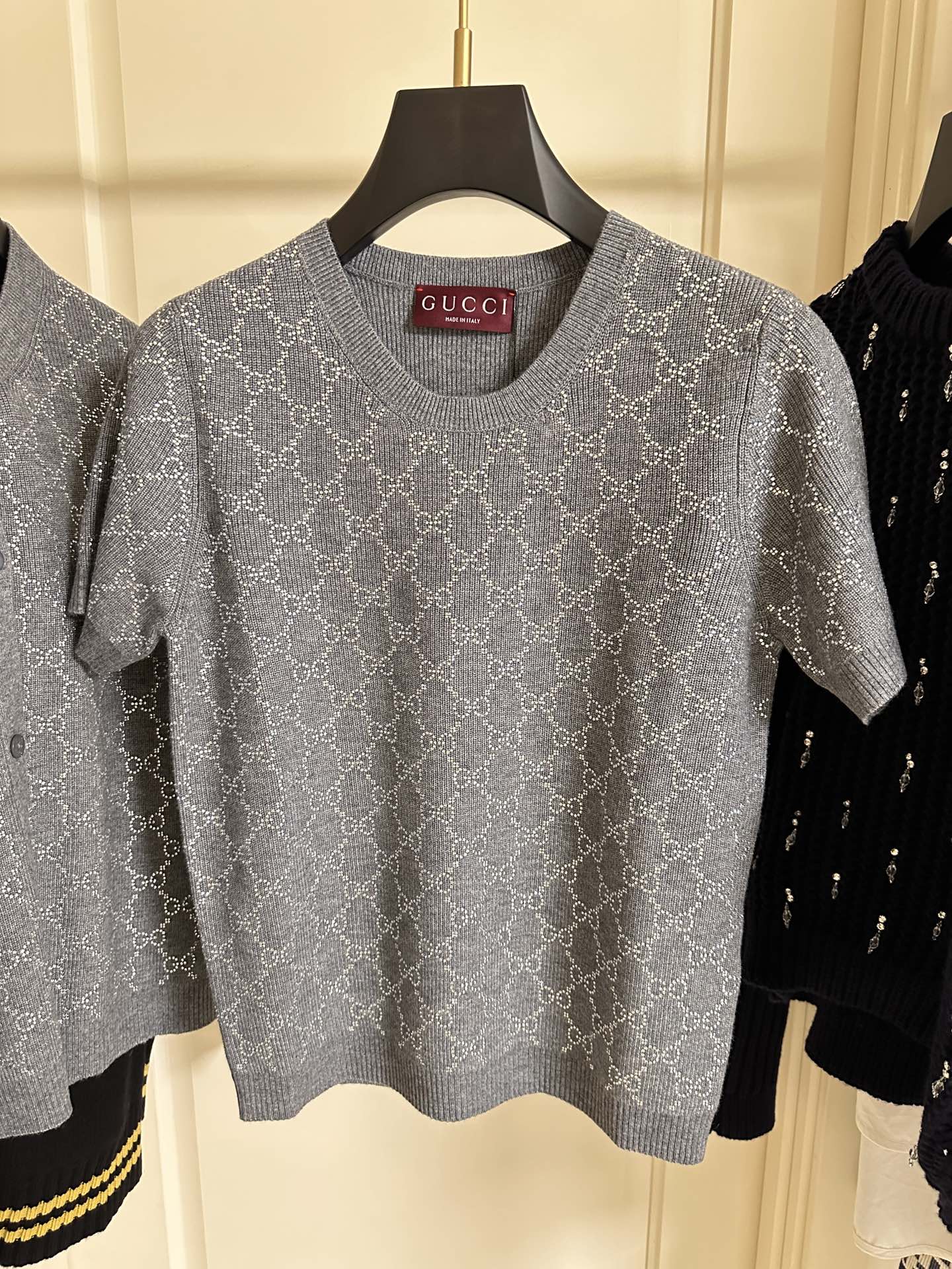 NIGO Gucci Women's Summer Gray Letter Logo Rhinestone Decoration Slim Short Sleeve Knit T-Shirt #nigo72992