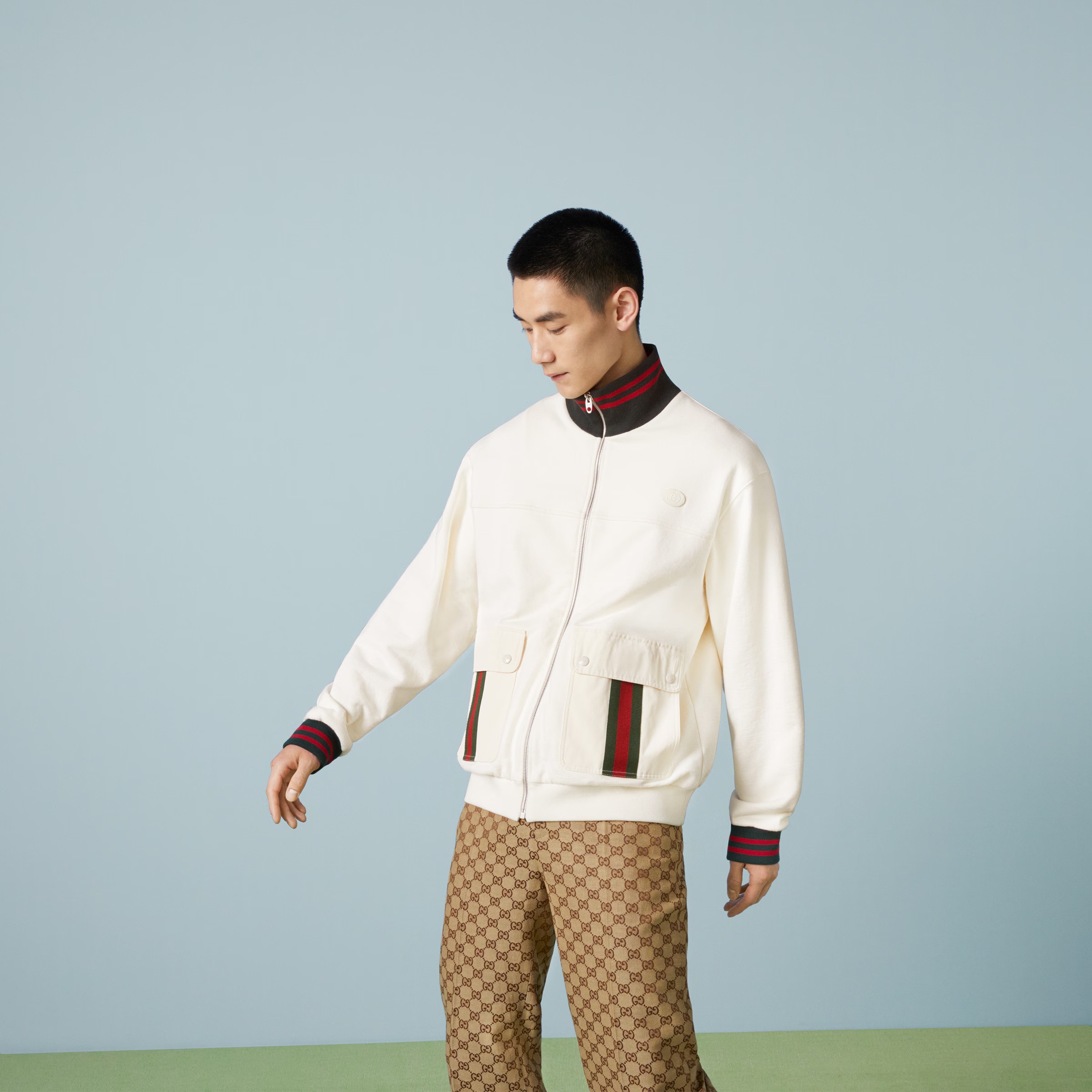 NIGO Gucci Men's Autumn Striped Standing Collar Zipper Cotton Fitted Long Sleeve Solid Color Jacket #nigo71452