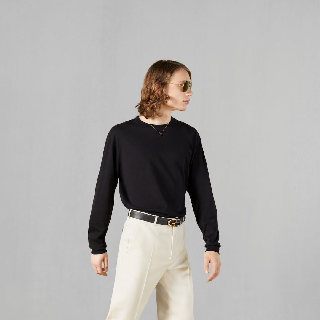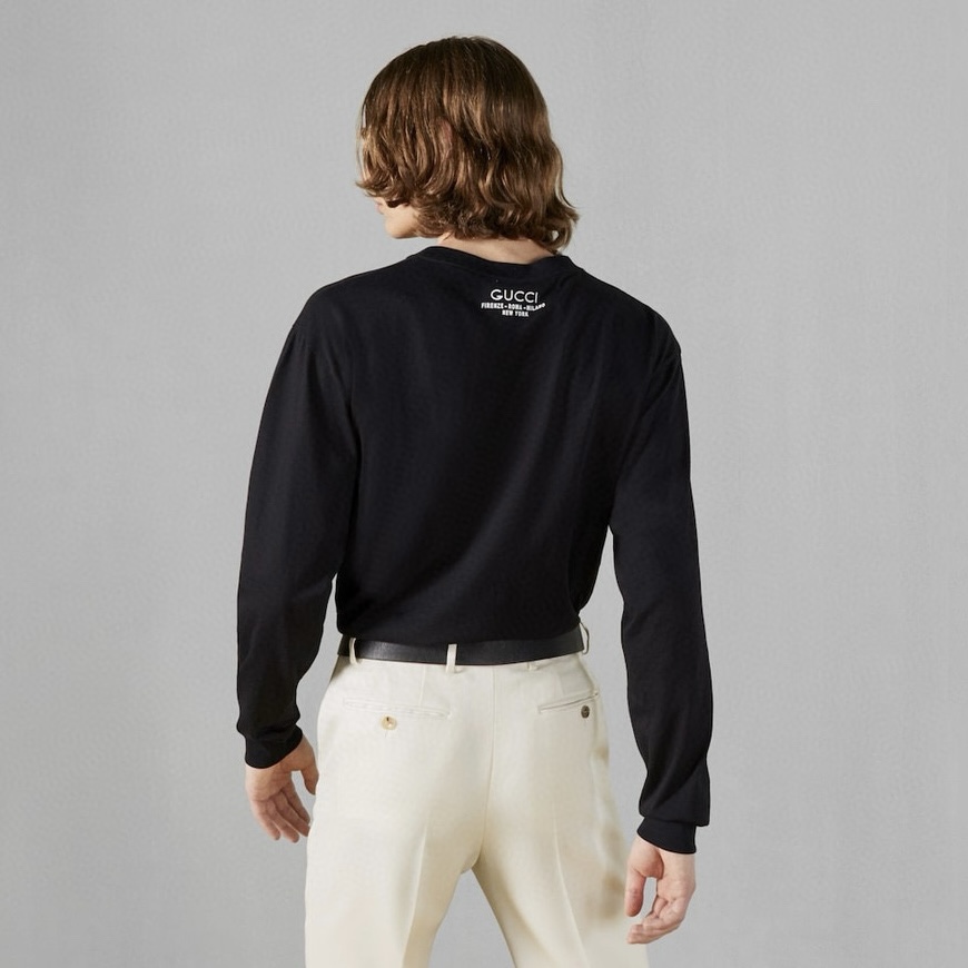 NIGO Gucci Men's Spring And Fall Cotton Round Neck Straight Casual Fitted Black Long-Sleeved T-Shirt #nigo71449