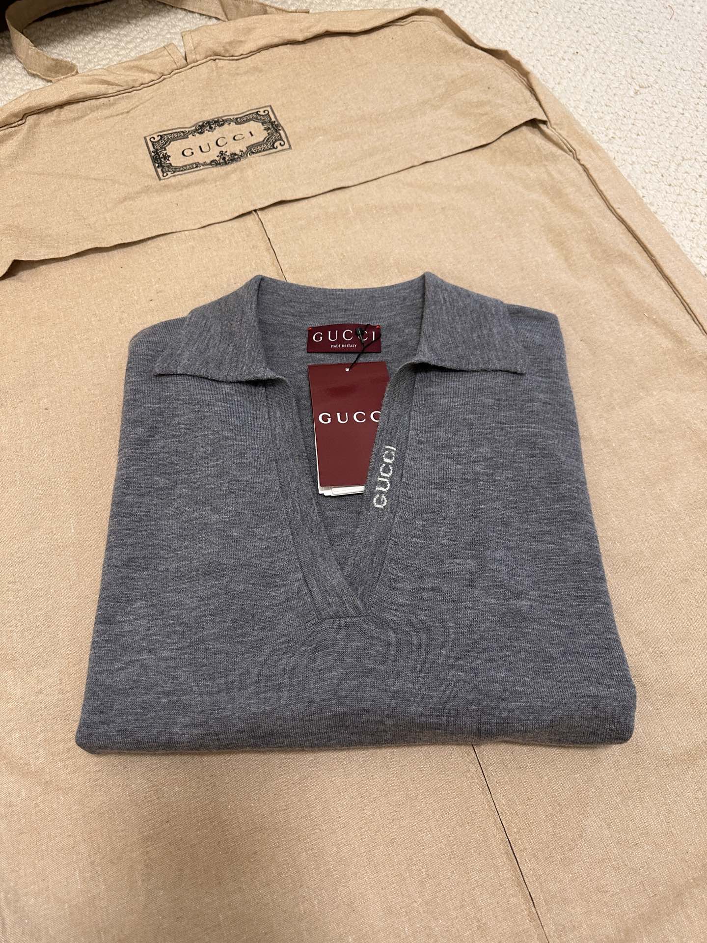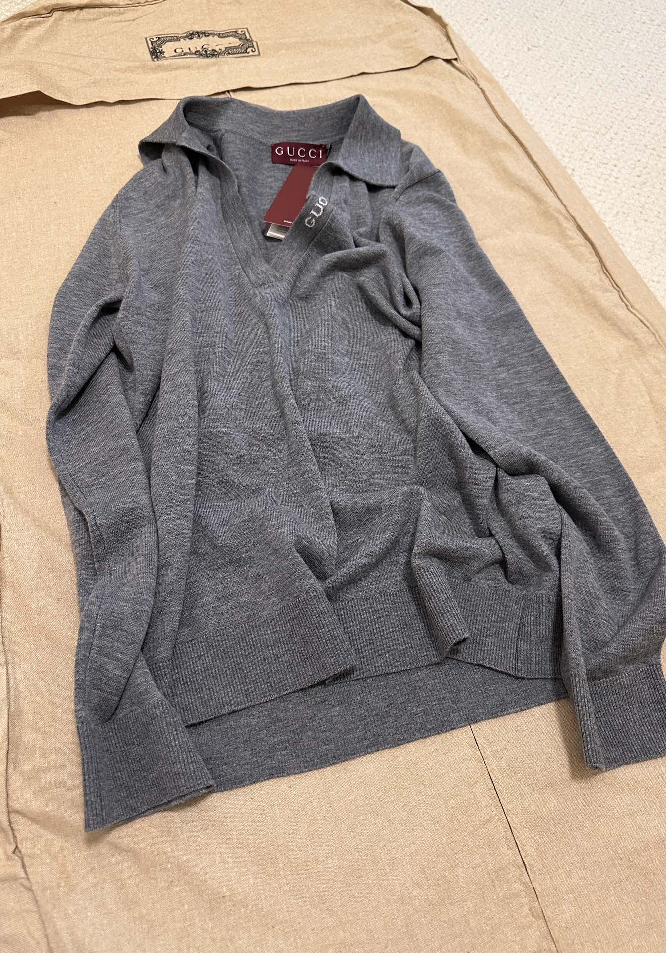 NIGO Gucci Women's Spring and Autumn Gray Letter V-Neck Loose Wool Long Sleeve Sweater #nigo72845