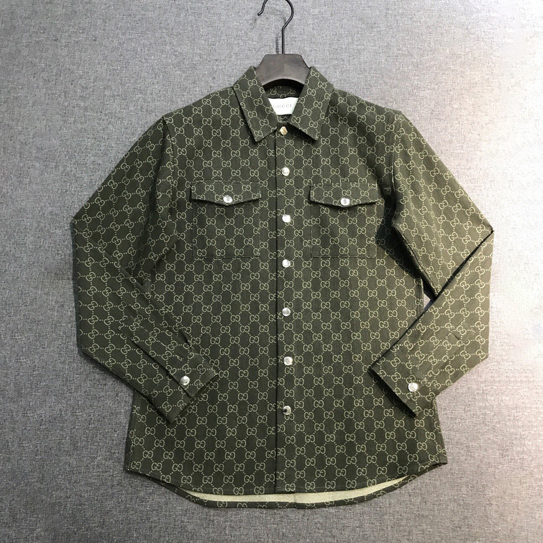 NIGO Gucci Men's Spring And Fall Fashion Letters Full Print Denim Lapel Long Sleeve Shirt Jacket #nigo98674