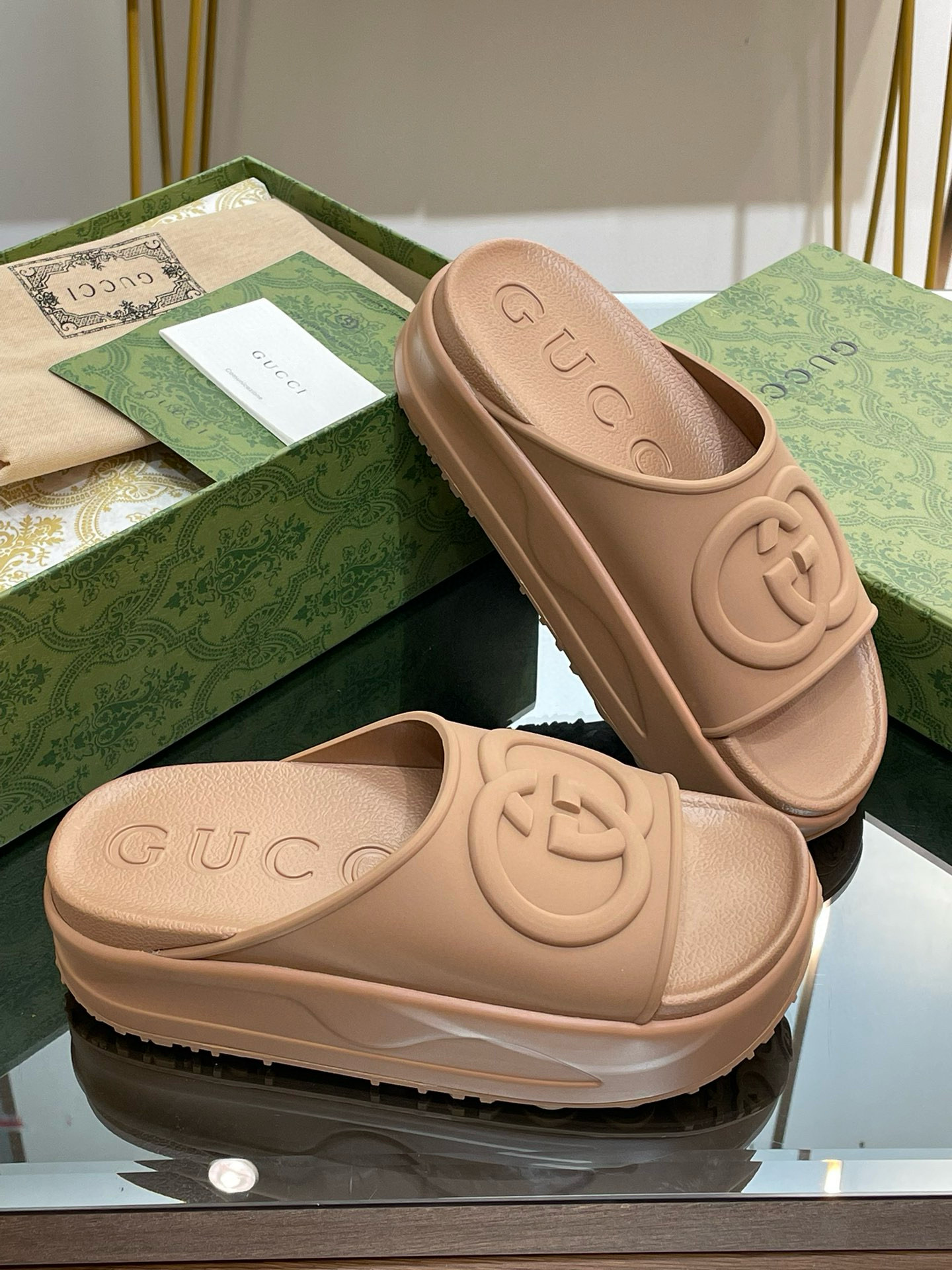 NIGO Gucci Women's Summer Solid Color Thick Bottom Interlocking G Slide Sandal Casual Beach Shoes #nigo98231