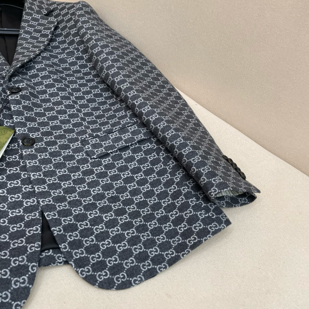 NIGO Gucci Men's Summer Light Blue Geometric Pattern Denim Long Sleeve Single Breasted Shirt Jacket #nigo98142