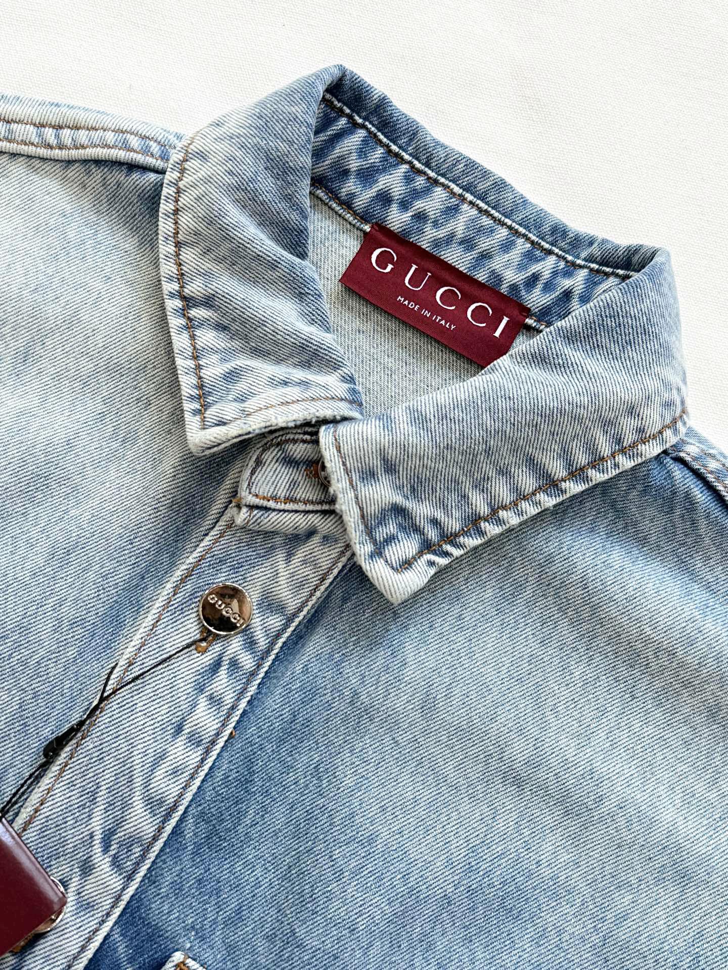 NIGO Gucci Men's Spring/Autumn Fashionable Washed Color Letter Logo Embossed Denim Shirt Jacket #nigo78161