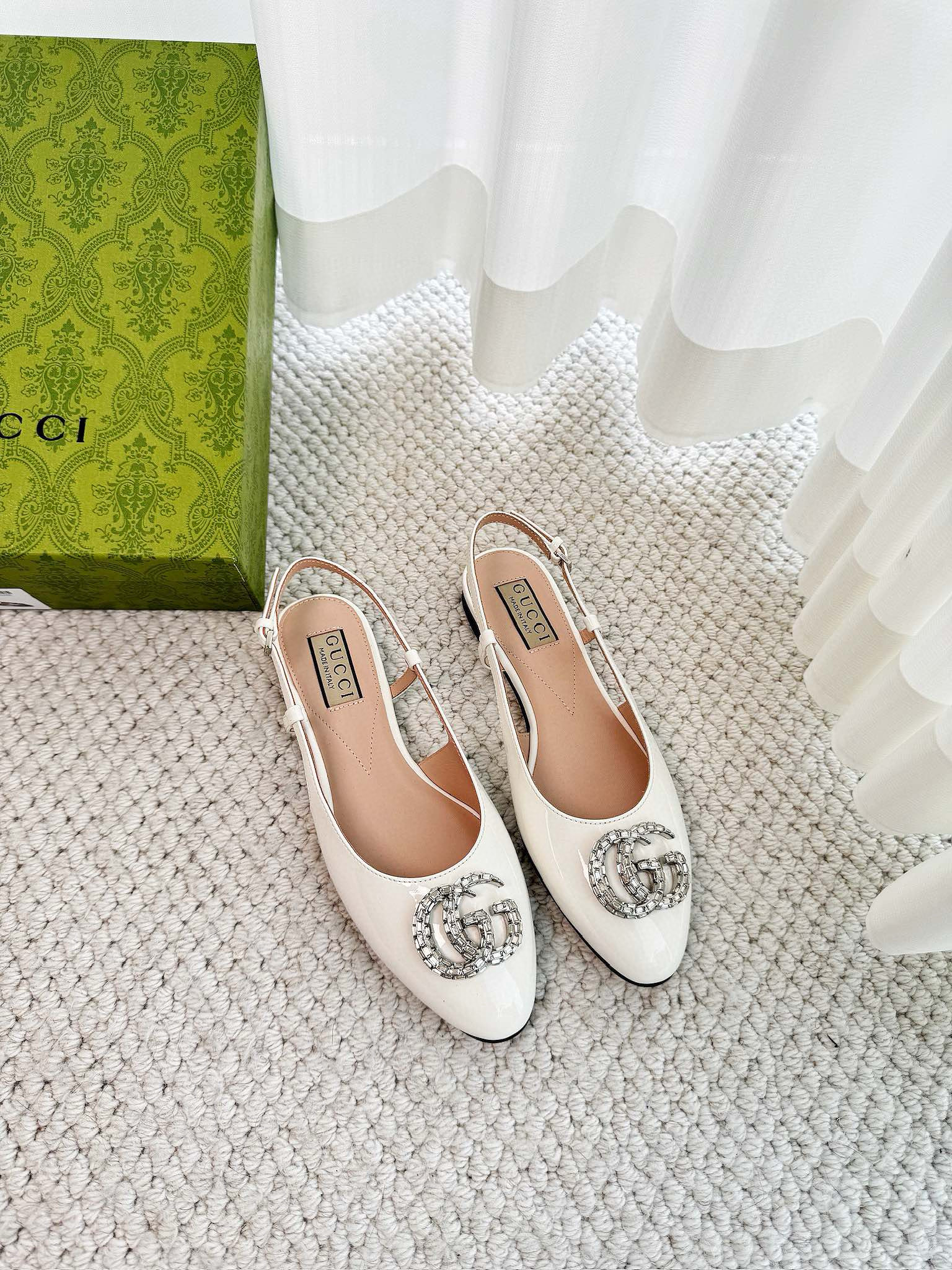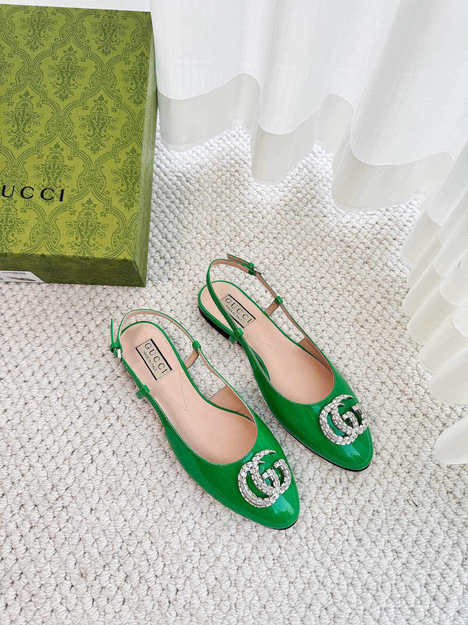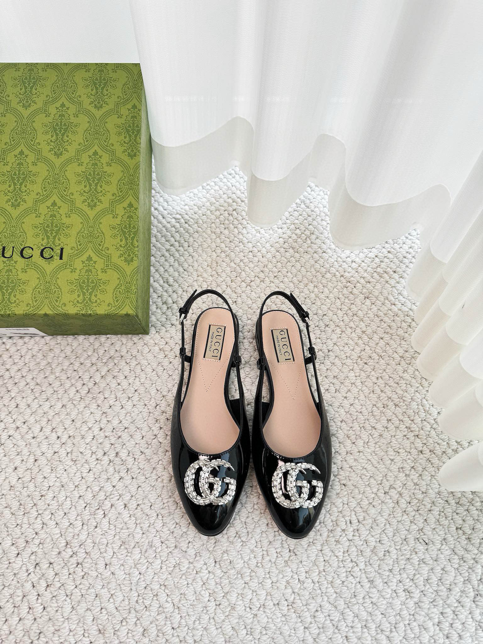NIGO Gucci Women's Ballerina With Double G Round Toe Rhinestone Leather Sandals Shoes #nigo97468